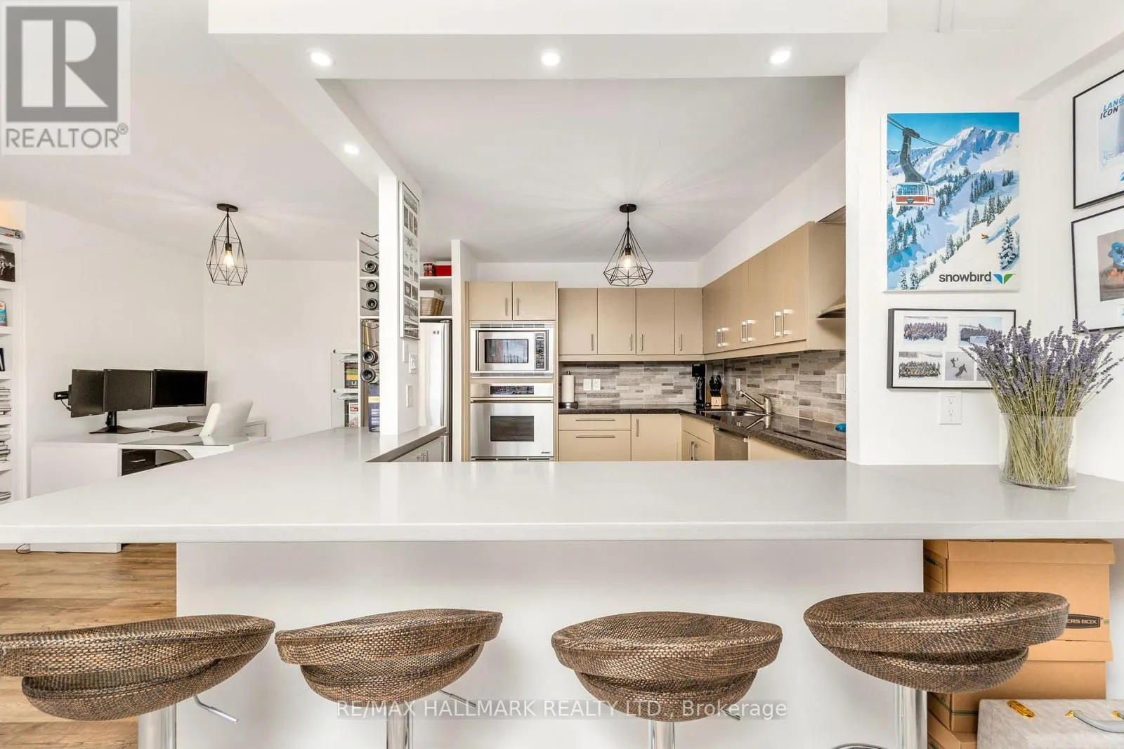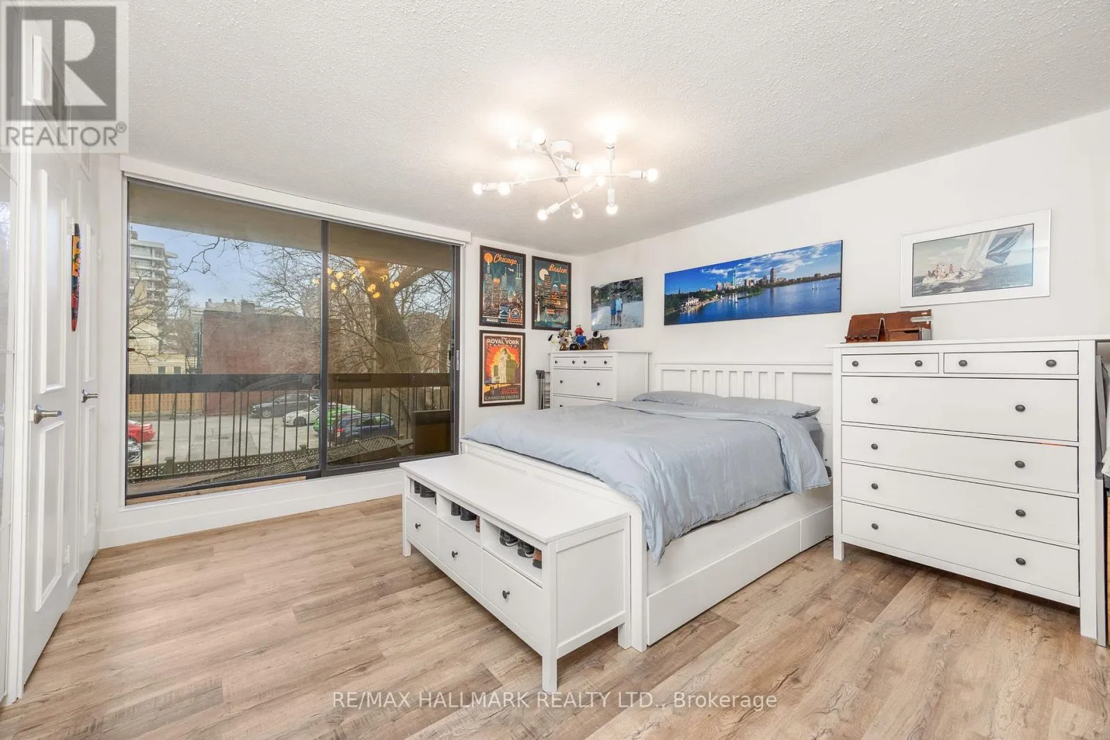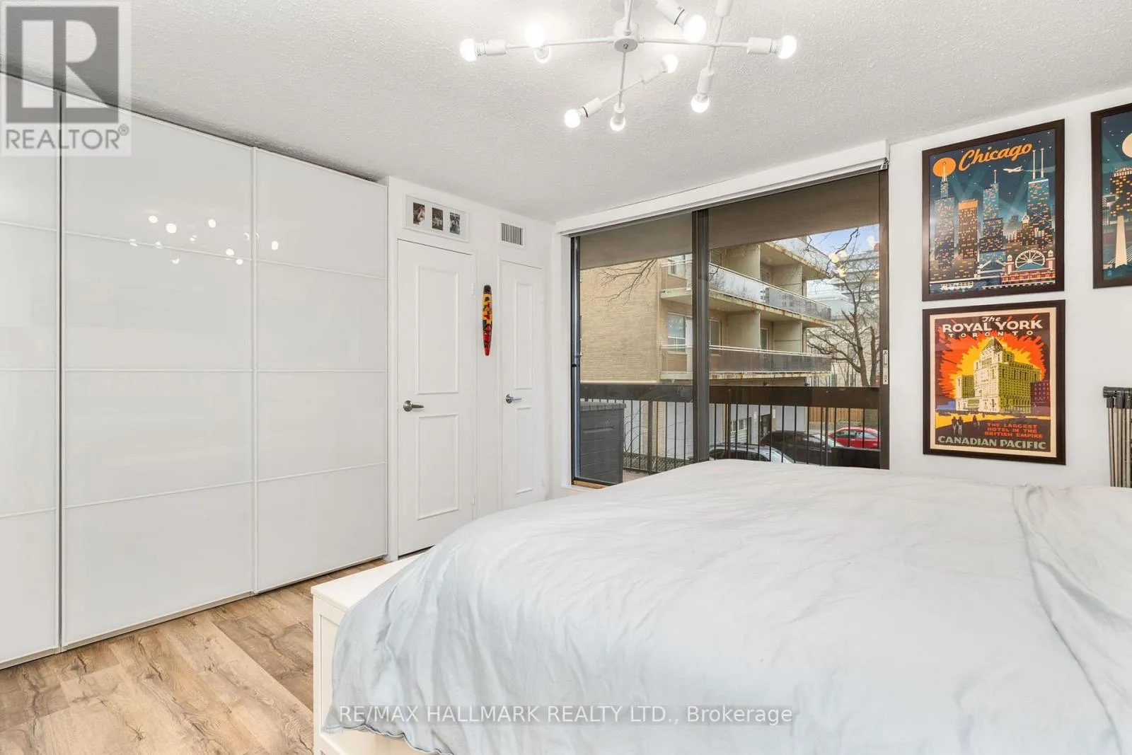 Cross Streets: Bloor St West / St George St. ** Directions: North of Bloor St W, west side of St George St. Spacious 2-bedroom suite in the heart of the Annex, offering over 1100 square feet of bright, open-concept living. Located in a charming 5-storey heritage boutique building, this suite features a south-facing balcony that fills the living, dining, kitchen, and office areas with natural light. The custom kitchen includes ample storage and a generous breakfast bar that comfortably seats six. The primary bedroom offers wall-to-wall closets, a beautiful 4-piece ensuite, and direct access to the 40-foot balcony, which is also accessible from the living room. A second full bathroom with a sleek glass shower enclosure completes the interior. The building includes a rooftop terrace, gym, and sauna. Condo fees are all inclusive, covering electricity, water, heating, cooling, and cable. (id:27476)