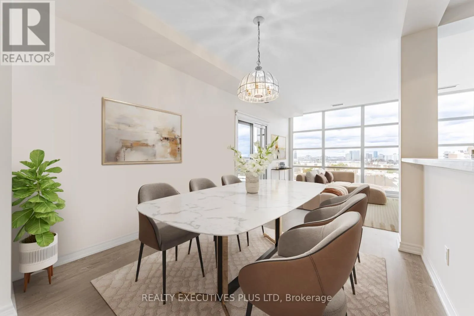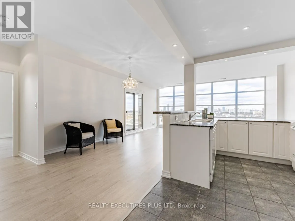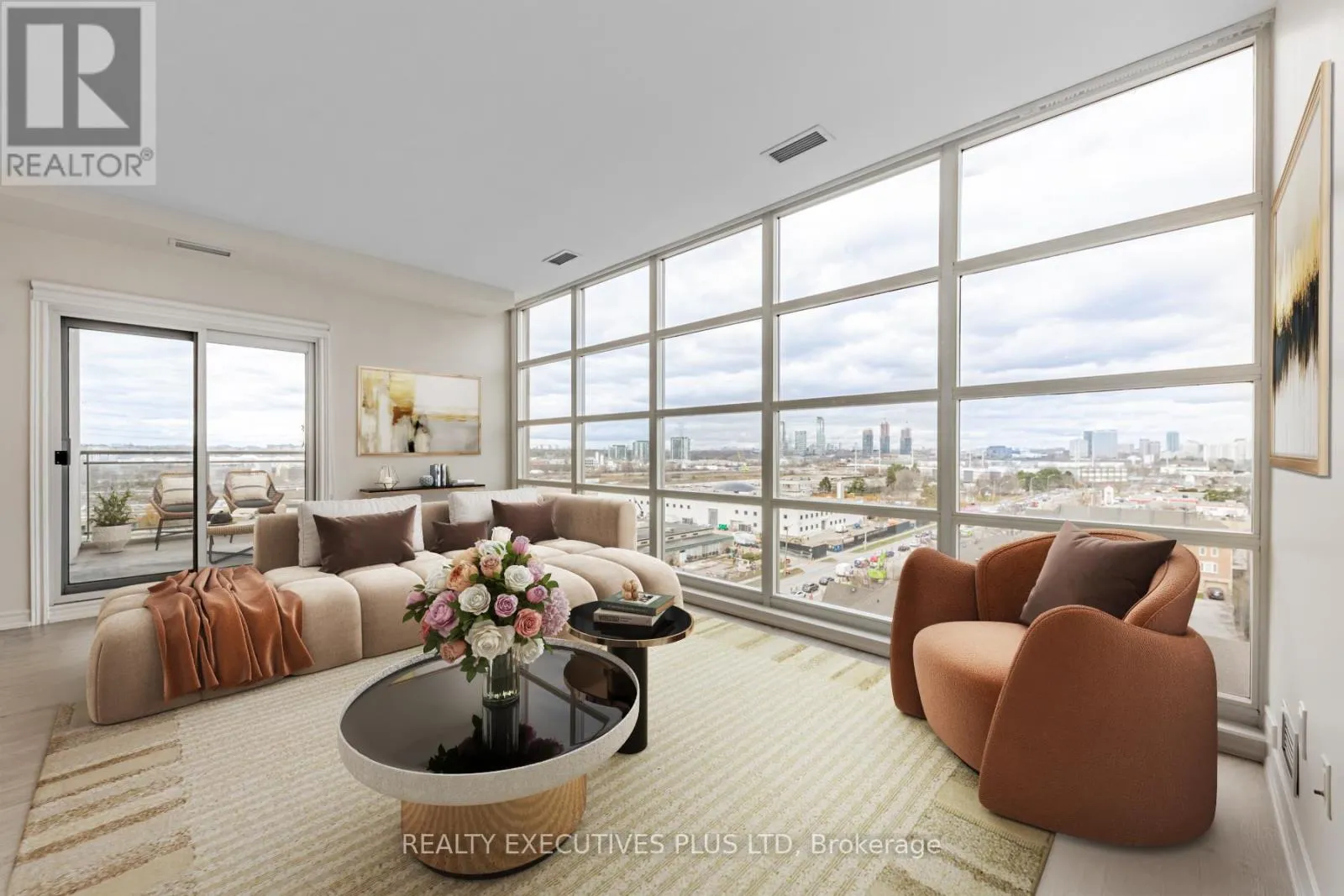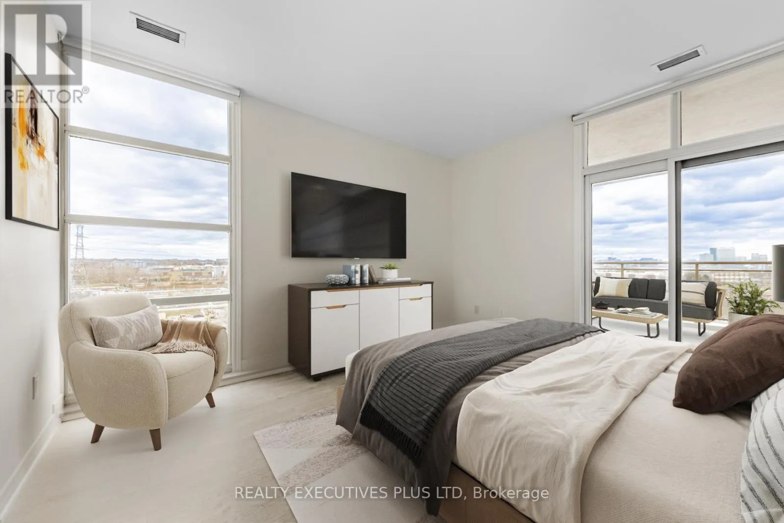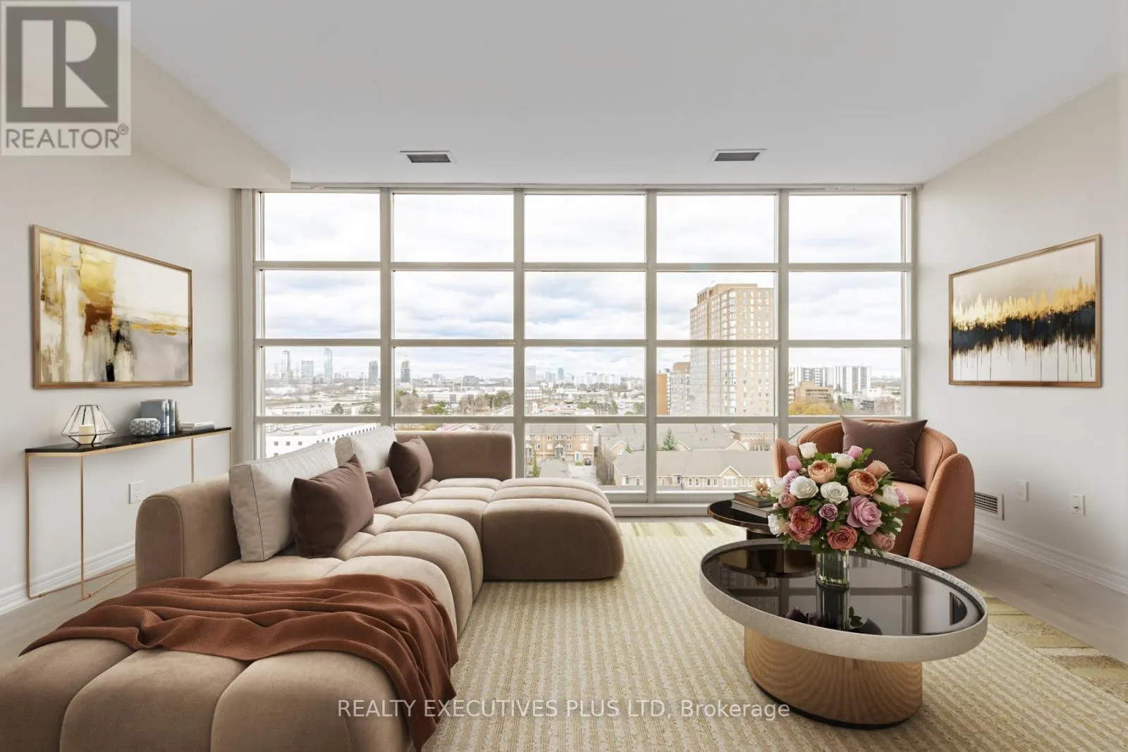 Laird/Overlea/Millwood 923' Extraordinary Sun Drenched, Spacious Open-Concept Corner Suite on Top Floor w/High Ceilings. New Vinyl Plank floors & Fresh Paint throughout! Unobstructed Panoramic views from the large 12'x12' Corner Balcony & from the Wall-to-Wall & Floor to Ceiling Living Room windows. Perfect location for both Relaxation or Entertaining w/Sound-Proofed, concrete walls between units. Next to Leaside Park, Minute's walk to all: The extensive Park system, scenic Bike/Hike trails of the Don Valley Park, Costco, 2 Leaside Shopping Centres, Schools, Churches, Bus stops and the Coming-Soon Ont Line Subway. Minutes' drive to DVP and Downtown in 15 minutes - The Exercise and Party rooms are perfect for those seeking a blend of Comfort, Style, and Convenience. Friendly quiet Neighbours, caring Management & Superintendent. Largest locker 70' conveniently located on the Same Flr 7 across elevators, w/ample Storage & Premier Designated parking spot in indoor garage conveniently situated next to Elevators, Level B, use the Double Doors entrance. Gently Lived In as a Pied-de-Terre for the past 15 years. (id:27476)