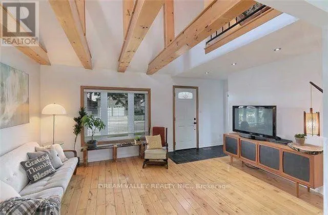 Cross Streets: Midland & Eglinton Ave. ** Directions: South. Welcome to this beautiful sun-filled 1.5-storey home on a 40 x 137.5 lot in a prime Scarborough location, just a one-minute walk to the future subway. Featuring 2+1 bedrooms and 2 bathrooms across 1,800 sq. ft living space., this home offers an open-concept main level with cathedral ceilings, exposed wood beams, and hardwood floors. The updated kitchen includes ample cabinetry, modern finishes, and a walkout to a spacious deck overlooking a large, private yard perfect for gardeners and outdoor living. The finished lower level boasts a generous recreation room with laminate flooring, above-grade window, 4-piece bath, laundry, and walk-up access to the backyard. The loft-style primary bedroom overlooks the living area, creating an airy, contemporary vibe. Currently generating rental income of approximately $4,200/month, this property provides excellent investment potential. Located minutes to transit, shopping, schools, and dining. A must-see! (id:27476)