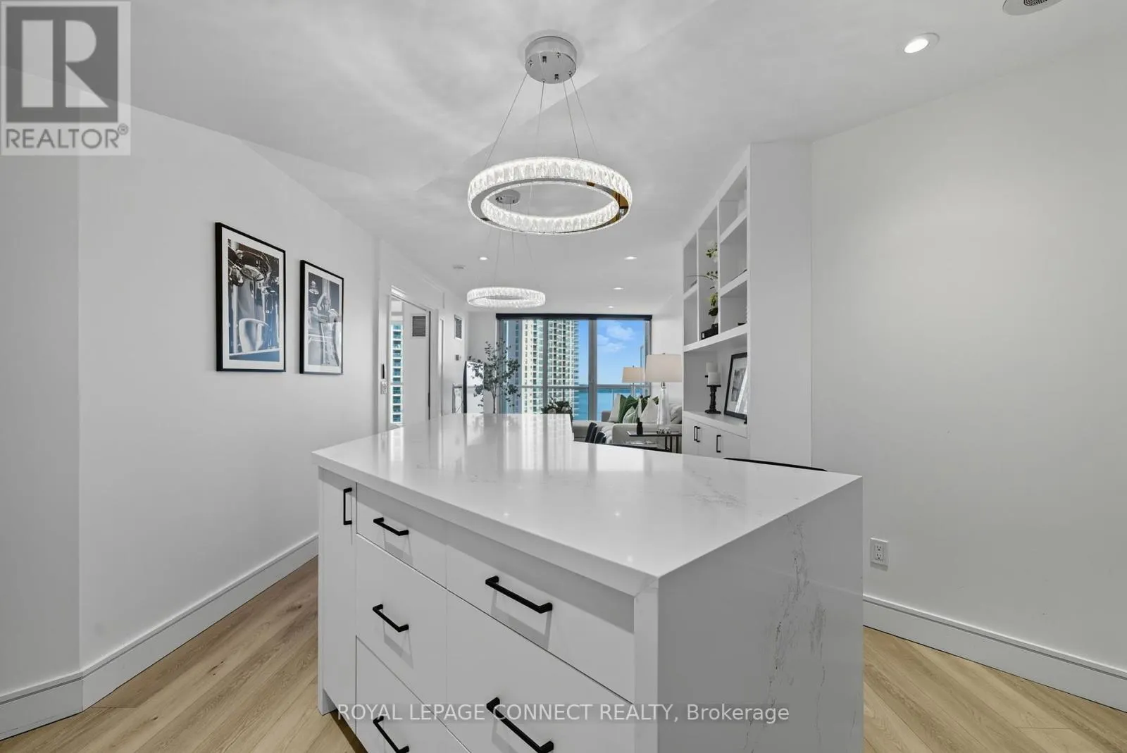 Cross Streets: Queens Quay/York. ** Directions: waterfront west of Yonge. Experience true luxury waterfront living with unobstructed south facing views of Lake Ontario and the marina, a breathtaking backdrop that floods this condo with natural light and tranquility. Inside, the fully renovated residence showcases a custom designed kitchen with quartz waterfall countertops, an oversized island ideal for entertaining, designer fixtures, and premium finishes throughout. Custom built in cabinetry maximizes storage, while smooth ceilings, accent walls, and pot lights add modern sophistication. Spa inspired bathrooms are finished with elegant details. Perfectly located just steps from the PATH, GO Train, and TTC, and within walking distance of the Financial and Entertainment Districts, this home combines urban convenience with the beauty of lakefront living. A rare opportunity to own a refined, upgraded condo in one of downtown Toronto's most desirable locations, where every day begins and ends with iconic waterfront views. (id:27476)