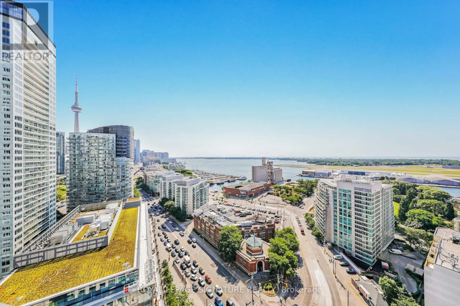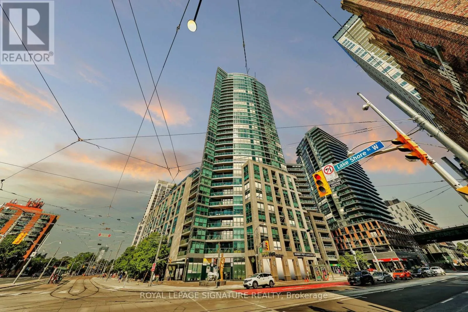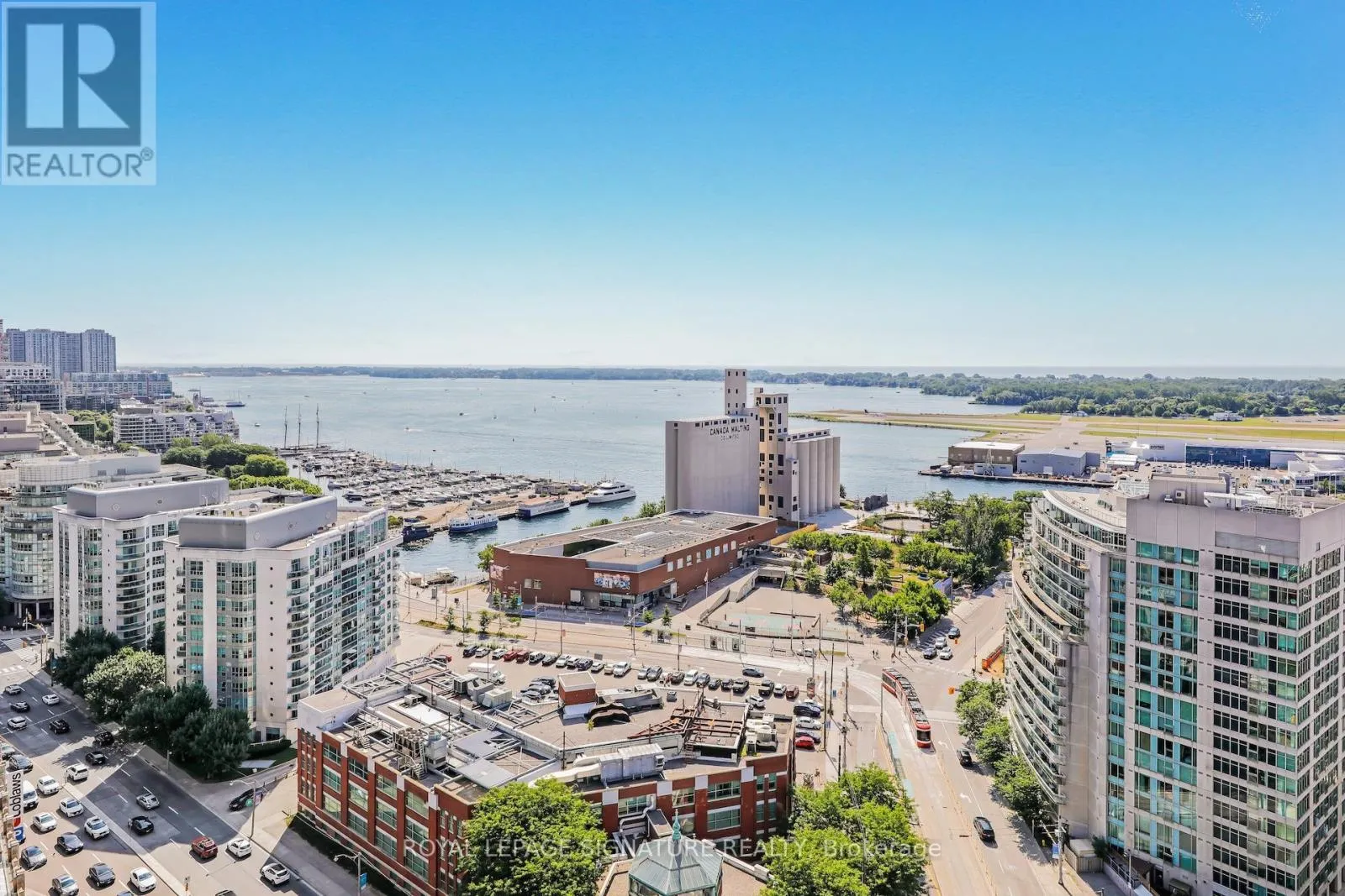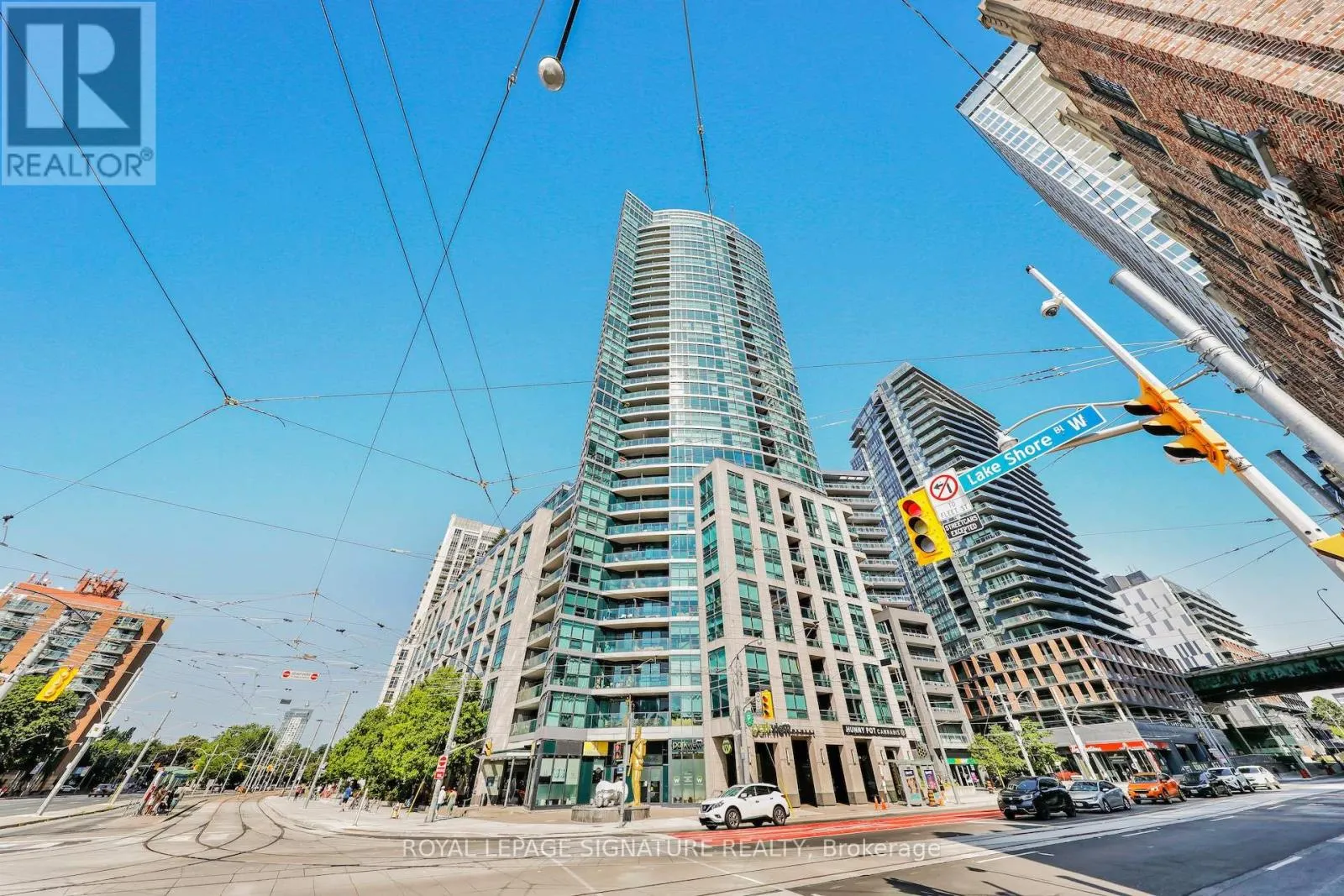 Bathurst/Lakeshore Welcome to this stunning South Lake-facing 2 Bedroom, 2 Bath Suite with unobstructed panoramic views of Toronto's lakefront. The spacious, open-concept living area and rooms are flooded with natural light, showcasing breathtaking city views. Newly renovated (hardwood floors, new appliances), high-end finishes, and thoughtful updates throughout, this modern condo exudes both comfort and style. The updated kitchen features sleek cabinet finishes, with a brand-new stove and overhead microwave. The well-appointed bedrooms and walk-in closet offer generous storage space and functional flexibility. The private balcony is the perfect spot for outdoor relaxation and sunset views overlooking the lake. The building offers a host of exceptional amenities, including a glass-enclosed pool with hot tub, an expansive outdoor BBQ deck, a community garden, party room, conference room, billiards room, and a fully equipped gym with a wraparound patio ideal for outdoor workouts or meditation. Additional features include a convenient pull-up and roundabout entry area and ample visitor parking. The suite comes with 1 parking space. Enjoy the convenience of the walkable location steps to the CNE, Lakeside Boardwalk, Billy Bishop Airport, and the TTC. You ask for it, Malibu Condos has it all. Perfect to live in or lease. Don't miss this opportunity to purchase a move-in-ready unit! (id:27476)