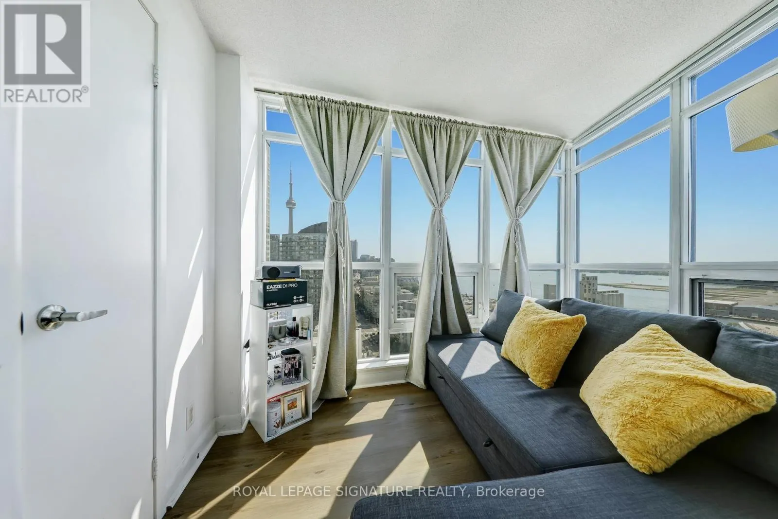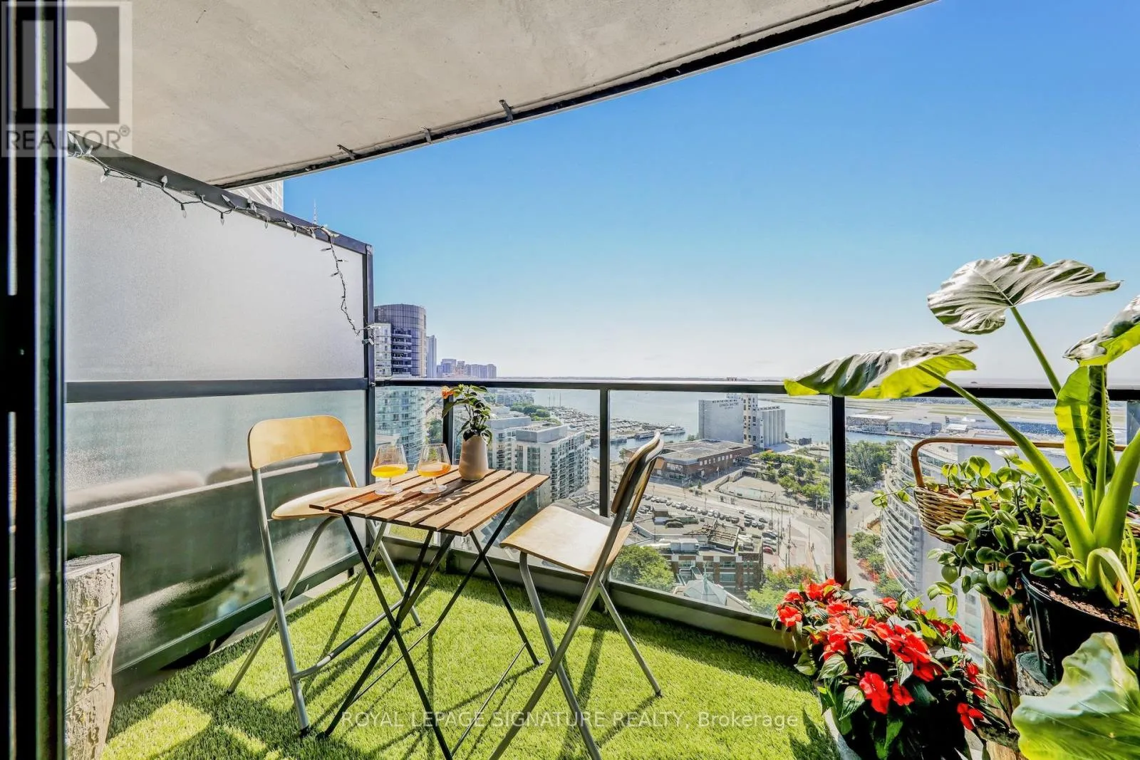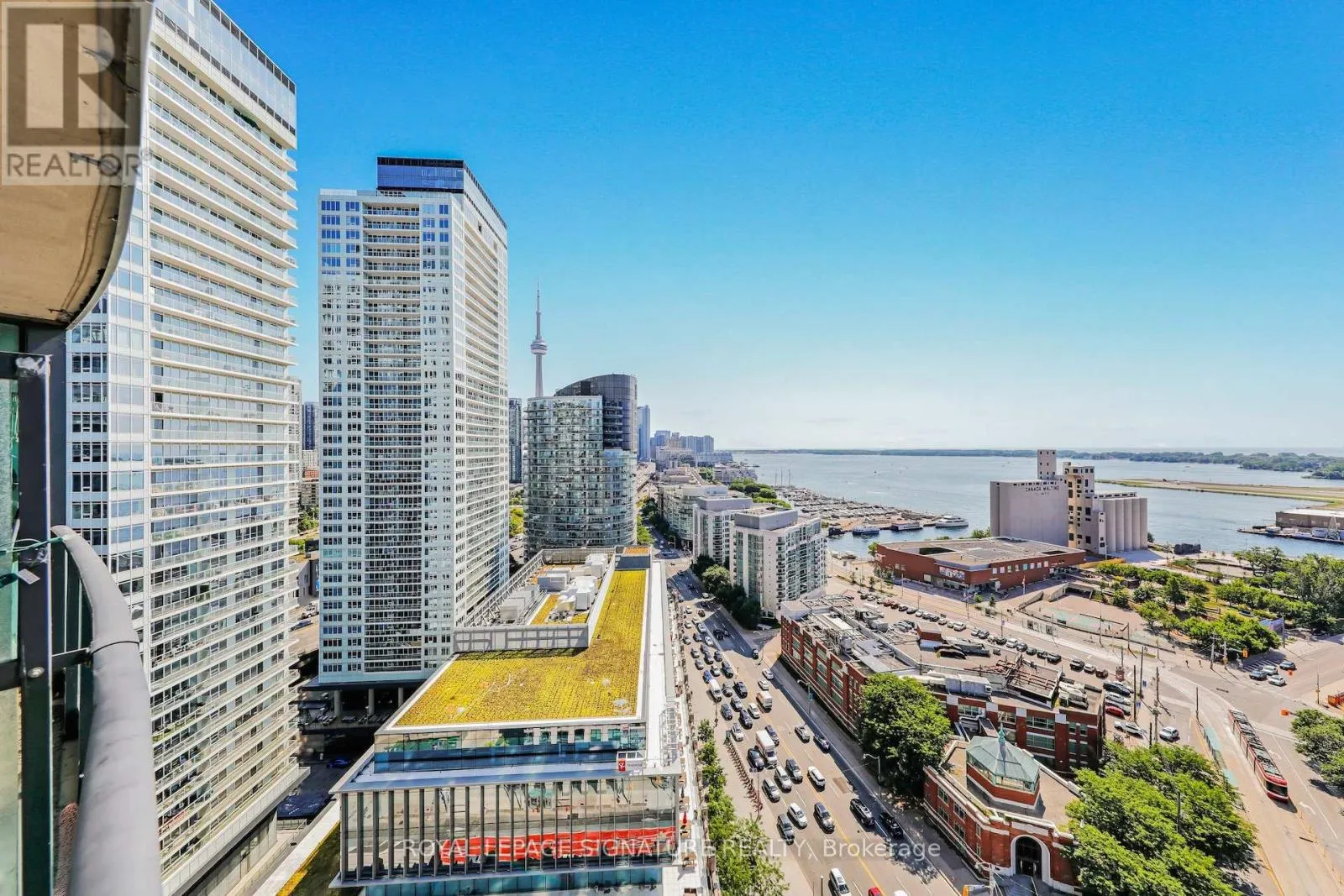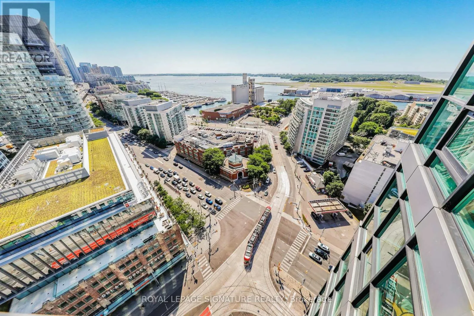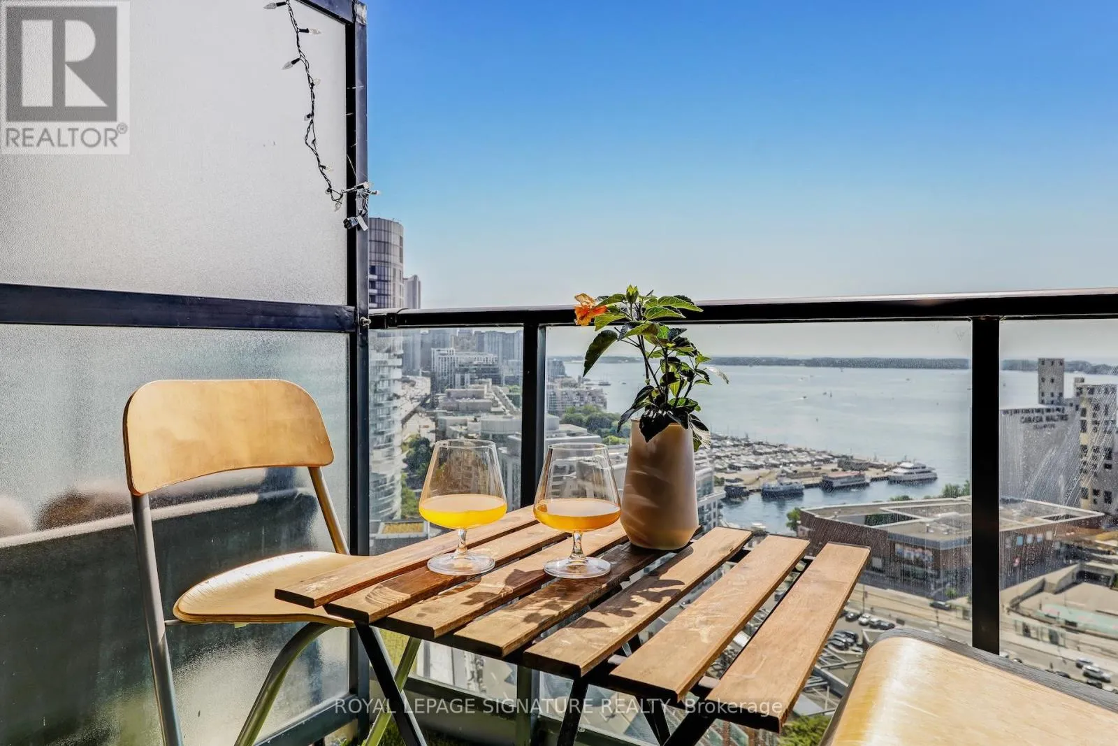 Bathurst/Lakeshore Welcome to this stunning South Lake-facing 2 Bedroom, 2 Bath Suite with unobstructed panoramic views of Toronto's lakefront. The spacious, open-concept living area and rooms are flooded with natural light, showcasing breathtaking city views. Newly renovated (hardwood floors, new appliances), high-end finishes, and thoughtful updates throughout, this modern condo exudes both comfort and style. The updated kitchen features sleek cabinet finishes, with a brand-new stove and overhead microwave. The well-appointed bedrooms and walk-in closet offer generous storage space and functional flexibility. The private balcony is the perfect spot for outdoor relaxation and sunset views overlooking the lake. The building offers a host of exceptional amenities, including a glass-enclosed pool with hot tub, an expansive outdoor BBQ deck, a community garden, party room, conference room, billiards room, and a fully equipped gym with a wraparound patio ideal for outdoor workouts or meditation. Additional features include a convenient pull-up and roundabout entry area and ample visitor parking. The suite comes with 1 parking space. Enjoy the convenience of the walkable location steps to the CNE, Lakeside Boardwalk, Billy Bishop Airport, and the TTC. You ask for it, Malibu Condos has it all. Perfect to live in or lease. Don't miss this opportunity to purchase a move-in-ready unit! (id:27476)