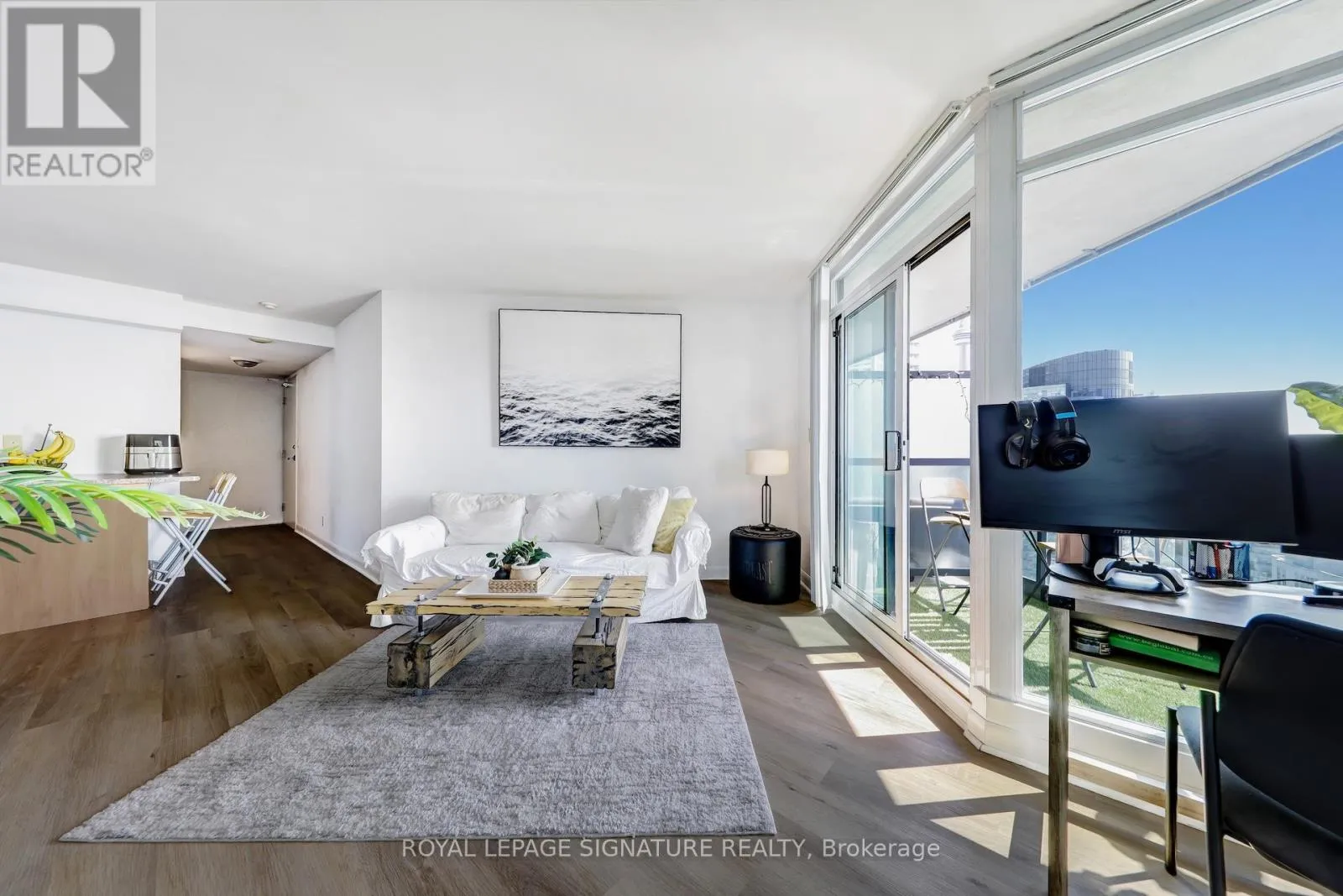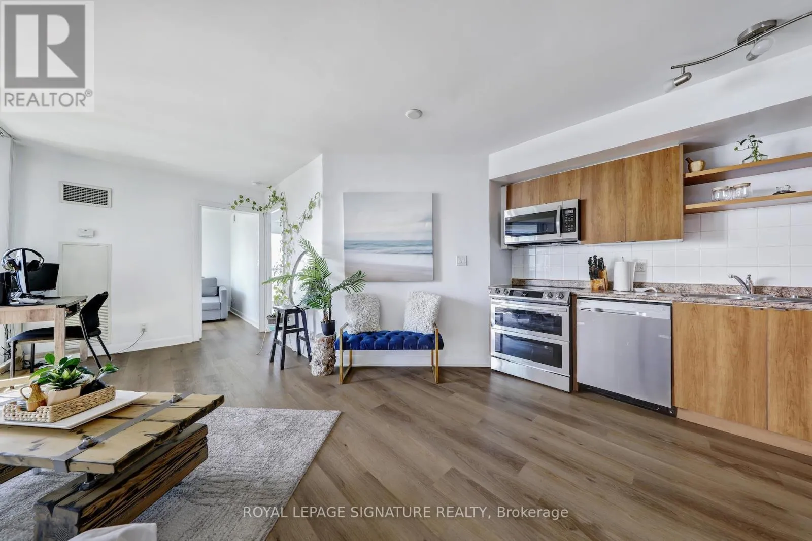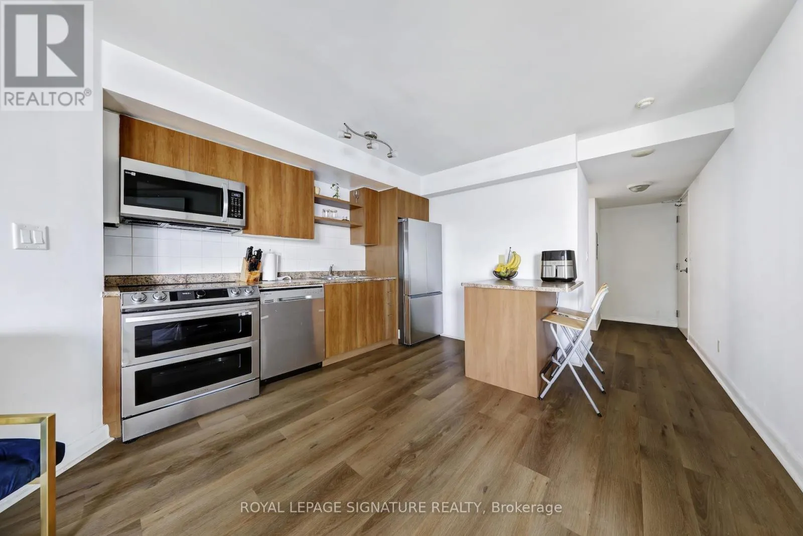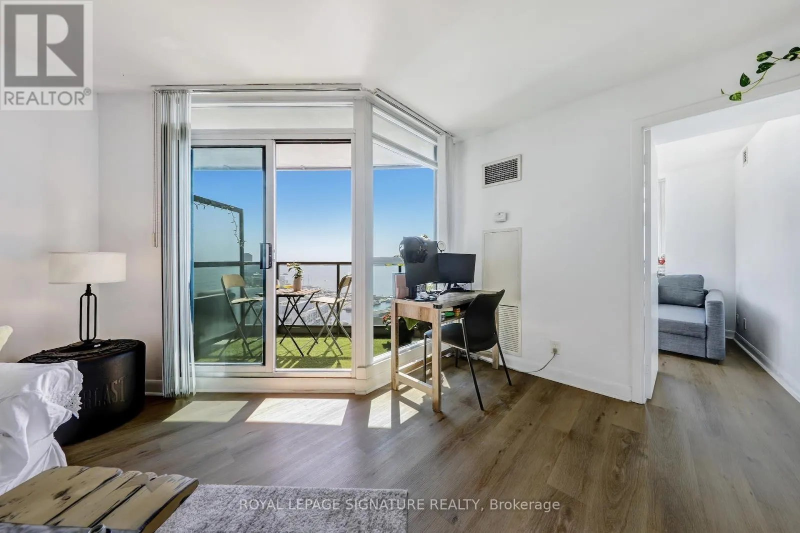 Bathurst/Lakeshore Welcome to this stunning South Lake-facing 2 Bedroom, 2 Bath Suite with unobstructed panoramic views of Toronto's lakefront. The spacious, open-concept living area and rooms are flooded with natural light, showcasing breathtaking city views. Newly renovated (hardwood floors, new appliances), high-end finishes, and thoughtful updates throughout, this modern condo exudes both comfort and style. The updated kitchen features sleek cabinet finishes, with a brand-new stove and overhead microwave. The well-appointed bedrooms and walk-in closet offer generous storage space and functional flexibility. The private balcony is the perfect spot for outdoor relaxation and sunset views overlooking the lake. The building offers a host of exceptional amenities, including a glass-enclosed pool with hot tub, an expansive outdoor BBQ deck, a community garden, party room, conference room, billiards room, and a fully equipped gym with a wraparound patio ideal for outdoor workouts or meditation. Additional features include a convenient pull-up and roundabout entry area and ample visitor parking. The suite comes with 1 parking space. Enjoy the convenience of the walkable location steps to the CNE, Lakeside Boardwalk, Billy Bishop Airport, and the TTC. You ask for it, Malibu Condos has it all. Perfect to live in or lease. Don't miss this opportunity to purchase a move-in-ready unit! (id:27476)