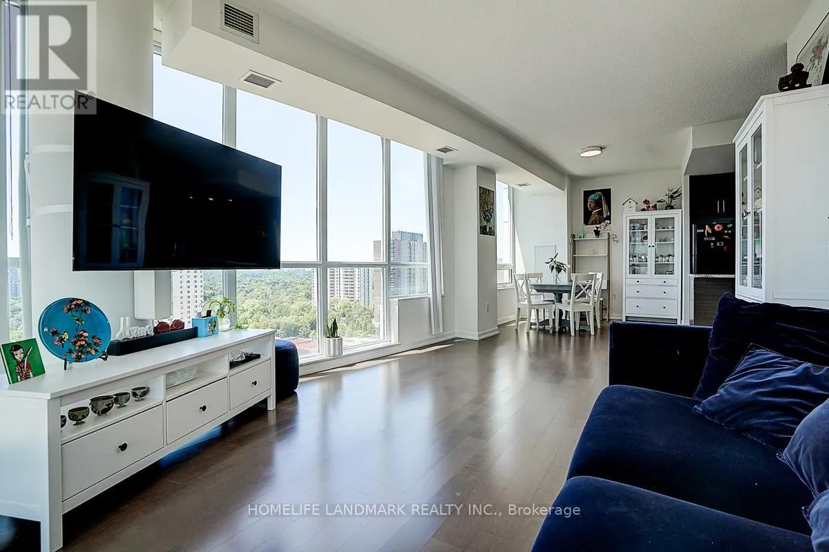 Don Mills And Sheppard Rd Luxury Emerald City in a highly desirable location. Functional layout with a beautiful corner unit featuring an extra-large balcony. 2 Bedrooms + Media Den, bright and spacious with 9 ft ceilings. Includes 1 parking and 1 locker. Building amenities include 24-hr concierge, indoor pool, and party room. Just steps to the subway. Unbeatable location, close to Hwy 401/404 and Fairview Mall. 1009 sq.ft interior + 177 sq.ft balcony. (id:27476)