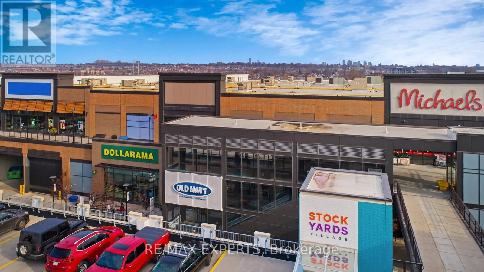 Keele St & St.Clair Ave W Nestled in the vibrant Junction neighborhood of Toronto, this exquisite 1-bedroom plus den condo at Stockyard Condos epitomizes contemporary urban living. Spanning 653 sq ft, the suite is designed to maximize both space and comfort, featuring an array of upgrades, high-quality finishes and modern design elements.The main living area is open-concept, perfect for entertaining or relaxing, with laminate flooring throughout and filled with natural light. The kitchen is a chef's delight, boasting sleek stainless steel appliances, quartz countertops, and a chic backsplash. The open-concept balcony extends your living space, offering a serene spot to enjoy the outdoors.The spacious main bedroom includes a large window and ample closet space, providing a tranquil retreat. The additional den is flexibly designed, ideal for a home office or 2nd Bedroom, enhancing the functionality of the space.Residents enjoy access to a wealth of amenities that cater to both relaxation and active lifestyles. These include a fitness center, yoga studio, rooftop terrace, games room, and spaces designed for both kids and pets. The convenience of an exercise room, visitor parking, and concierge services add to the ease of living.Situated in a prestigious Toronto locale, the condo is moments away from Stockyards Village and a diverse selection of restaurants, cafes, and shops. The area is known for its community spirit, cultural vitality, and accessibility to downtown Toronto, making it a prime location for both professionals and families.This condo is not just a home; it's a lifestyle choice for those seeking a blend of modern luxury and community warmth in one of Toronto's most desirable neighborhoods. Some photos have been virtually staged. (id:27476)