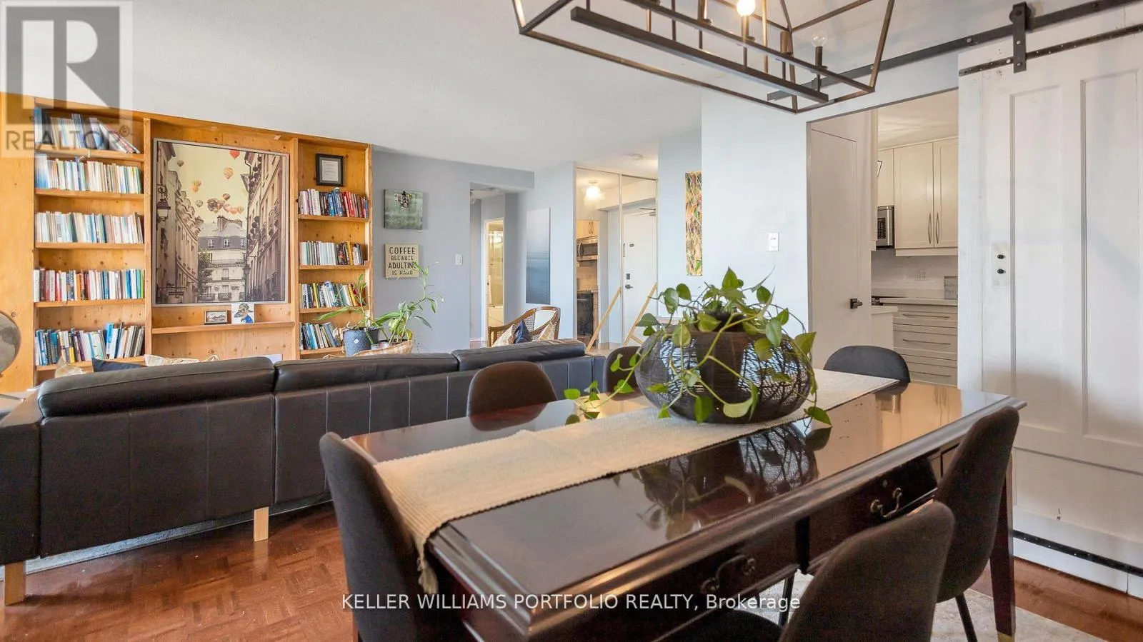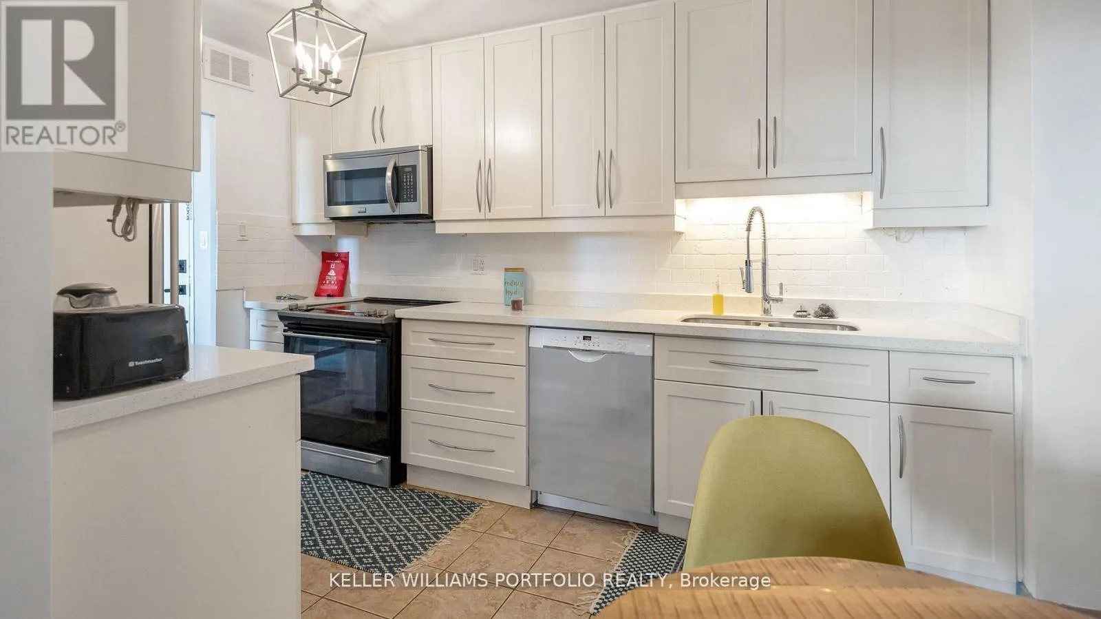 Cross Streets: The East Mall & Bloor. ** Directions: 427 to Burnhamthorpe to The East Mall. Welcome to the sought-after Queenscourt community! This spacious 2+den condo with 1.5 baths offers an inviting open-concept layout designed for modern living. The versatile den currently used as a 3rd bedroom provides flexibility for families, overnight guests, or the perfect work-from-home office.The beautifully updated kitchen is a true chefs delight, showcasing custom quartz countertops, sleek stainless steel appliances, and ample cabinetry. Pot lights throughout add warmth and elegance, creating a bright and welcoming atmosphere.Perfectly located in Etobicoke, this home is ideal for downsizers seeking a low-maintenance lifestyle, professionals looking for convenience, or families wanting both space and community. Commuters will love the quick access to TTC bus routes, nearby subway stations, and major highways including the 427 and Gardiner, making travel across the city a breeze.For everyday amenities, Sherway Gardens and Cloverdale Mall are just minutes away, offering a wide range of shopping and dining options. Nature enthusiasts will enjoy the close proximity to Centennial Park, featuring walking trails, sports facilities, and the lush Centennial Conservatory. Families will appreciate access to reputable schools, while retirees can embrace the balance of comfort and convenience this neighbourhood provides.With a fantastic layout, upgraded finishes, and unbeatable location, this Queenscourt condo is more than just a place to live, it's an opportunity to embrace the lifestyle you've been looking for. (id:27476)
