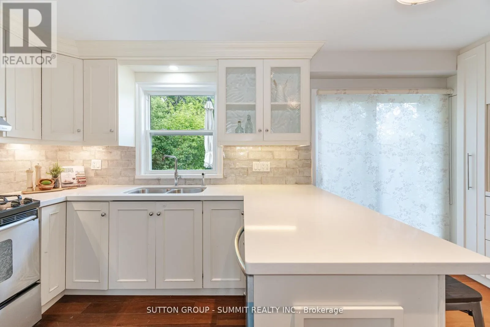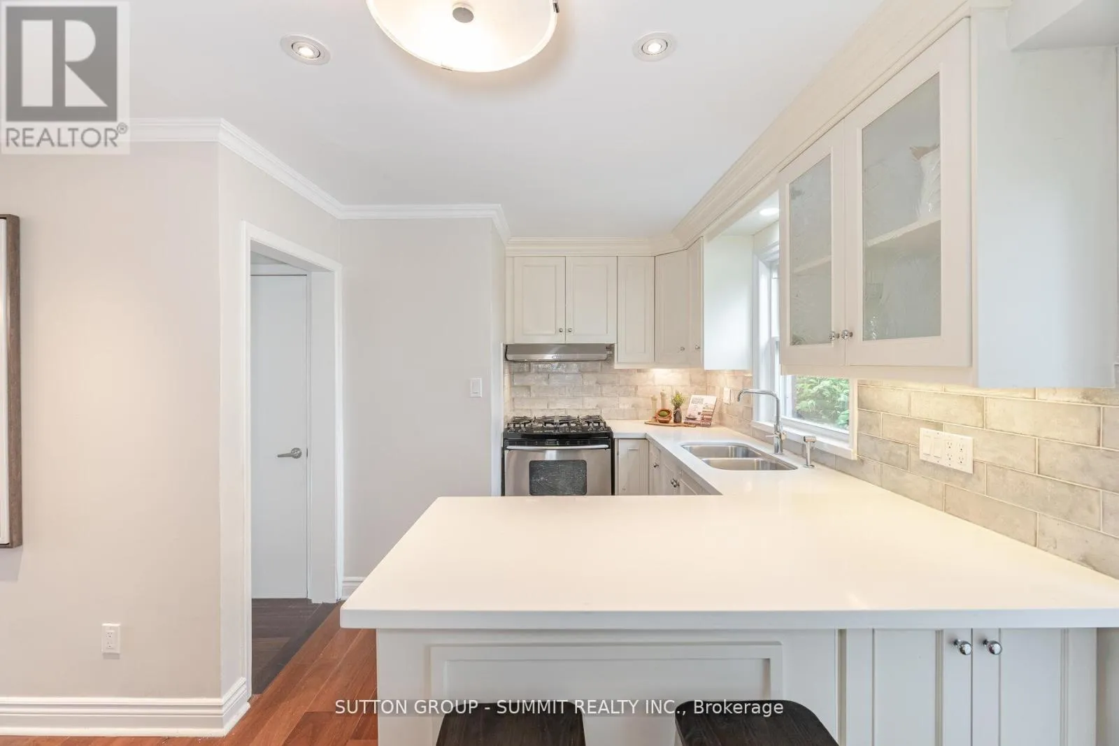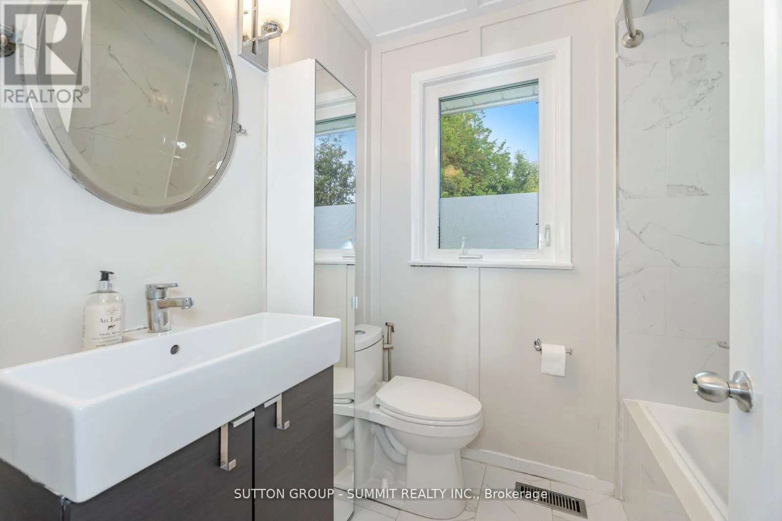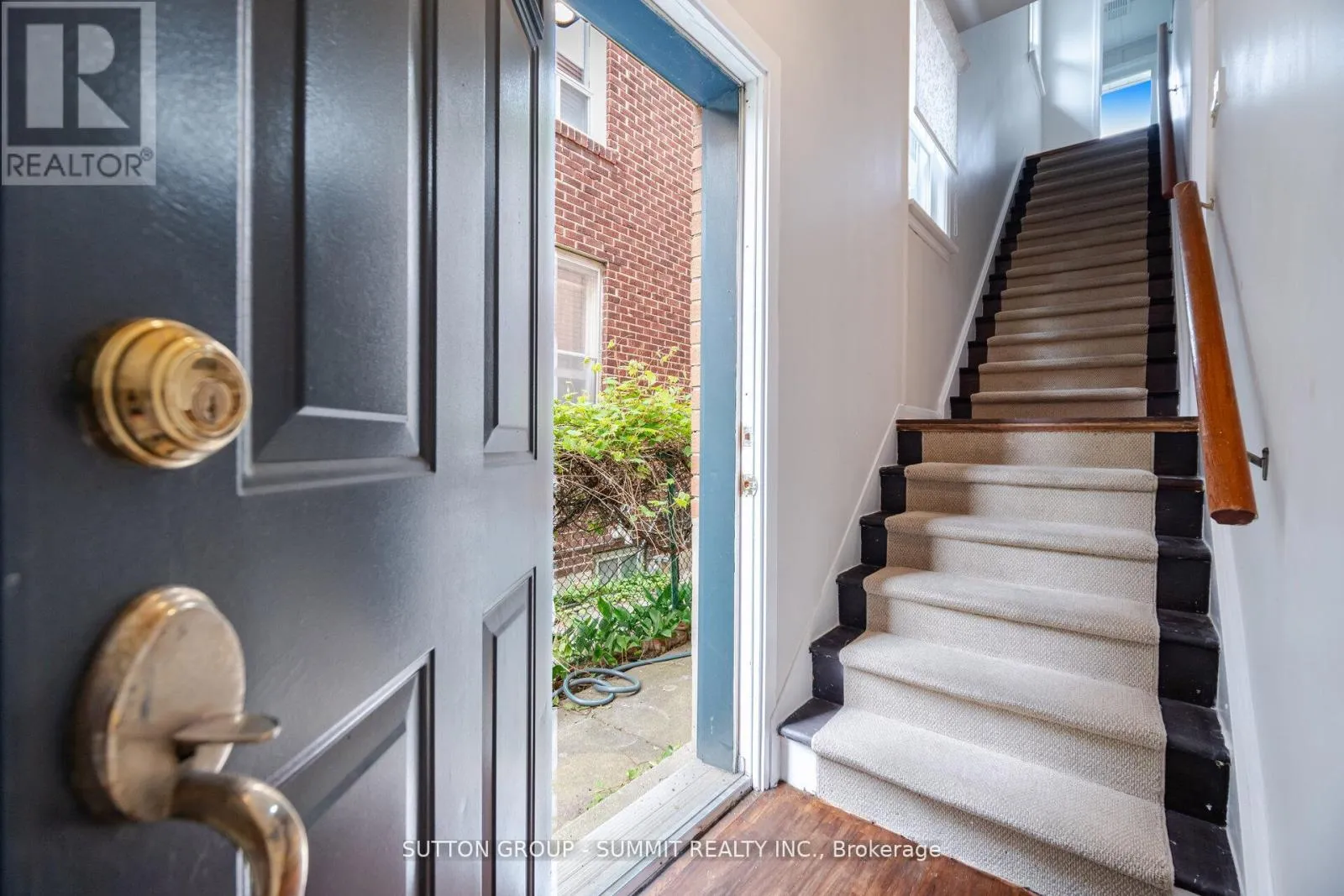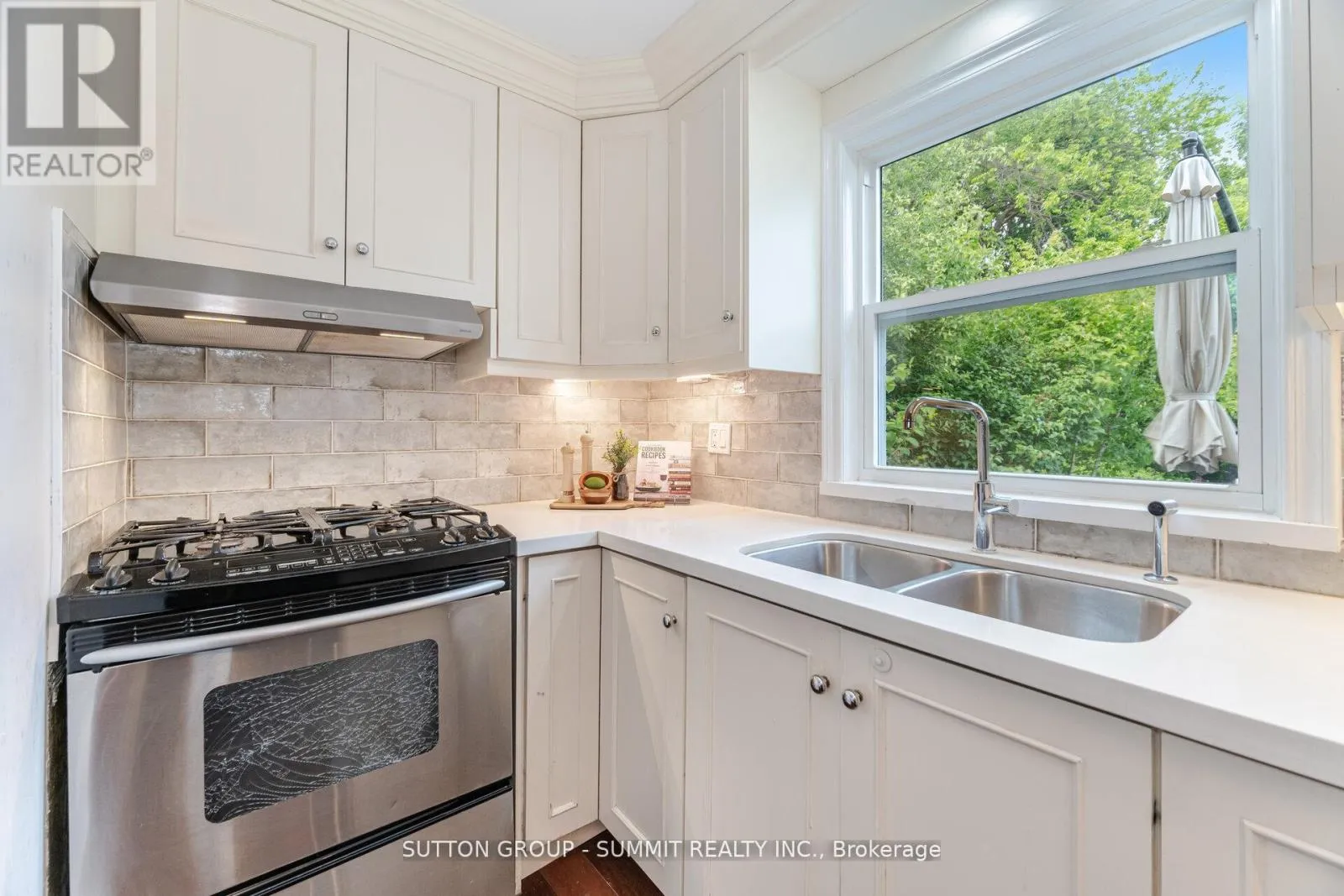 The Queensway & Stephen Drive Discover Elevated Living in This Bright & Private Hilltop Home! Tucked away on a quiet, no-through lane just off Stephen Drive, this beautifully positioned home offers rare privacy and elevation set back from the main road on a gentle rise, ensuring peaceful living while staying connected to everything that matters. This 3+1 bedroom,3-bathroom home features a sun-filled east-west orientation that brings in natural light throughout the day from morning sun in the kitchen and backyard to golden afternoon light in the living room and primary bedroom. The open-concept main floor is perfect for modern living, with a stylish kitchen, spacious dining area, sunlit living room,hardwood floors, and a convenient 2-piece powder room. The lower-level mezzanine offers a separate side entrance, high ceilings, large windows, a 3-piece bathroom, and a fourth bedroom ideal as an office, guest space,or in-law suite. The detached double garage, accessed via a side deck walk-out, offers great potential for a home office or studio conversion. Just minutes to the Gardiner Expressway, Bloor West Village, the Lakeshore, and TTC access, with Sobeys, LCBO, and St. Mark Catholic School within walking distance this home delivers the perfect balance of serenity and convenience. (id:27476)