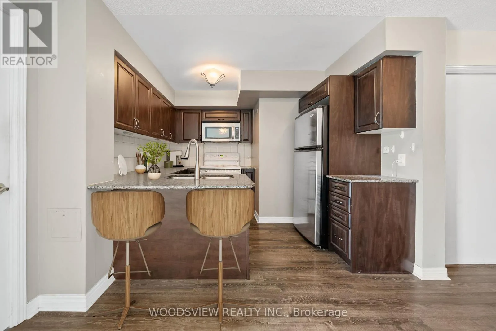 Warden Ave & St. Clair Ave Welcome to Wilshire on the Green Boutique Living in a Prime Location! Step into this beautifully upgraded 2-bedroom suite, perfectly situated just steps from Warden Station. Featuring a bright, functional layout and a rarely offered floor plan, this unit boasts 704 sq. ft. of interior space plus a massive southern facing 162 sq. ft. balcony, ideal for outdoor entertaining. Enjoy stylish new laminate flooring throughout, a modern kitchen with stainless steel appliances, a breakfast bar, new faucets, and upgraded light fixtures. The spacious semi-ensuite bathroom offers a relaxing soaker tub, while the primary bedroom includes a custom closet organizer for optimal storage. Additional perks include a large entryway closet, ensuite laundry, premium parking and large storage locker conveniently located near the elevator.The building offers excellent amenities, including a full-sized gym and a beautifully landscaped rooftop terrace, perfect for BBQs and hosting family or friends. Freshly painted and professionally cleaned, this move-in ready gem is a short stroll to Warden Subway, Warden Woods Conservation Area, schools, and shopping. A perfect blend of comfort, convenience, and value, this is urban living at its best! (id:27476)