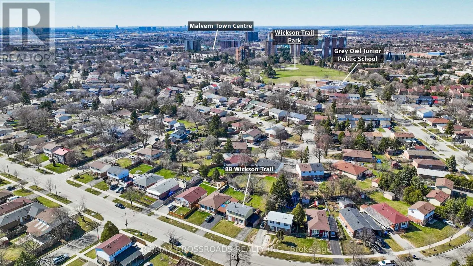 Cross Streets: Sheppard Ave E & Neilson Rd and McLevin Ave & Morningside Ave. ** Directions: Go East on Wickson Tr, From Neilson Rd. Step Into Style, Comfort & Space, Welcome to 88 Wickson Trail, Toronto A Move-In-Ready Gem in Scarborough Nestled in one of Scarborough's most well-connected communities, This a beautifully upgraded 3+1 bedroom, 2-bath detached home designed for modern living. Whether you're a first-time buyer, remote-working professional, growing family, or savvy investor, this freshly painted beauty delivers exceptional value and lifestyle appeal. The main level welcomes you with a warm, airy layout enhanced by natural sunlight streaming through large windows. The heart of the home is a completely redesigned kitchen, featuring a large center island, quartz countertops, matching backsplash, abundant cabinetry, and stainless steel appliances, including a built-in microwave and dishwasher perfectly blending function with contemporary flair. Upstairs, you'll find three bright, well-sized bedrooms, while the finished basement (April 2025) expands your possibilities with a renovated fourth bedroom, utility room, and a spacious recreation area ideal as a home office, playroom, or media lounge. Outside is your private escape an oversized fenced yard complete with a massive 28.81 x 23.65 ft deck (half covered!), expansive patio space, and lush green surroundings perfect for summer BBQs, family fun, or peaceful mornings with coffee in hand. The private driveway accommodates three vehicles, and a brand-new asphalt shingles and gutters (installed April 2025) gives you added peace of mind. Located just minutes from Hwy 401, TTC, schools, parks, and community centers, you're also a short drive to Scarborough Town Centre, Malvern Town Centre, Toronto Zoo, Centennial College, University of Toronto Scarborough, and several places of worship, Costco, Walmart Supercenter, Authentic Food Places. Whether your'e looking to move in or invest, this home offers the full package: comfort, convenience, curb appeal, and future potential. Furthermore, this could be the Home where your next chapter begins. (id:27476)