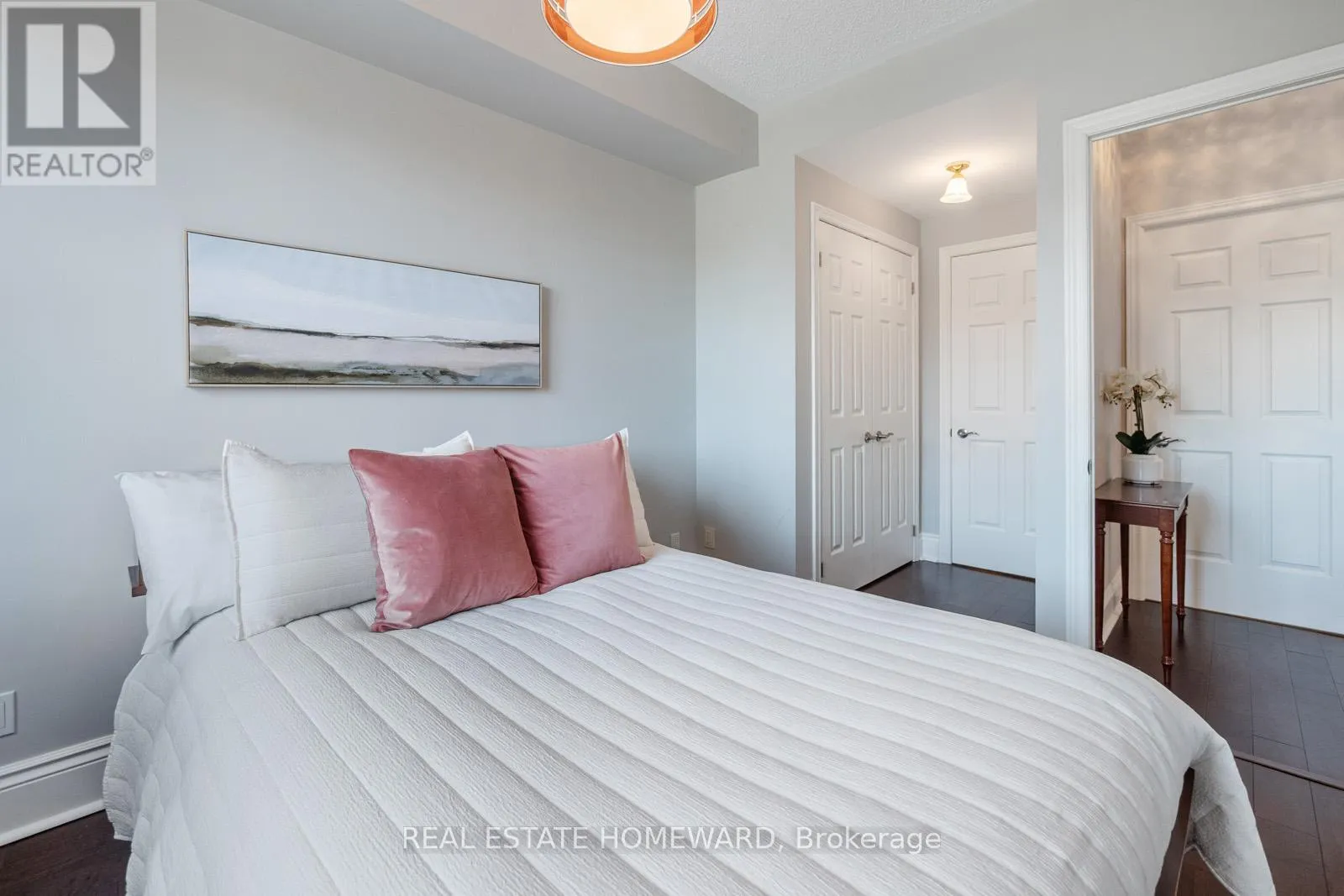 Cross Streets: Bloor Street W. & Royal York Road. ** Directions: South-West Corner of Bloor & Thompson Ave. Welcome to this lovely 2-bedroom, 2-bathroom condo in the sought-after boutique building, The Montgomery. Featuring open-concept living with high ceilings, hardwood floors and plenty of natural light, this split-bedroom layout offers privacy with a large primary bedroom complete with a walk-in closet, linen storage, and a 4-piece ensuite. The second bedroom includes a double closet and direct access to the secondary bathroom, ideal for visiting family or guests. With winter around the corner, enjoy the added convenience of a premium underground parking space and locker. With its prime location, this condo is an excellent option for those looking to downsize without compromise. (id:27476)