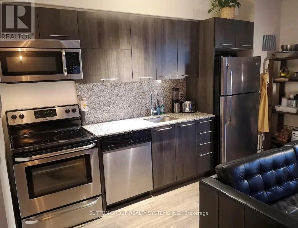 King & Dufferin Welcome to The Bridge Condos! This rare 1-bedroom suite comes with 1 underground parking space and locker included! A true bonus in the heart of King West. Beautifully designed with an open-concept layout, this ground-floor home means no waiting for elevators and offers a private terrace that's perfect for entertaining or relaxing in a quiet residential setting. Ideal for pet lovers, with a dog park just across the street! Additional features include soaring 9 ft ceilings, granite countertops, stainless steel appliances. Unbeatable location - just steps to Liberty Village, Queen West, convenient transit options, the GO Train, and quick access to the QEW. Surrounded by parks, restaurants, nightlife, and endless shopping, you'll have everything you need right at your doorstep. **Tenants responsible for Hydro** (id:27476)