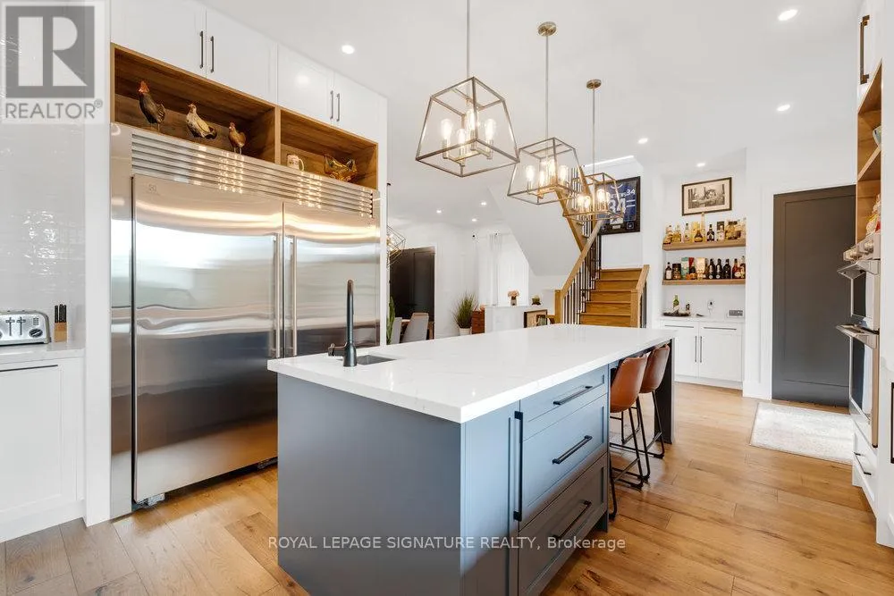 Pharmacy Ave & St Clair Ave E Welcome to an exceptional custom-built residence that seamlessly blends modern luxury, timeless elegance, and thoughtful design, offering 2,595 sq. ft. above grade and set on a generous 50 x 131 ft lot with a massive professionally landscaped backyard featuring an interlocking stone patio, custom fire pit, and full privacy fencing for the ultimate outdoor retreat. Inside, the sun-filled open-concept main floor is designed for both everyday living and entertaining, highlighted by a chefs kitchen overlooking the backyard with a large centre island offering seating on both sides, premium stainless steel built-in appliances including a 72" fridge, wall oven and microwave, a full induction stove with secondary oven, and a seamless flow into the living room anchored by a sleek gas fireplace. Main floor conveniences include laundry facilities and a functional layout through the principal rooms. Upstairs, the private quarters offer three spacious bedrooms, with the luxurious primary retreat boasting a walk-in closet and spa-inspired ensuite featuring a double vanity and oversized glass shower, while the second and third bedrooms are connected by a beautifully appointed 5-piece semi-ensuite with both a tub and glass shower, and every bathroom enhanced with heated floors for year-round comfort. The finished basement with a separate side entrance provides exceptional versatility as an in-law suite, complete with a second kitchen, a large recreation room, a spacious bedroom with walk-in closet, and a full bathroom with heated flooring. Additional highlights include a whole-home natural gas generator and surveillance cameras, combining peace of mind with modern elegance, premium upgrades, and functional design making this the perfect home to welcome its next family! (id:27476)