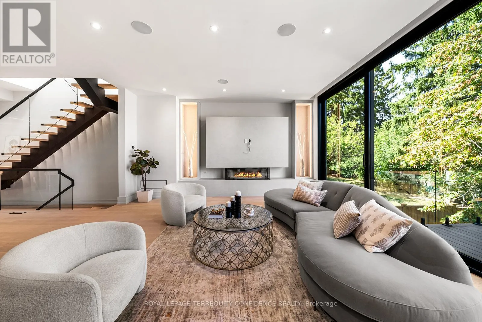 Cross Streets: Finch / Senlac. ** Directions: West from Yonge/Finch, turn left onto Senlac Rd, right onto Horsham Ave. Step into a world of exquisite luxury at 276 Horsham Ave. This stunning, custom-built home boasts an array of magnificent features throughout; and sits in the heart of Willowdale West with walking distance to Yonge St. Enter to find the marvelous foyer, with heated floors and a soaring 13' ceiling. Living & dining rooms include Built-In speakers and are filled with natural light flowing in from large windows; the beautiful, modern kitchen is equipped with a large centre island, high-end Built-In appliances, porcelain countertops and backsplash; and the picturesque family room with floor-to-ceiling aluminum sliding doors, Built-In speakers, a 3-sided gas fireplace, Built-In cabinets & large bench, and walkout to the composite deck w/ glass railing. Journey up to the second floor, bright with 5 skylights, laundry, and 4 bedrooms; including the peaceful primary room, complete with a walk-in closet, Built-In speakers, 6 Pc ensuite with heated floors & rain shower, and a view of the lush backyard. Downstairs, the finished basement includes incredible 13' high ceilings, a recreation room with heated floors, wet bar w/ drink cooler, Built-In speakers, and walkout to the outdoor patio, bedroom with a 4 Pc bath, and an additional laundry room. Throughout the home, discover even more refined features, including: aluminum windows, mono beam stairs w/ LED lighting underneath, central vacuum, precast facade, engineered hardwood, Smart Home functionalities, sump pump, backflow preventer, garage w/ EV charger rough-ins, landscape lighting, sprinkler system, and fenced backyard. Enjoy the convenience of living at a truly superb location, only minutes to Yonge St, walkable parks, schools, North York Center subway station, community centers, shops, and more. (id:27476)