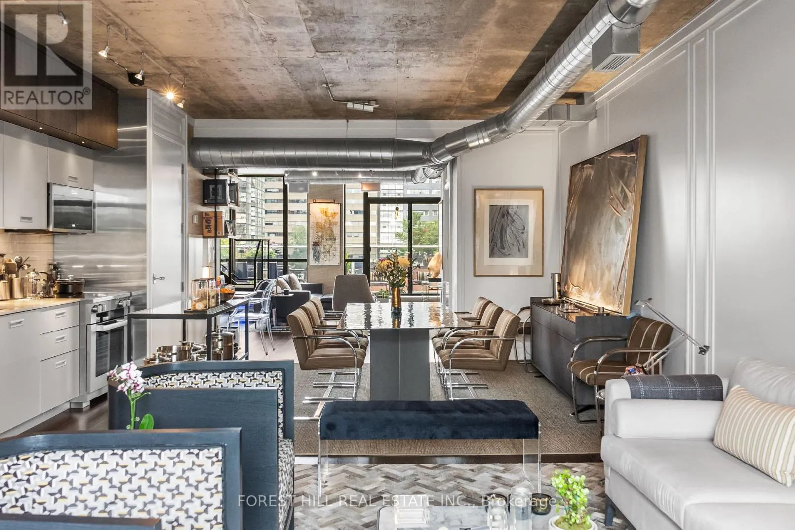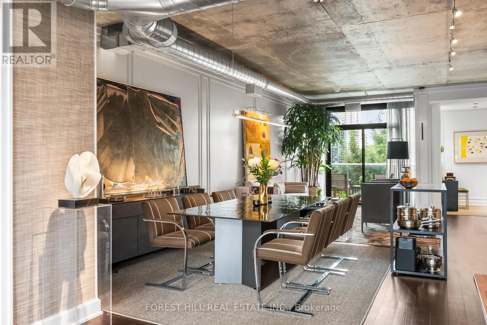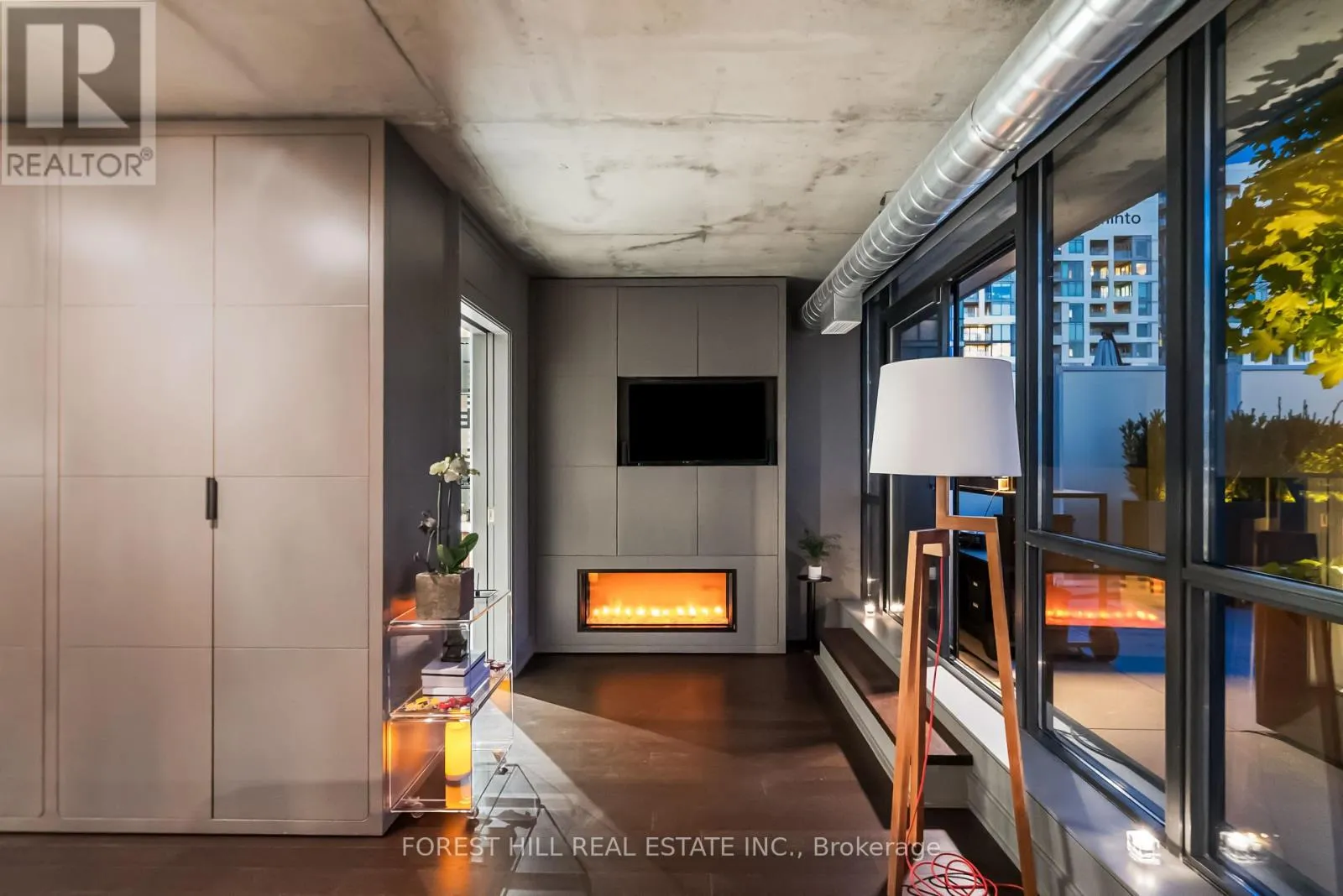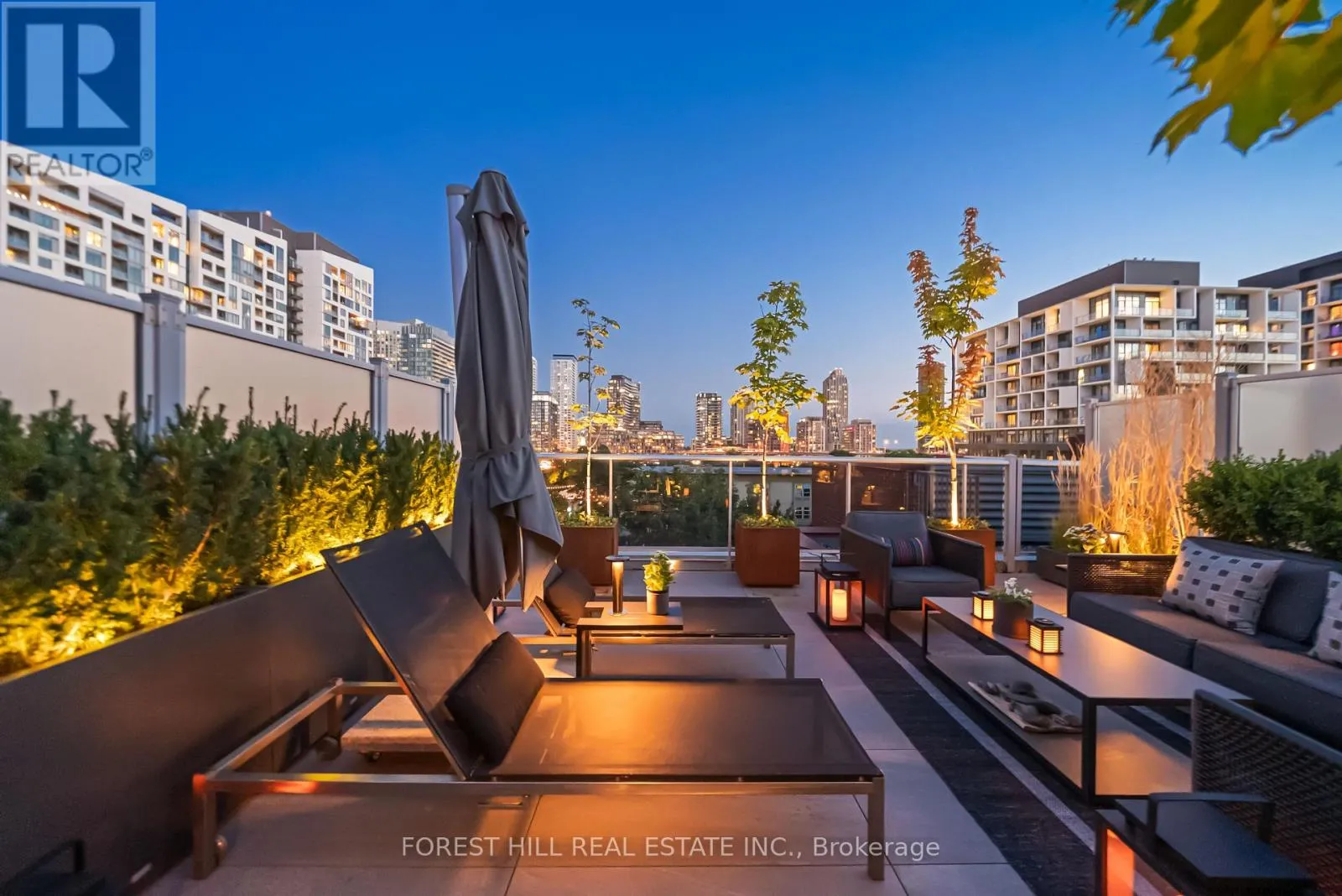 Cross Streets: King & Bathurst. ** Directions: -. Your King West dreams are made of this. Welcome to this bespoke two-storey penthouse, custom-designed and newly rebuilt from top to bottom. This designer's own residence offers over 2100 square feet of sophisticated interior and exterior loft-style living space in the heart of Toronto's vibrant King West neighbourhood. Located in a discreet 6-storey boutique building with only two units per floor on a quiet, tree-lined street, this extraordinary penthouse seamlessly blends industrial loft charm with luxuriously refined designer finishes. Not just one, but three private north and south-facing landscaped terraces totalling 610 square feet of sophisticated outdoor living space are perfect for entertaining or enjoying quiet moments overlooking the city skyline. The south-facing living room features exposed concrete ceilings and ductwork juxtaposed with custom Brenlo mouldings and walks out to a terrace with an unobstructed south view over treetops. The kitchen features brand new Miele appliances, while the adjacent dining room comfortably seats 8 guests. The family room steps out onto a gorgeous northwest-facing terrace with a BBQ gas line, dining area, and Veradek planters with integrated lighting. Walk up to the extraordinary second-floor retreat, a true lifestyle experience. Featuring unobstructed north and south-facing windows, custom white oak millwork in the primary bedroom, and a 5-star ensuite with a steam room, spa shower, freestanding tub, and custom gold-plated fixtures. The crown jewel is the remarkable south-facing rooftop terrace, perfect for summer entertaining and fully landscaped with Veradek and corten steel backlit planters, a 6-zone custom irrigation system and large-format porcelain tiles. Ideally located within easy walking distance to the best of King Wests world class amenities, including restaurants, bars, The Well, Billy Bishop Airport, and the Stackt Market, this penthouse offers a refined lifestyle in the heart of the city. (id:27476)