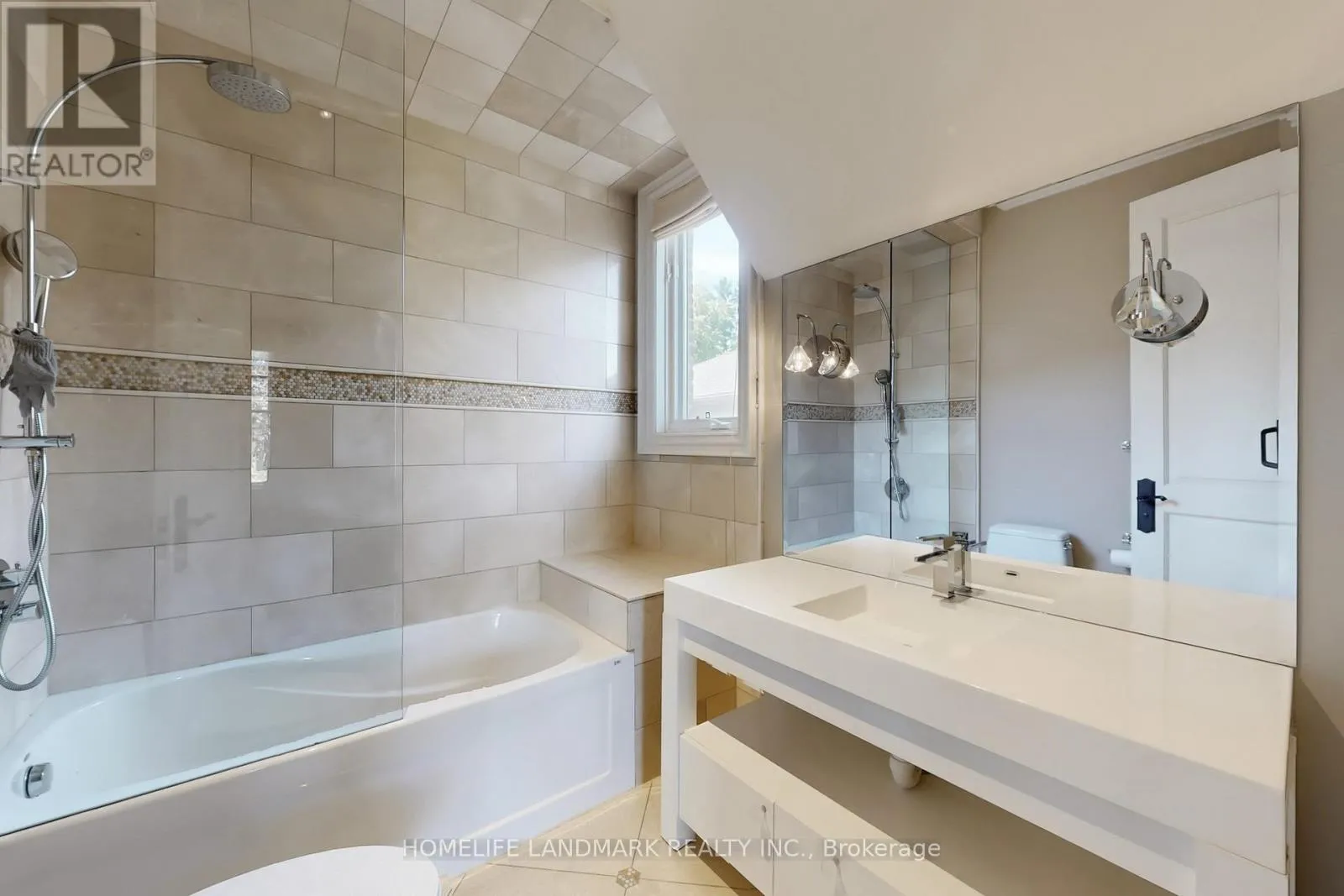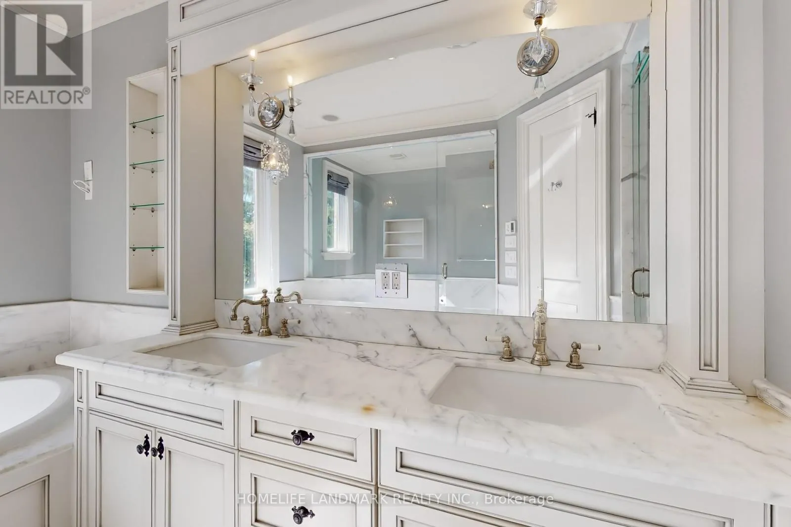 Bayview/York Mills Exquisitely Radiant Custom Home w/ South Exposure! Standing on prestigious, highly sought-after neighbourhood, this residence showcases a palette of luxurious finishes and masterful craftsmanship. Featuring a limestone façade and cedar roof, the home is fully equipped with On-Q smart home automation and built-in stereo speakers. Marble and quarter-cut oak flooring throughout. Open-concept family room and designer maple kitchen with a convenient servery. The opulent primary suite boasts a 7-piece spa-inspired ensuite, a private boudoir, and a cozy fireplace. A rare additional study graces the second floor. Crystal chandeliers, silk draperies, and custom blinds elevate every detail. The lower level offers a walk-out with a full entertainers bar, climate-controlled wine cellar, sauna, and nanny suite. A true turn-key masterpiece! (id:27476)
