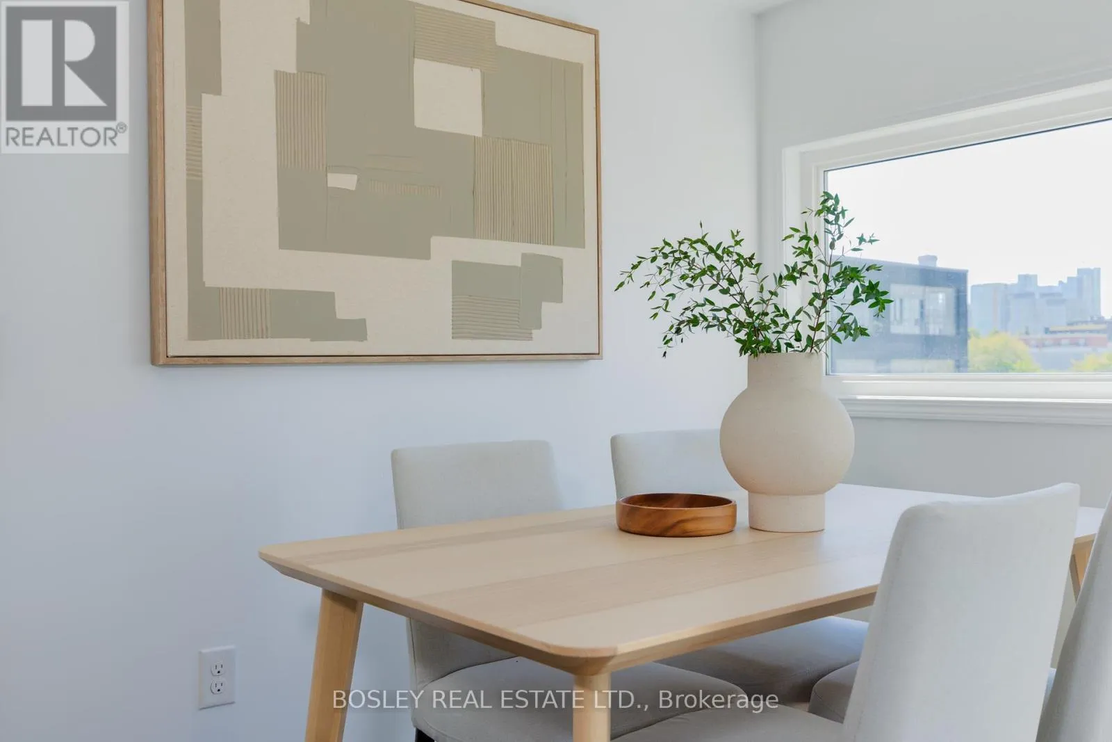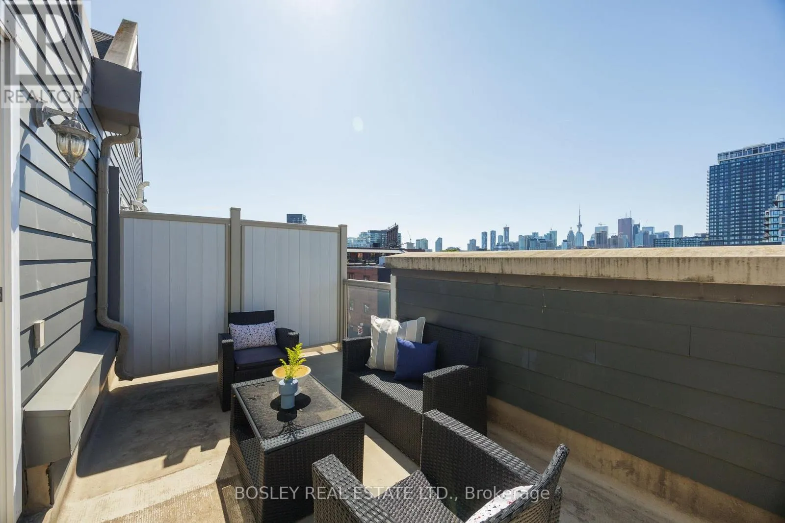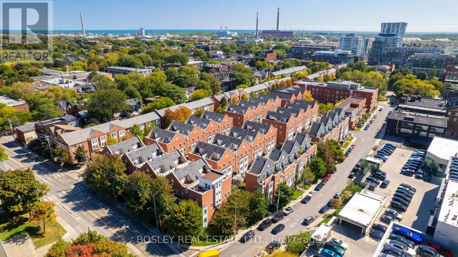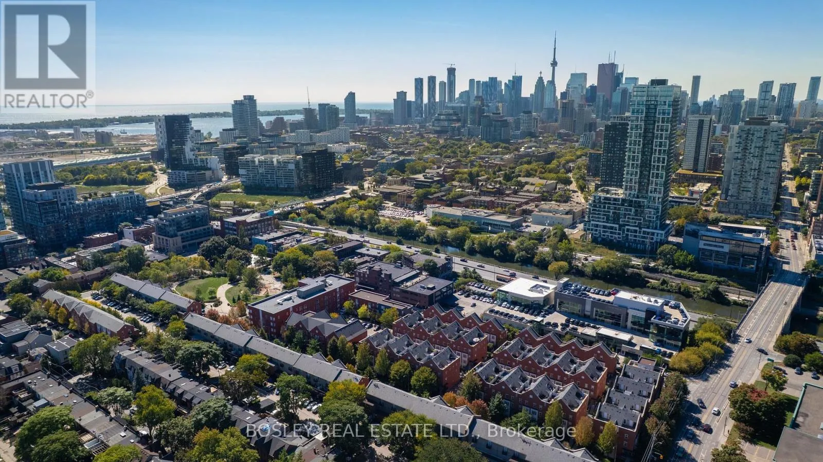 Dundas E/ Queen E/ Broadview Rare Find in South Riverdale: Stunning 3-Storey Modern Townhome with City Views! Welcome to this exceptional 3-bedroom, 3-bathroom townhome nestled in a quiet, family-friendly enclave of South Riverdale. Offering an abundance of space and natural light, this 1118 square foot home features two private outdoor spaces an east-facing patio perfect for al fresco dining, and a west-facing rooftop deck with breathtaking sunset views and a panoramic view of the CN Tower and city skyline. The main floor boasts a spacious open-concept living and dining area, ideal for entertaining, with a convenient powder room. The chefs kitchen is equipped with stainless steel appliances, a breakfast bar, and plenty of storage. On the second floor, you'll find two generously sized bedrooms and an updated main bath. The third floor provides a versatile, flexible space perfect as a third bedroom, office, gym, or additional family room, with direct access to the rooftop oasis. This home is fully upgraded with custom kitchen cabinetry, granite countertops, motorized blinds in the living room, and a custom glass shower in the third-floor bath. Enjoy the convenience of a rented tankless water heater, Ecobee smart thermostat, and new carpet on the second and third floors. Included with the property are two underground parking space, and maintenance fees include water, building insurance, parking, common elements, and internet! Located just steps from the trendy shops and restaurants of Leslieville and Riverside, and only minutes from the Canary District, Distillery District, Beaches, and Danforth, you're at the center of it all! Easy access to the DVP and Gardiner Expressway, with public transit practically at your doorstep. This is the perfect home for those seeking a combination of urban living, comfort, and style in one of Toronto's most coveted neighborhoods. (id:27476)