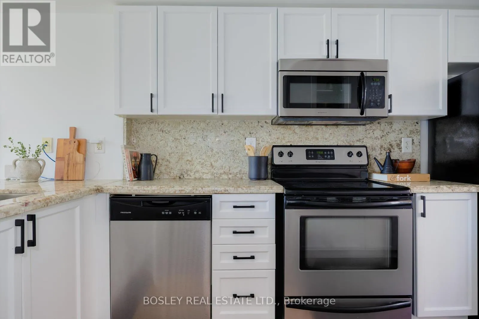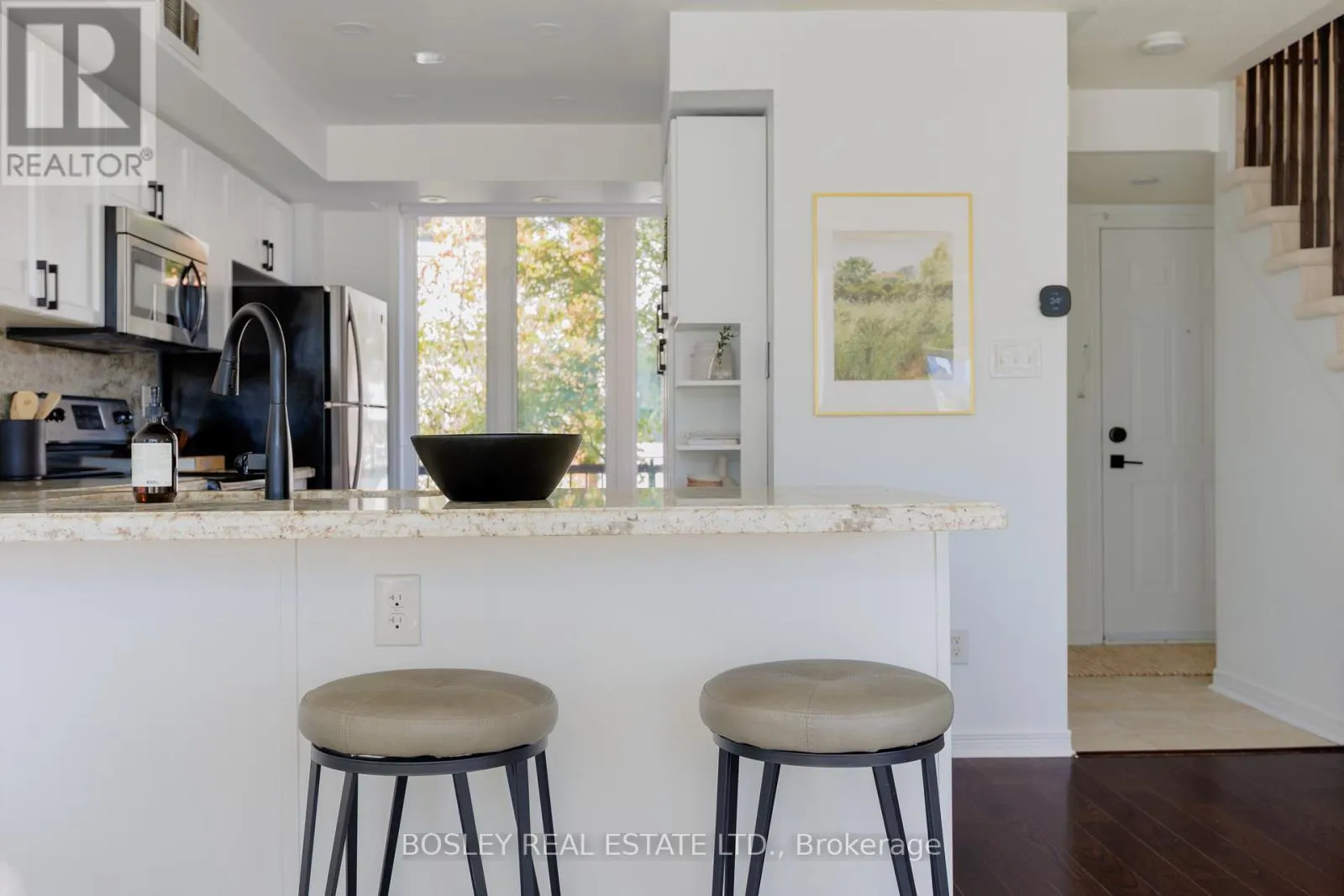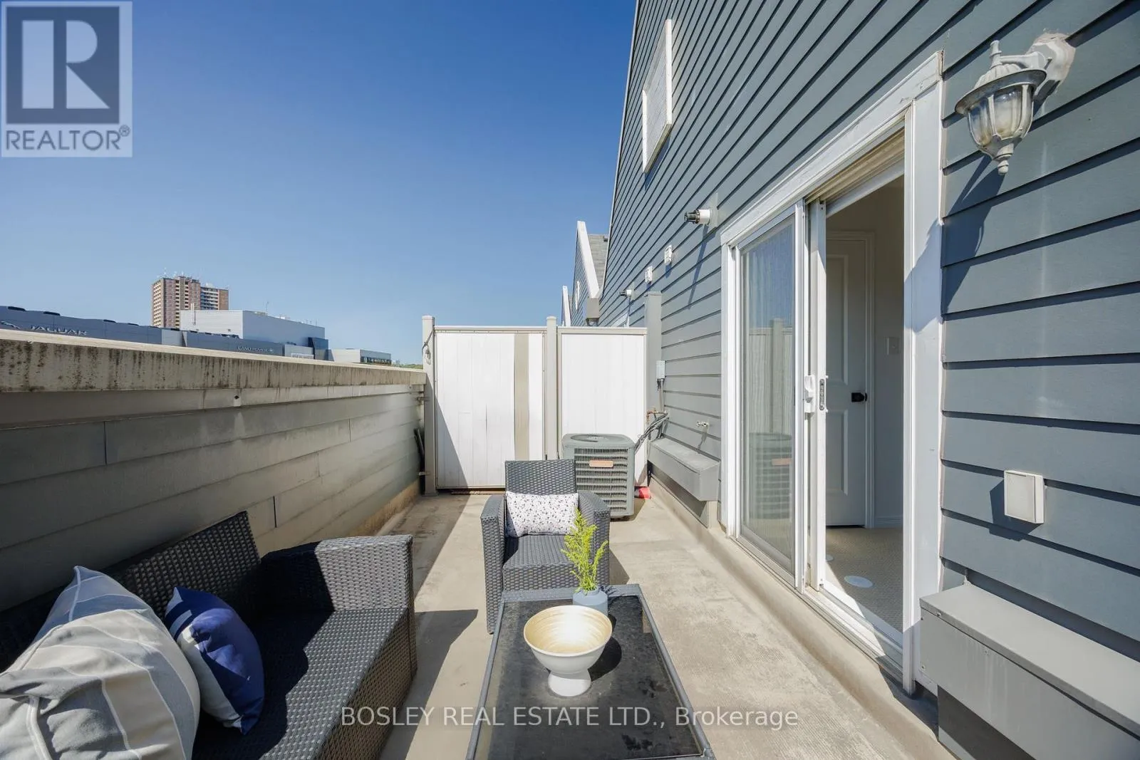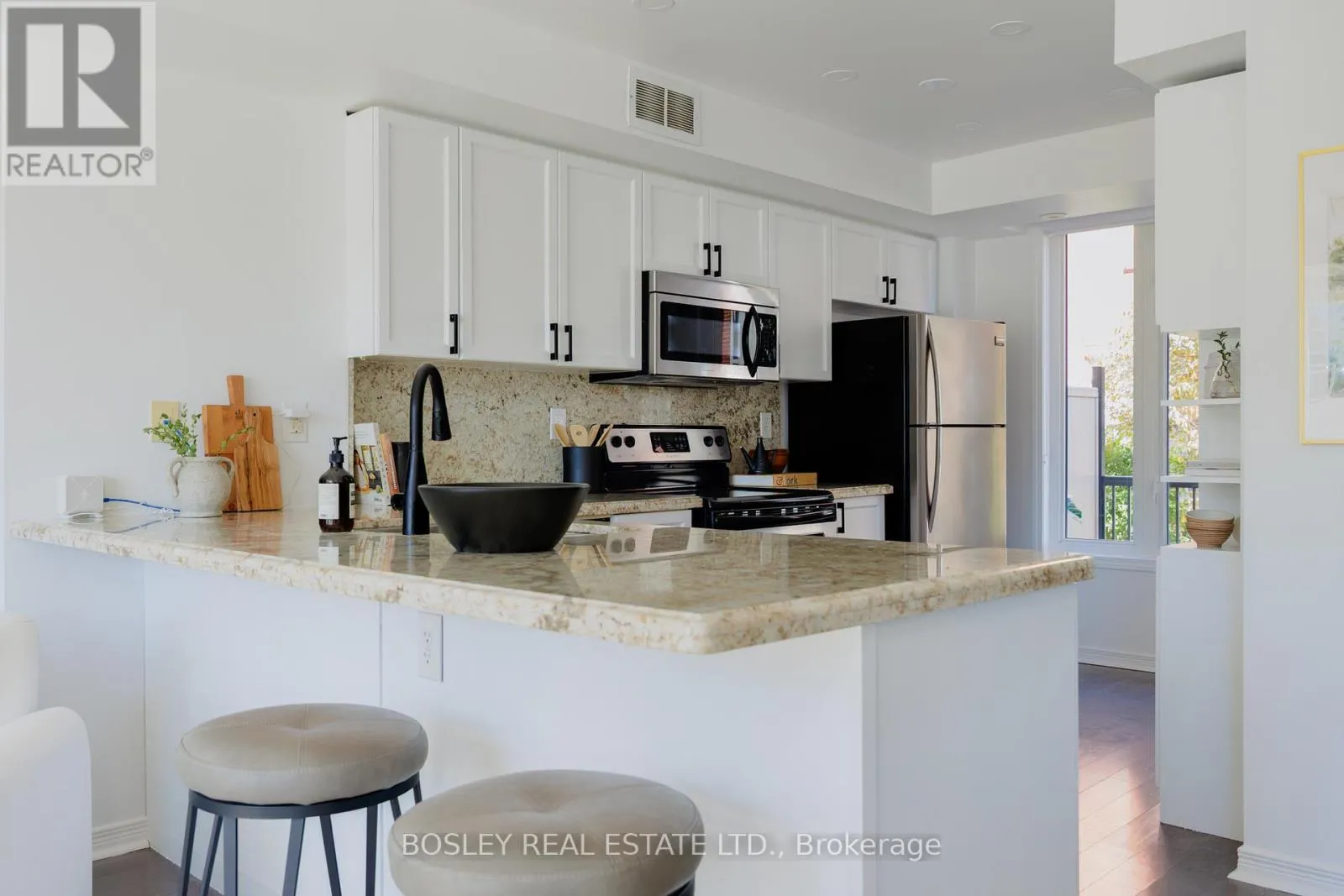 Dundas E/ Queen E/ Broadview Rare Find in South Riverdale: Stunning 3-Storey Modern Townhome with City Views! Welcome to this exceptional 3-bedroom, 3-bathroom townhome nestled in a quiet, family-friendly enclave of South Riverdale. Offering an abundance of space and natural light, this 1118 square foot home features two private outdoor spaces an east-facing patio perfect for al fresco dining, and a west-facing rooftop deck with breathtaking sunset views and a panoramic view of the CN Tower and city skyline. The main floor boasts a spacious open-concept living and dining area, ideal for entertaining, with a convenient powder room. The chefs kitchen is equipped with stainless steel appliances, a breakfast bar, and plenty of storage. On the second floor, you'll find two generously sized bedrooms and an updated main bath. The third floor provides a versatile, flexible space perfect as a third bedroom, office, gym, or additional family room, with direct access to the rooftop oasis. This home is fully upgraded with custom kitchen cabinetry, granite countertops, motorized blinds in the living room, and a custom glass shower in the third-floor bath. Enjoy the convenience of a rented tankless water heater, Ecobee smart thermostat, and new carpet on the second and third floors. Included with the property are two underground parking space, and maintenance fees include water, building insurance, parking, common elements, and internet! Located just steps from the trendy shops and restaurants of Leslieville and Riverside, and only minutes from the Canary District, Distillery District, Beaches, and Danforth, you're at the center of it all! Easy access to the DVP and Gardiner Expressway, with public transit practically at your doorstep. This is the perfect home for those seeking a combination of urban living, comfort, and style in one of Toronto's most coveted neighborhoods. (id:27476)