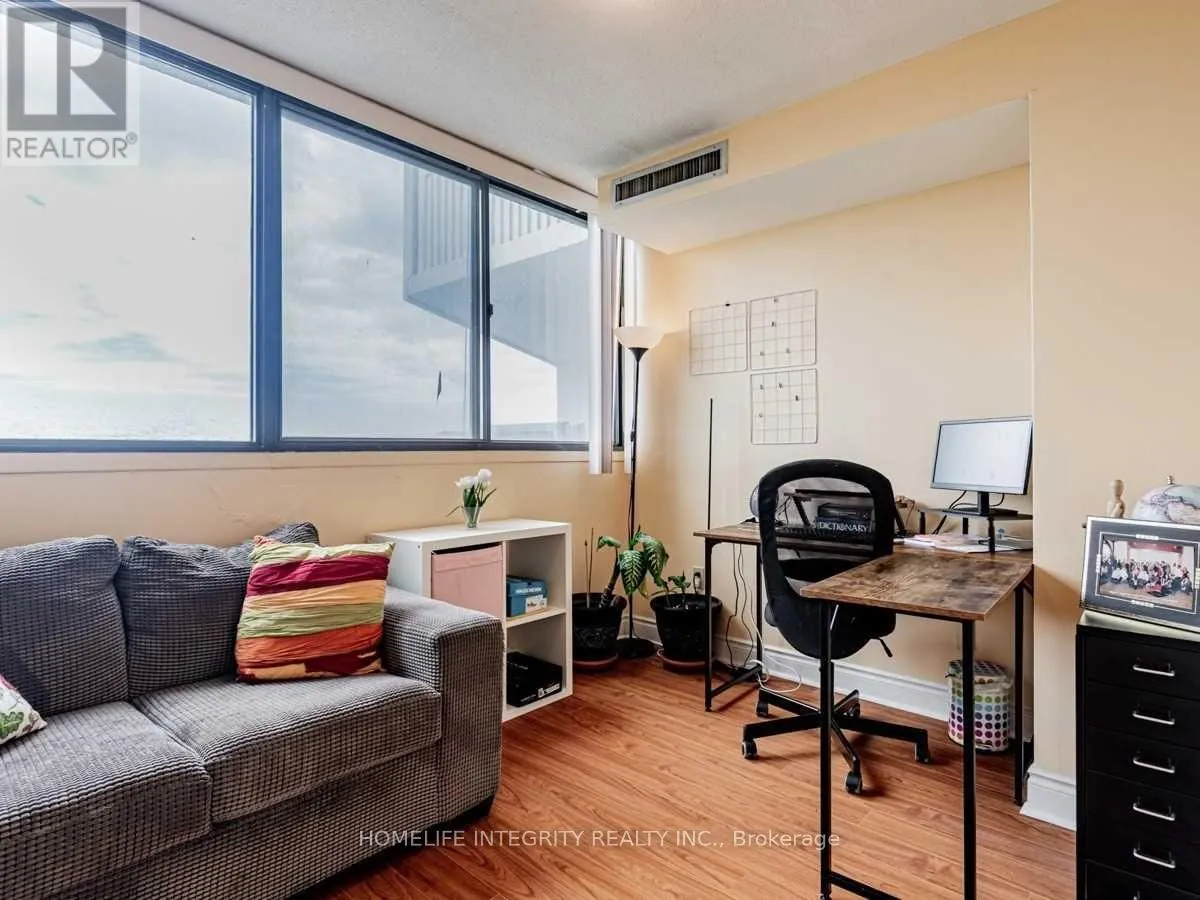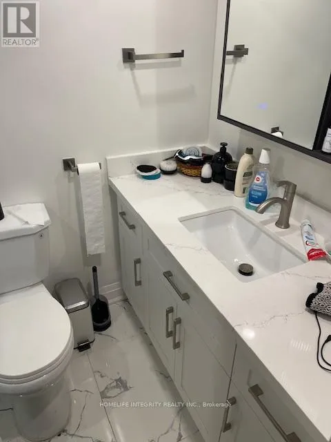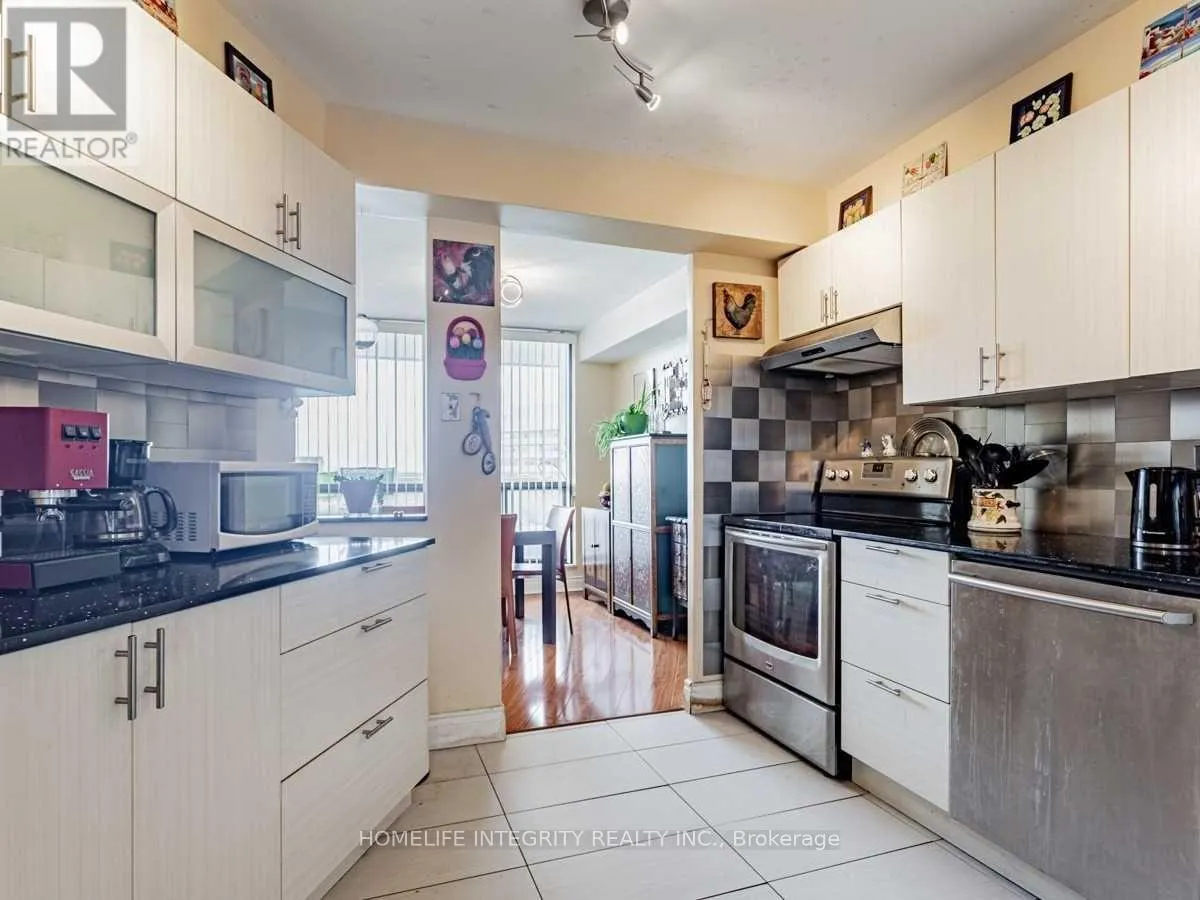 Bathurst/Wilson /401 This bright and airy corner unit is situated in a highly sought-after building, offering both comfort and convenience. Enjoy a modern, gourmet kitchen featuring sleek quartz countertops and plenty of storage space. Both bathrooms have been tastefully updated one with quartz counters and the other with elegant granite. The generous living and dining areas provide the perfect setting for entertaining guests, with easy access to two large balconies, one of which is off the primary bedroom for a private retreat. Other highlights include newer laminate flooring throughout, ensuite laundry, and contemporary light fixtures that add a touch of modern style to the space. (id:27476)