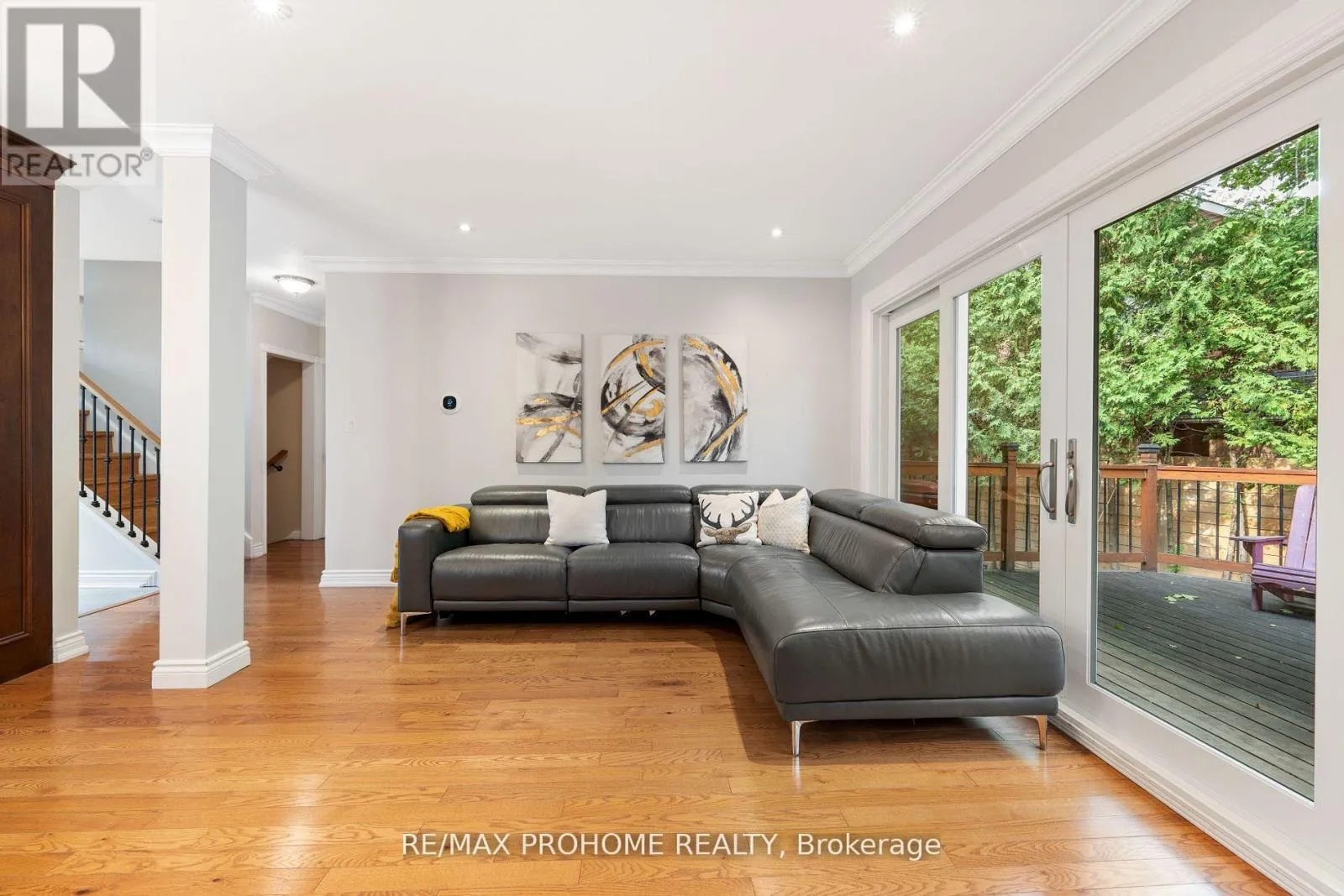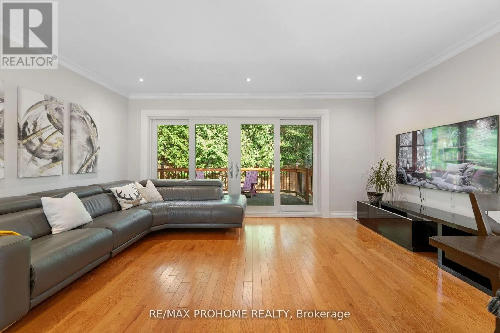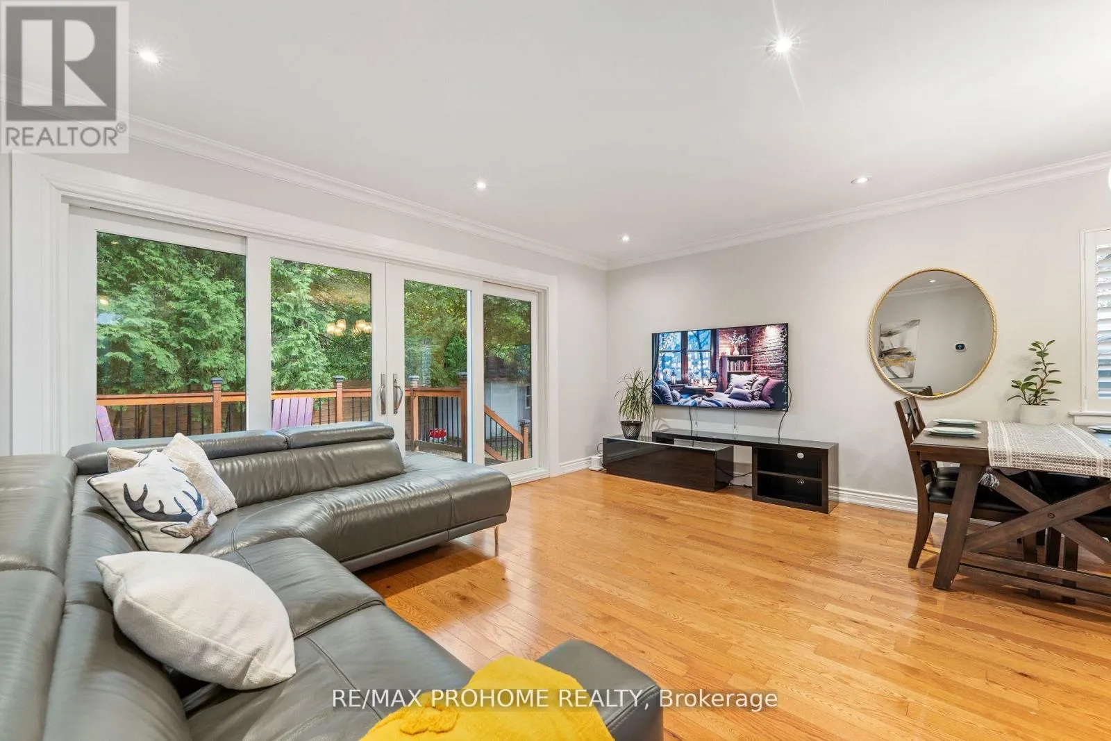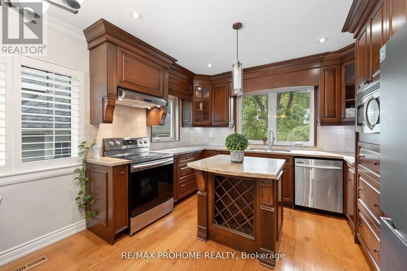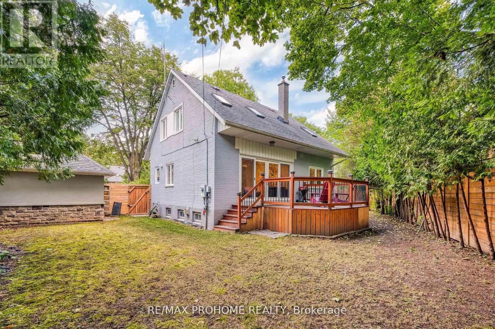 Leslie/Lawrence Prestigious Banbury! Cozy yet elegant 1.5-storey family home on beautiful huge pie-shaped corner lot, surrounded by multi-million-dollar new builds. Fully renovated, turn-key interior with hardwood floors, crown moulding, smooth ceilings & California shutters. Gourmet kitchen w/ quartz counters, backsplash, custom cabinetry & S/S appliances. Open-concept living/dining w/ walkout to large deck & private fenced yard. Main floor bedroom & 3-pc bath. 3 skylight bedrooms upstairs w/ abundant natural light. Finished basement perfect for rec room, office or gym. Detached garage + garden shed. Steps to scenic parks, trails, and top-rated schools, this home offers the perfect balance of tranquility and convenience, just minutes to the Shops at Don Mills, restaurants, and everyday amenities. (id:27476)