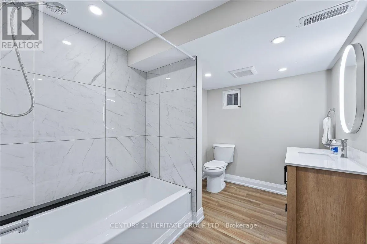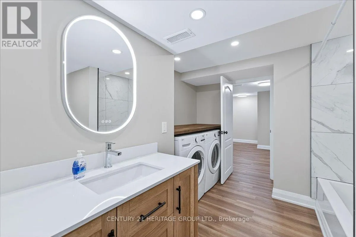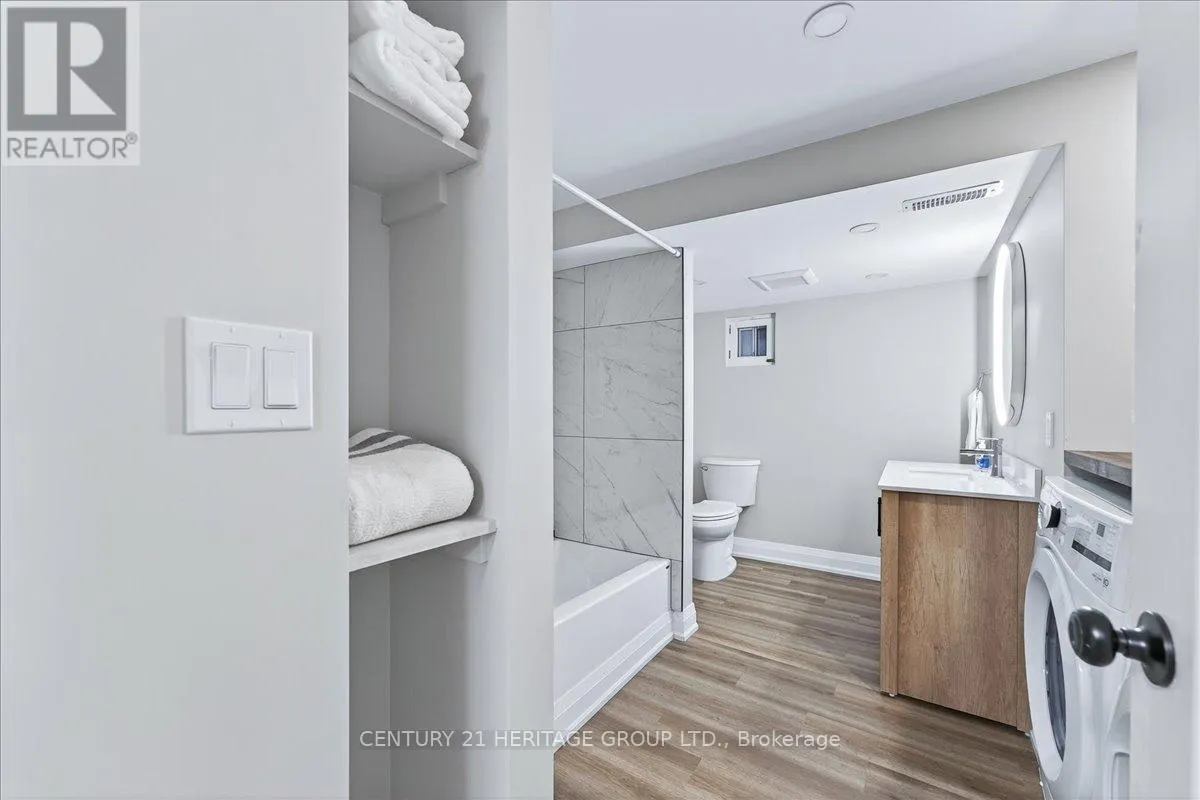 Bathurst and Sheppard Ave Welcome to this beautifully designed 2-bedroom, 1-bathroom basement home with stand-out features rarely found in lower-level homes. From the two dedicated parking spots, including covered garage parking, to the secluded rear patio and yard, this unit offers both convenience and comfort in equal measure.Inside, the thoughtful layout is packed with smart storage and functionality.The large eat-in kitchen is perfect for cooking and dining, featuring brand new all-white cabinetry, all new appliances, quartz countertops, and plenty of space to spread out.The generously sized great room is warm and welcoming, with large, sun-filled windows that make the space feel bright and airy.The oversized 4-piece bathroom includes a combined laundry area with a practical countertop above the full-size washer and dryer, ideal for sorting and folding, plus a designated space underneath to tuck away hampers and maintain a clean, streamlined look.Located close to all amenities, with an excellent walk score and easy access to public transit, this home offers the best of both convenience and connectivity.Perfect for those who appreciate extra space, modern finishes, and a thoughtfully designed layout. This fully renovated basement unit has never been lived in, a rare opportunity to enjoy a brand-new, private, and comfortable living space. (id:27476)