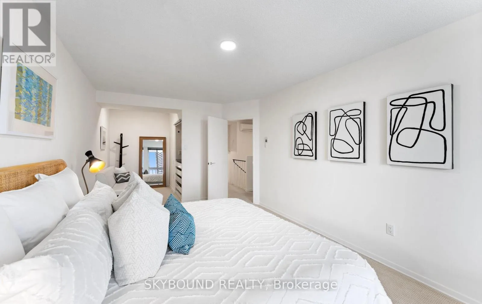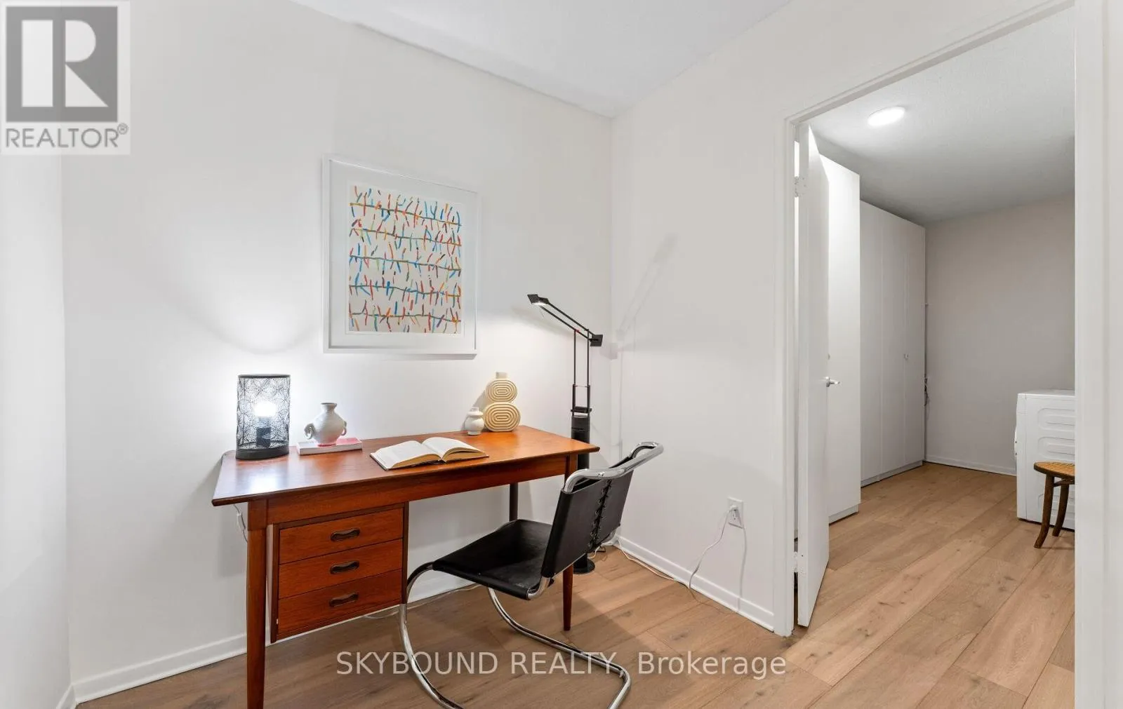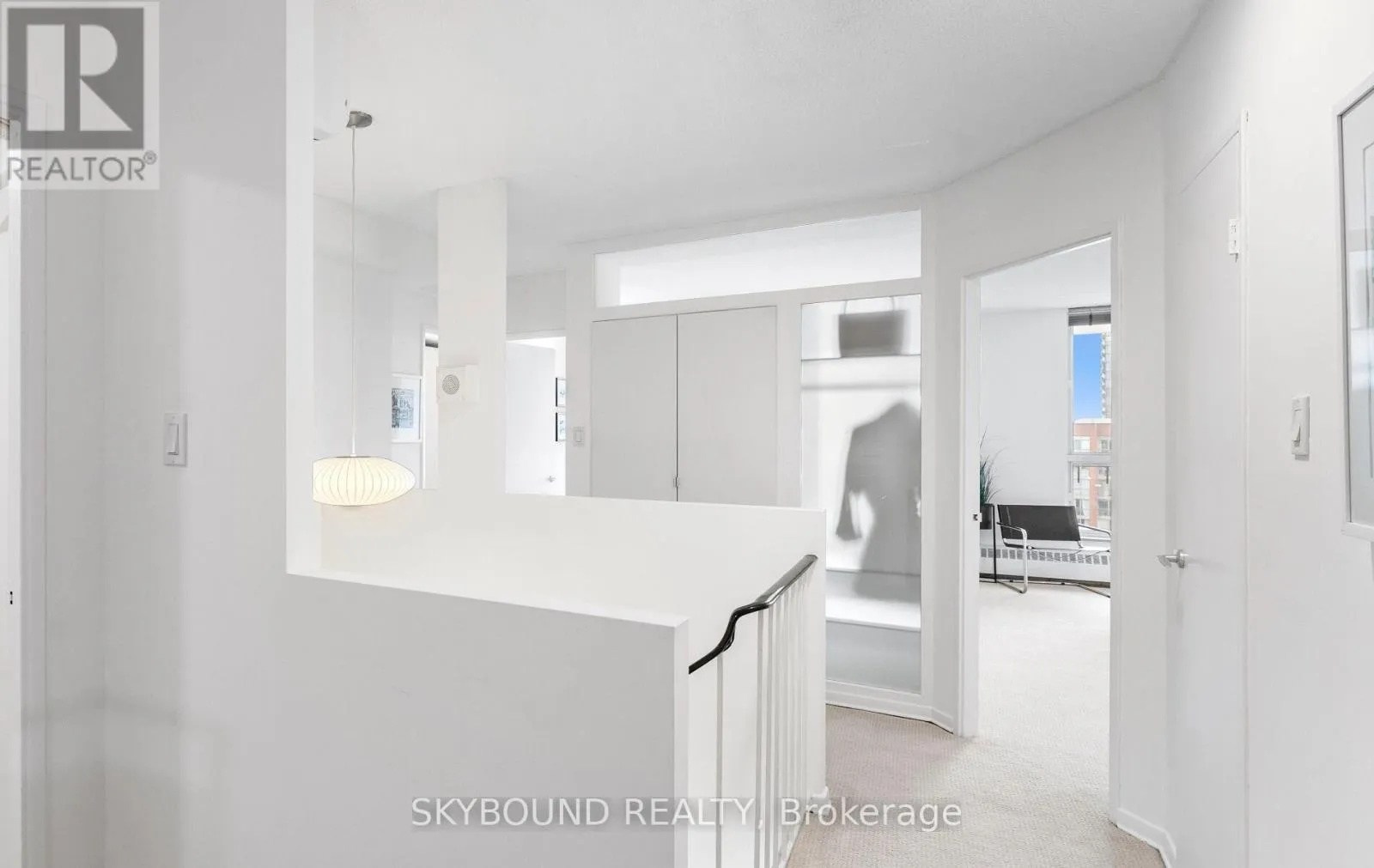 Cross Streets: S.Kingsway/The Queensway. ** Directions: S. Kingsway to Ormskirk Ave. Welcome to Unit 414 at 60 Southport St.- Light-filled with South facing views. MLS Southport Located in the desirable High Park/Swansea community, this 1512sf 2-storey home has been redesigned to offer a unique open concept layout, custom closets and large 3pc bathroom. This unit offers the largest floor plan in the building. Could be converted back to 3 bedrooms if desired. The main floor offers a bright open living and dining, with engineered hardwood floors, extra room to to curl up with a good book, an eat-in kitchen, powder room and sliding doors to a large balcony to enjoy from sunrise to sunset. The upper level offers two spacious bedrooms, den, laundry room with additional storage. The building is very well maintained with an on-site property manager , wonderful professional and responsive staff. Maintenance fees include all utilities + cable/internet. Residents also enjoy these wonderful amenities; pool, sauna, fully appointed fitness studio, yoga room, tennis courts and more! Perfect for someone either downsizing or with growing family. This unit is a gem in the west end! (id:27476)