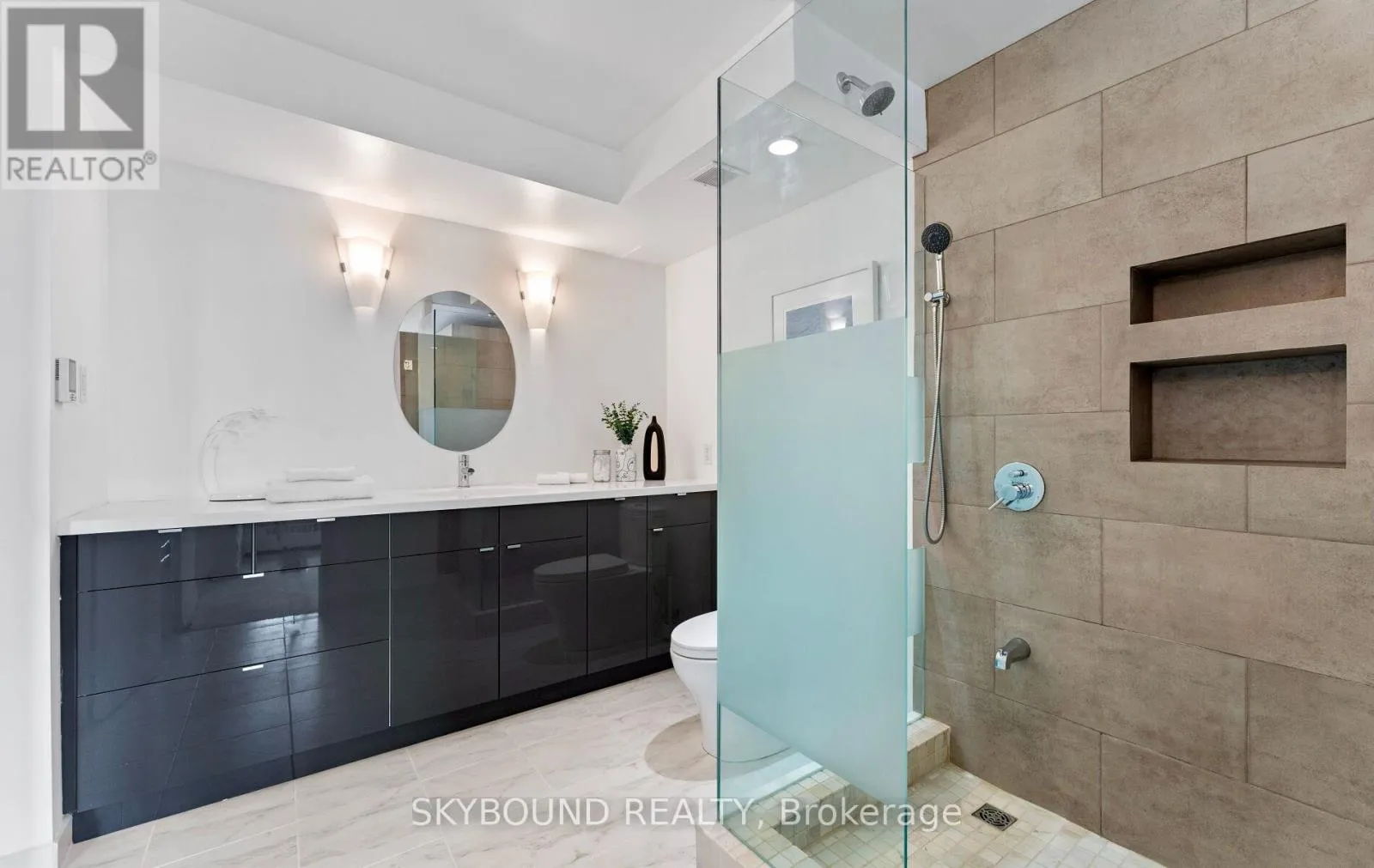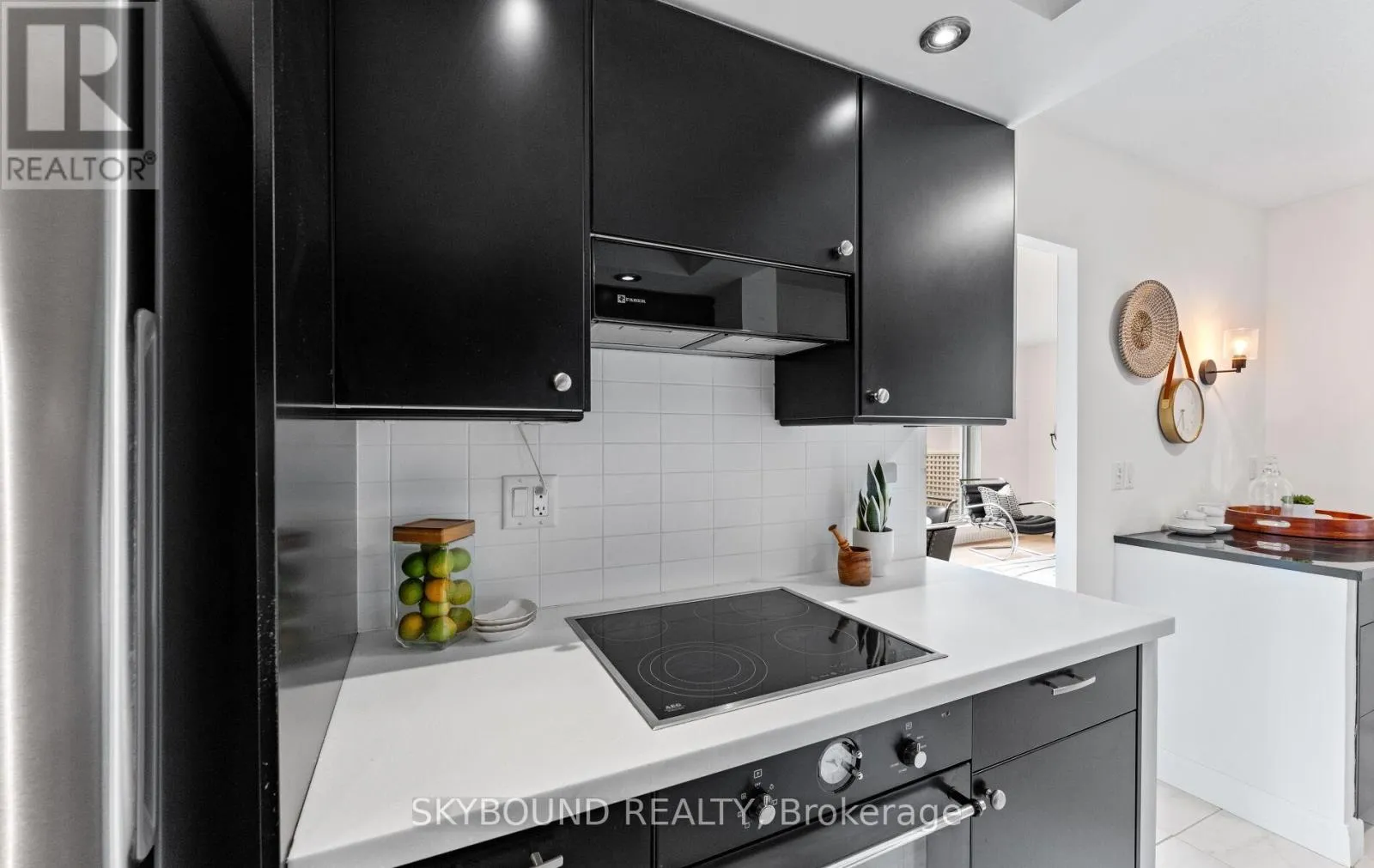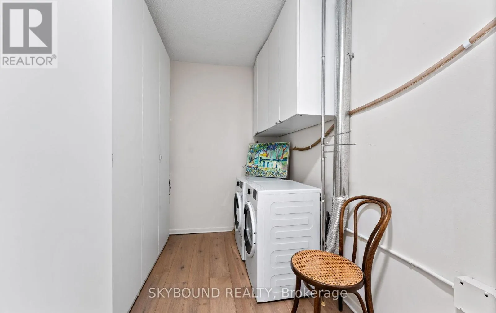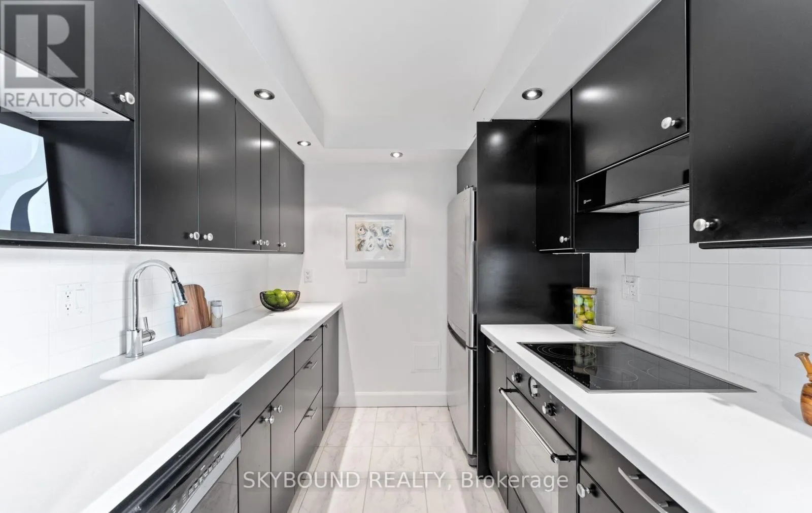 Cross Streets: S.Kingsway/The Queensway. ** Directions: S. Kingsway to Ormskirk Ave. Welcome to Unit 414 at 60 Southport St.- Light-filled with South facing views. MLS Southport Located in the desirable High Park/Swansea community, this 1512sf 2-storey home has been redesigned to offer a unique open concept layout, custom closets and large 3pc bathroom. This unit offers the largest floor plan in the building. Could be converted back to 3 bedrooms if desired. The main floor offers a bright open living and dining, with engineered hardwood floors, extra room to to curl up with a good book, an eat-in kitchen, powder room and sliding doors to a large balcony to enjoy from sunrise to sunset. The upper level offers two spacious bedrooms, den, laundry room with additional storage. The building is very well maintained with an on-site property manager , wonderful professional and responsive staff. Maintenance fees include all utilities + cable/internet. Residents also enjoy these wonderful amenities; pool, sauna, fully appointed fitness studio, yoga room, tennis courts and more! Perfect for someone either downsizing or with growing family. This unit is a gem in the west end! (id:27476)