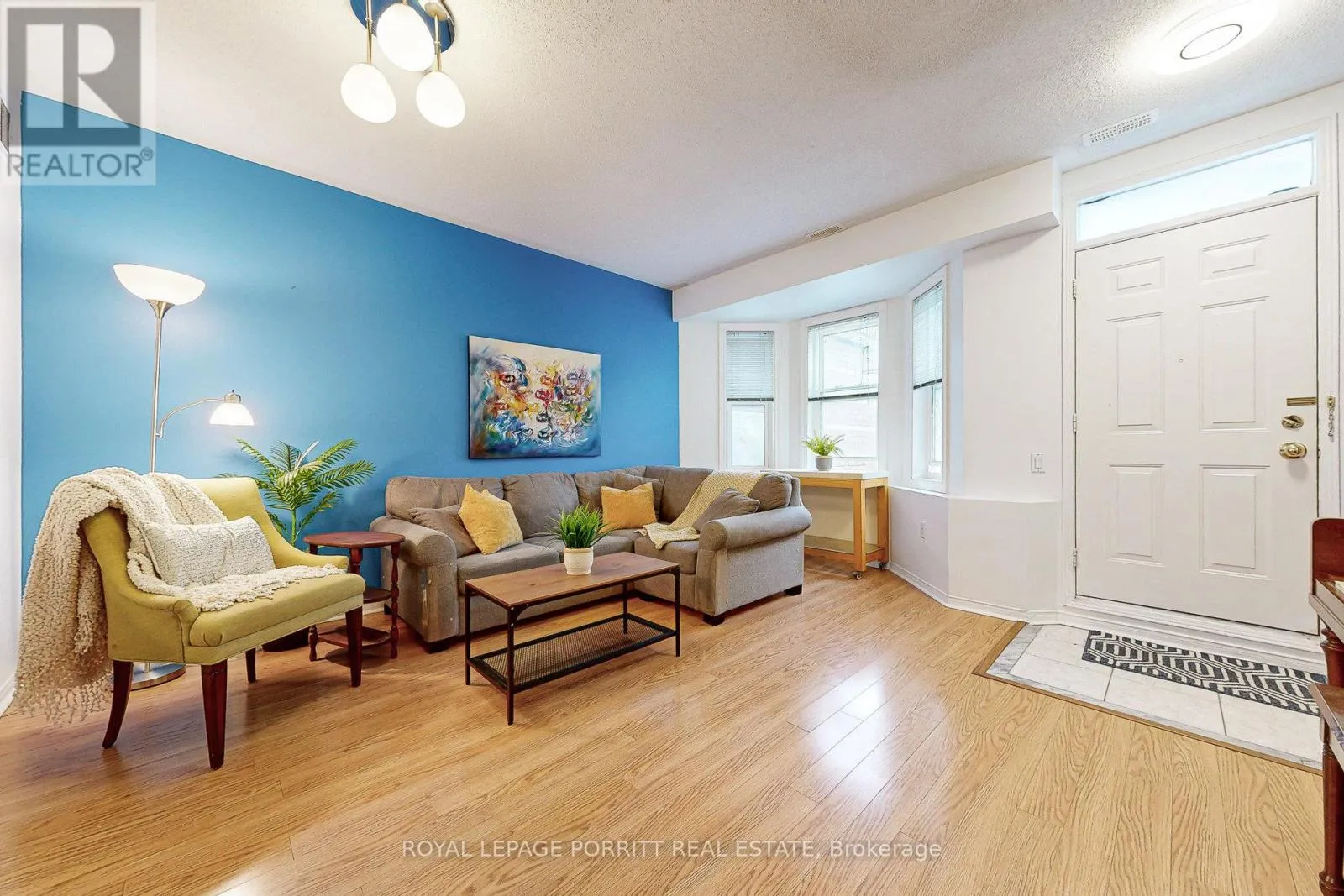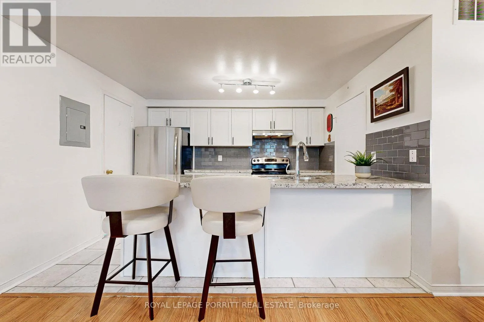 Cross Streets: Dufferin/Lawrence. ** Directions: east of Dufferin. Welcome to this stylish executive townhouse featuring a desirable open-concept main floor with a modern breakfast bar, perfect for casual dining and entertaining. Enjoy the warmth and durability of laminate flooring throughout the home. The main floor also includes a convenient powder room and ensuite laundry for added functionality. Step outside to a spacious private patio (approx 200 sq ft with additional storage unit), ideal for relaxing, entertaining guests, or enjoying your morning coffee. Perfectly situated near shopping, public transit, restaurants, and parks, this home offers both comfort and convenience in a vibrant neighborhood. Don't miss the opportunity to own this move-in-ready home. (id:27476)