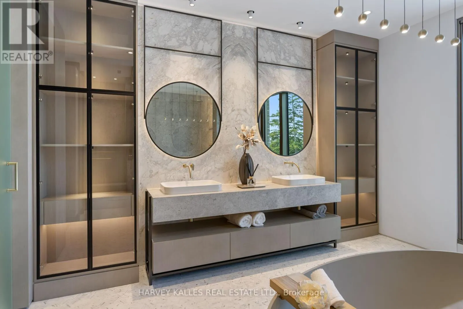 Cross Streets: Spadina and Forest Hill Rd. ** Directions: S on Russell Hill off Forest Hill, E on Dunvegan. Welcome To 211 Dunvegan Rd, A Masterpiece Of Modern-Transitional Living Crafted By Omid Taba And Forest Range Developments. This Bespoke Residence Sits On A Generous Corner Lot, Offering 6,972 Sq. Ft. Above Ground Plus 2,884 Sq. Ft. In The Lower Level. Every Detail Reflects Precision, Innovation, And Refined Craftsmanship, Merging Architectural Drama With Timeless Elegance. From The Serene Gallery-Like Foyer, Sightlines Lead To The Dramatic Double-Height Family Room, Where Floor-To-Ceiling Glazing, Sculptural Lilac And Calacatta Viola Marble, And Custom Vertical Wood Panels Create An Atmosphere Both Bold And Inviting. A Seamless Flow Connects The Kitchen With Dual Marble-Topped Islands And Fully Integrated Sub-Zero, Wolf, And Miele Appliances To The Dining Area, Anchored By A 12-Seat Custom Marble Table Beneath Henges Superb All Chandelier. Additional Living Zones Include A Warm Living Room With Sky White Marble Fireplace, A Refined Study, And A Moody Lower-Level Lounge With Gym, Theatre, Bar, And Glass-Enclosed Cooled Wine Cellar. The Primary Suite Features A Suspended Fireplace, His-And-Hers Boutique Dressing Rooms, And A Spa-Like Ensuite With Cocoon Fixtures, Freestanding Tub, Steam Shower, And Heated Floors. Four Additional Bedroom Suites Plus Nannys Suite And A Third-Floor Sitting Area With Kitchenette Ensure Space And Privacy For Family And Guests. An Elevator Provides Access Across All Levels, While Radiant Heated Floors, Smart Home Automation, And Integrated Lighting And Climate Systems Offer Modern Comforts. Outdoors, A Walk-Out Terrace Features Covered BBQ, Dining And Lounge Seating Centered Around A Sculptural Firepit Above A Reflecting Water Basin With Cascading Water Into A Lower Pond. Beyond, A Resort-Style Pool And Jacuzzi With Lush Landscaping Create A Private Retreat For Relaxation And Entertainment. Artistry And Innovation Converge To Deliver A Residence Of Unparalleled Sophistication, Lifestyle, Comfort, And Timeless Design. (id:27476)