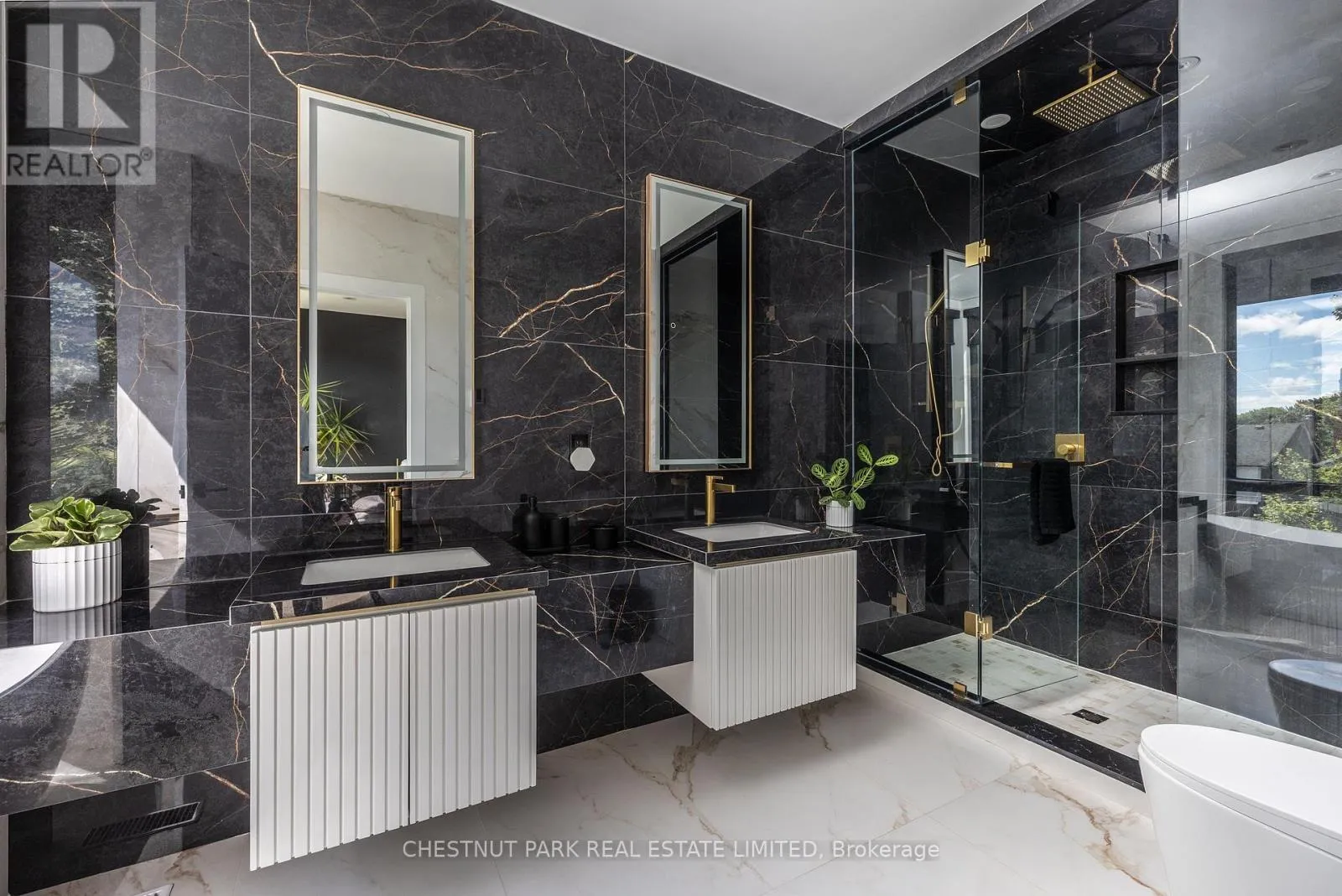 Cross Streets: Islington & Lakeshore. ** Directions: South of Lakeshore Blvd. Design forward custom-built home beautifully finished from top to bottom. Ideal for a family or couple who enjoys entertaining inside and out with walk outs from two levels as well as a balcony off of the principal suite to enjoy a coffee and morning views. This gorgeous 3 bedroom, 5 bathroom home has incorporated rich stone and millwork elements to enhance its design and has an abundance of offerings featuring a large glass wine cabinet, two gas fireplaces, a Sonos music system throughout and a Control4 home fully automatic and remote lighting system for ease of functionality. The rear exterior showcases a professionally designed and landscaped oasis with space for lounging and dining, complete with mature shrubs and trees for privacy as well as perennial plantings and fully fenced to enjoy. Walk to shops, schools and beach! This home is a prime offering in this pocket and not to be missed. (id:27476)