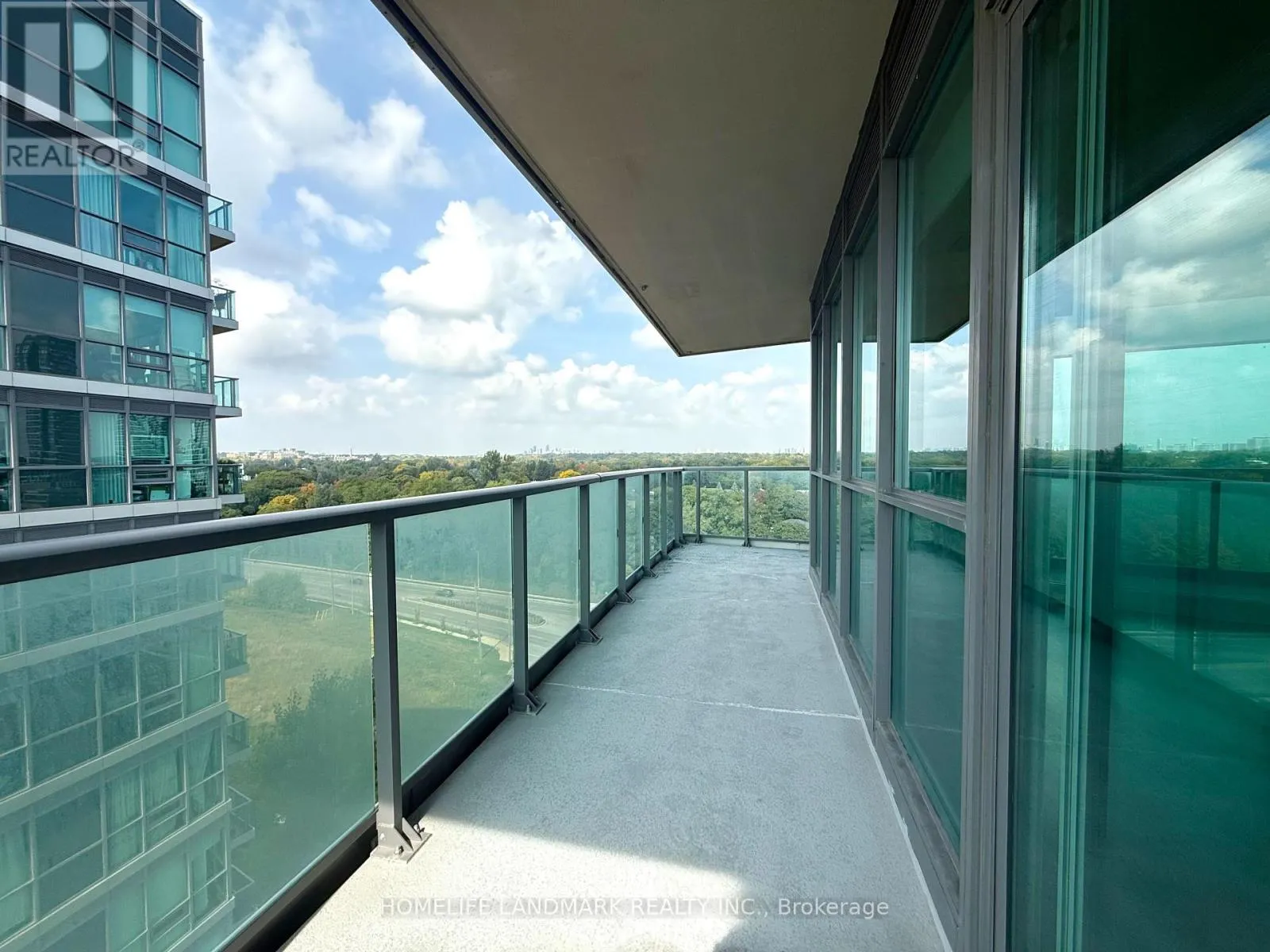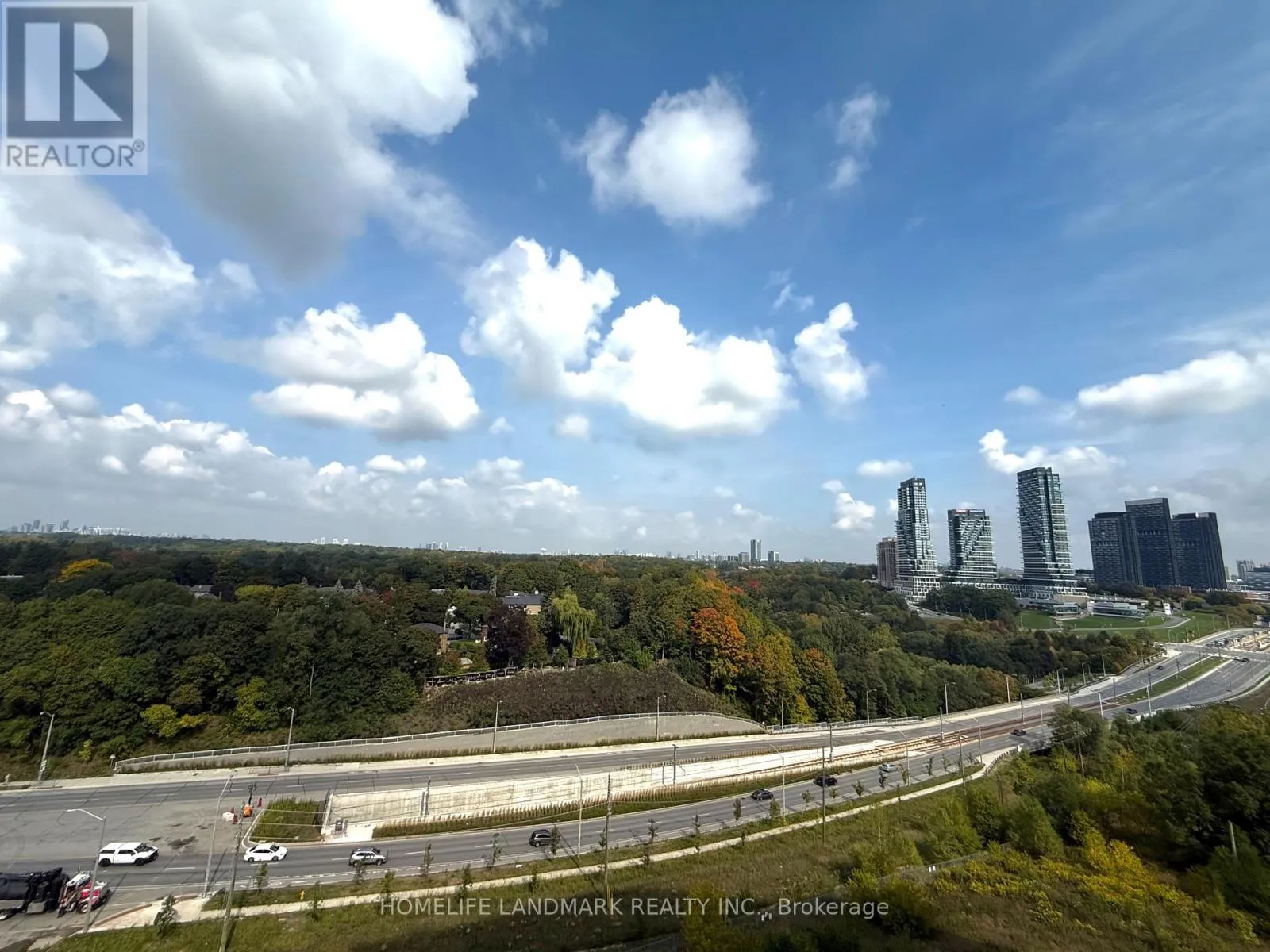 Eglinton/Brentcliffe High Demand Scenic on Eglinton Condos!Freshly painted bright corner unit with spacious and functional open concept layout. Features 9 ceilings, two bedrooms, two baths including primary with 3-pc ensuite, and an expansive wrap-around balcony offering unobstructed north views over parkland and south views of the City skyline & CN Tower.Outstanding building amenities include indoor pool, fully equipped gym, yoga studio, bike storage, seasonal BBQ area, guest suites, party/dining room with kitchen, and 24-hr concierge. Includes 1 underground parking and 1 locker.Fantastic location: 5 minutes walk to Leslie LRT station, quick access to DVP, steps to shopping, parks, and schools. Truly a perfect combination of comfort, convenience, and incredible views. (id:27476)
