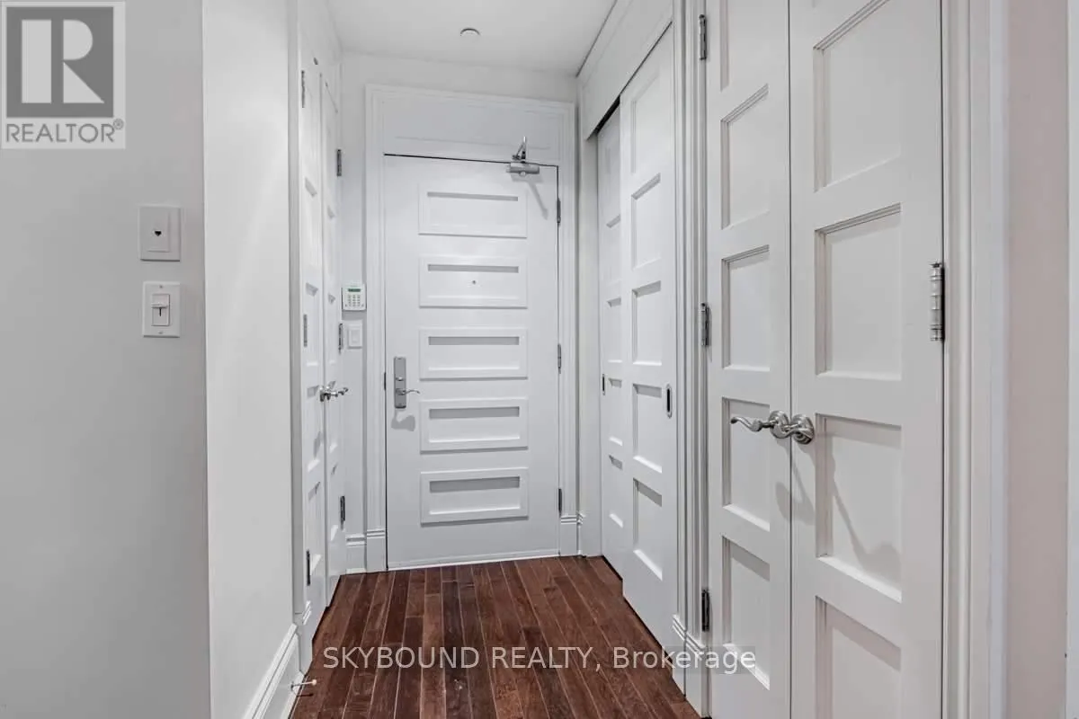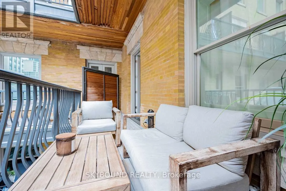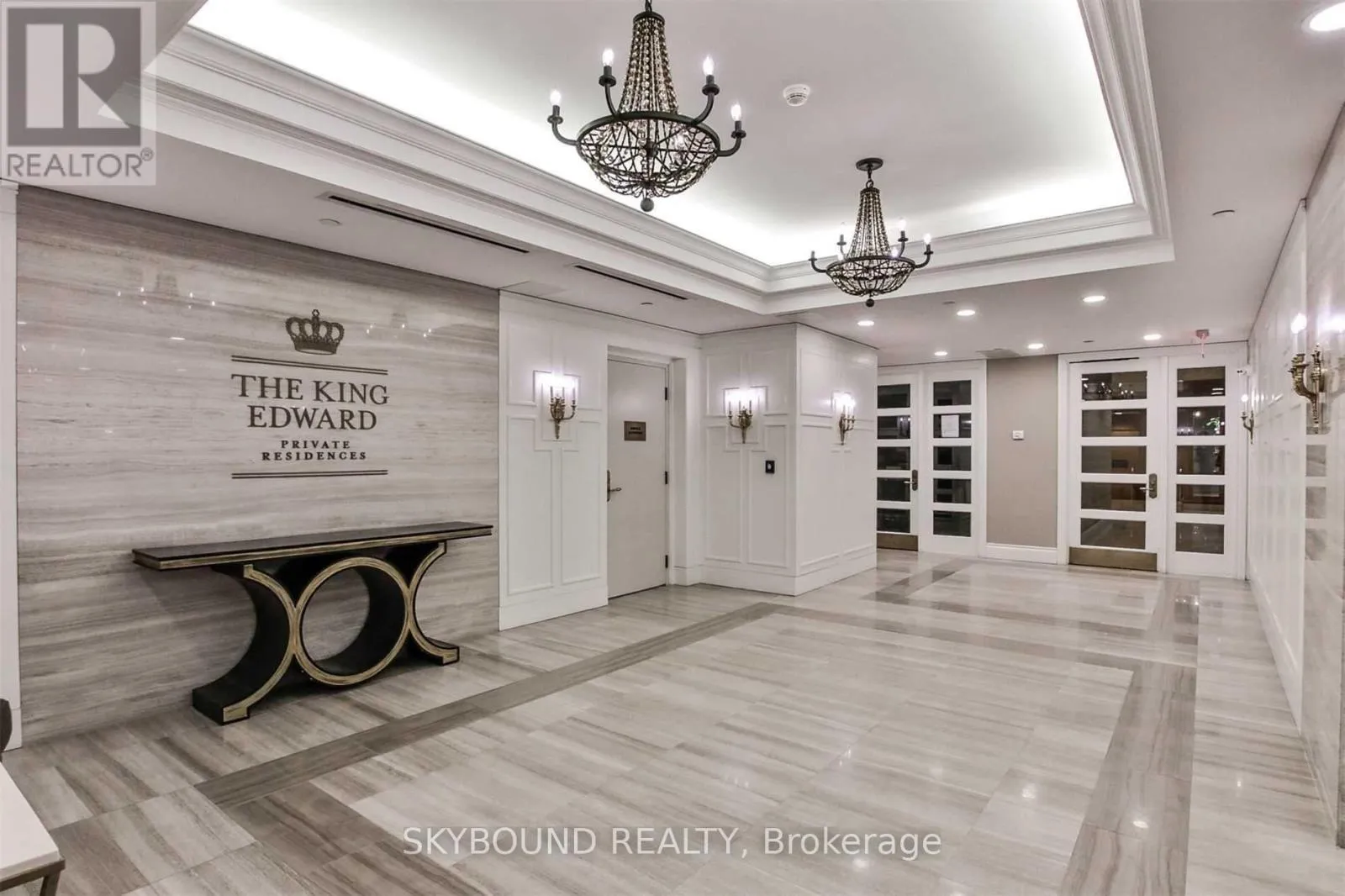 Cross Streets: Yonge And King. ** Directions: Hey Google... Welcome to the highly coveted King Edward Private Residences! Luxury hotel-style living at its finest. Rarely offered spacious 735 sq ft one bedroom suite with a roomy den (ideal for home office or separate dining room). Plus a double door walk-out to a very rare private wood-tiled 100 sq ft balcony - not something that's easily found in the building! Impeccable finishes throughout, hardwood flooring, soaring 10 ft ceilings, crown molding, and wainscoting. A dream kitchen with quartz countertops, huge island, and integrated European appliances. Boutique luxury living with access to all the hotel amenities (fitness center and spa [mezzanine level], private resident's lounge [11th floor], and concierge). Much larger than the typical suites here. Imagine coming home and relaxing in the timeless, classy hotel lobby. Literally steps to King Station with streetcar at your doorstep. Financial District seconds away and a quick walk to St Lawrence Market, steps to Berczy Park, & countless dining options throughout the neighbourhood. **Storage locker included** Come and get it. **-- Available immediately --** (id:27476)