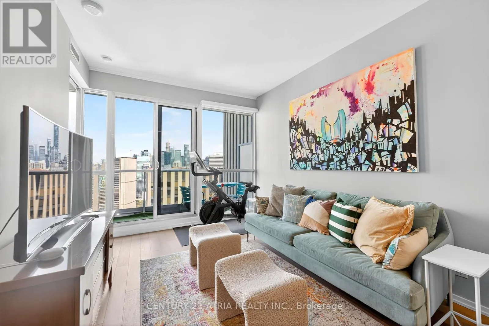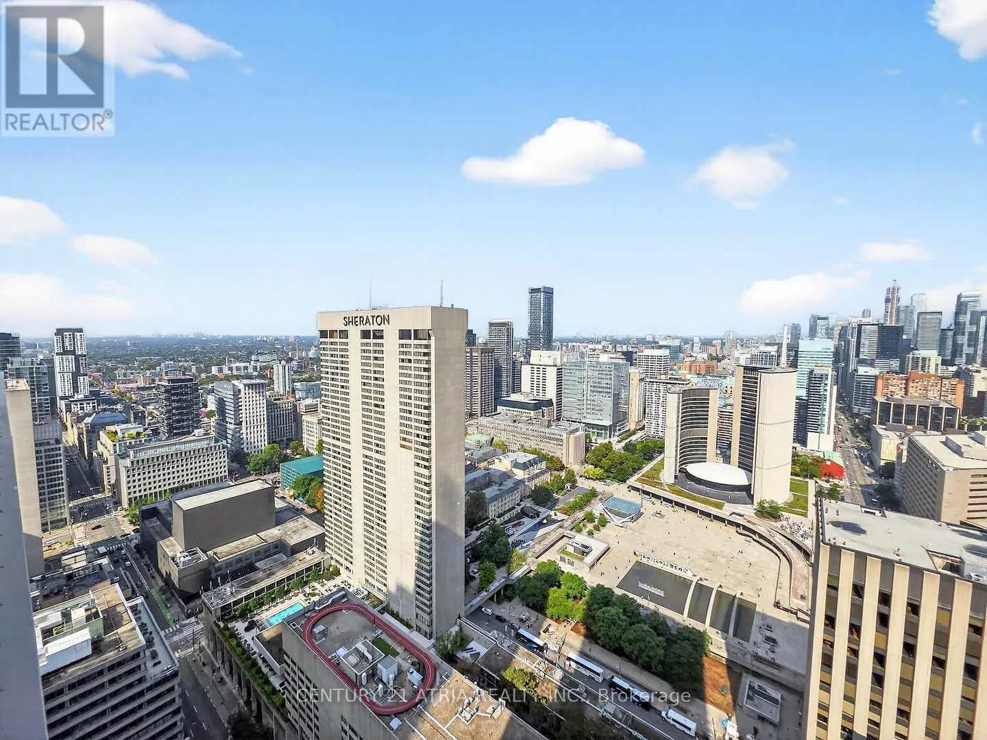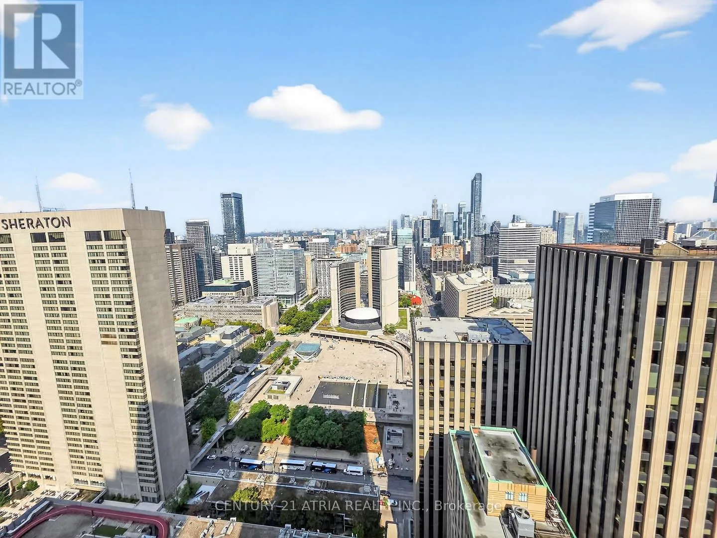 Cross Streets: Bay/Adelaide. ** Directions: From Bay St, West on Temperance St. Welcome to 70 Temperance St - a prime location in the heart of Toronto's Financial District. This spacious 2-bedroom + den, 2-bathroom condo is situated on a high floor, offering unobstructed city & skyline views. A thoughtfully designed living space with a functional layout featuring floor-to-ceiling windows, bringing plenty of natural light throughout. Sleek and modern kitchen with high-end integrated appliances, custom cabinetry and premium finishes. The den provides the perfect setup for a home office or additional storage adding flexibility and function to your space. The open-concept living and dining area opens up to a large, private balcony overlooking Nathan Phillips Square perfect for enjoying morning coffees and summer nights with a view. Located steps to Bay Street offices, the PATH network, transit, vibrant dining options, shopping, and entertainment, this condo offers unmatched convenience for professionals seeking to live and work in the core. Walking distance to TMU and U of T. This location truly brings the best of downtown living to your front door. Exceptional building amenities include 24-hr concierge, gym, party room, games room & more. (id:27476)