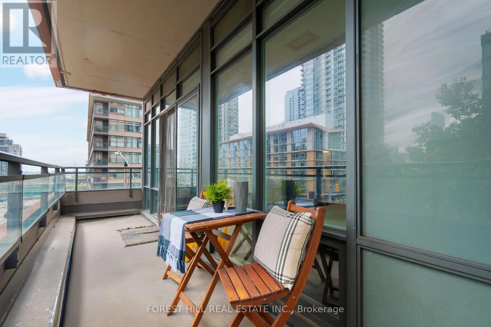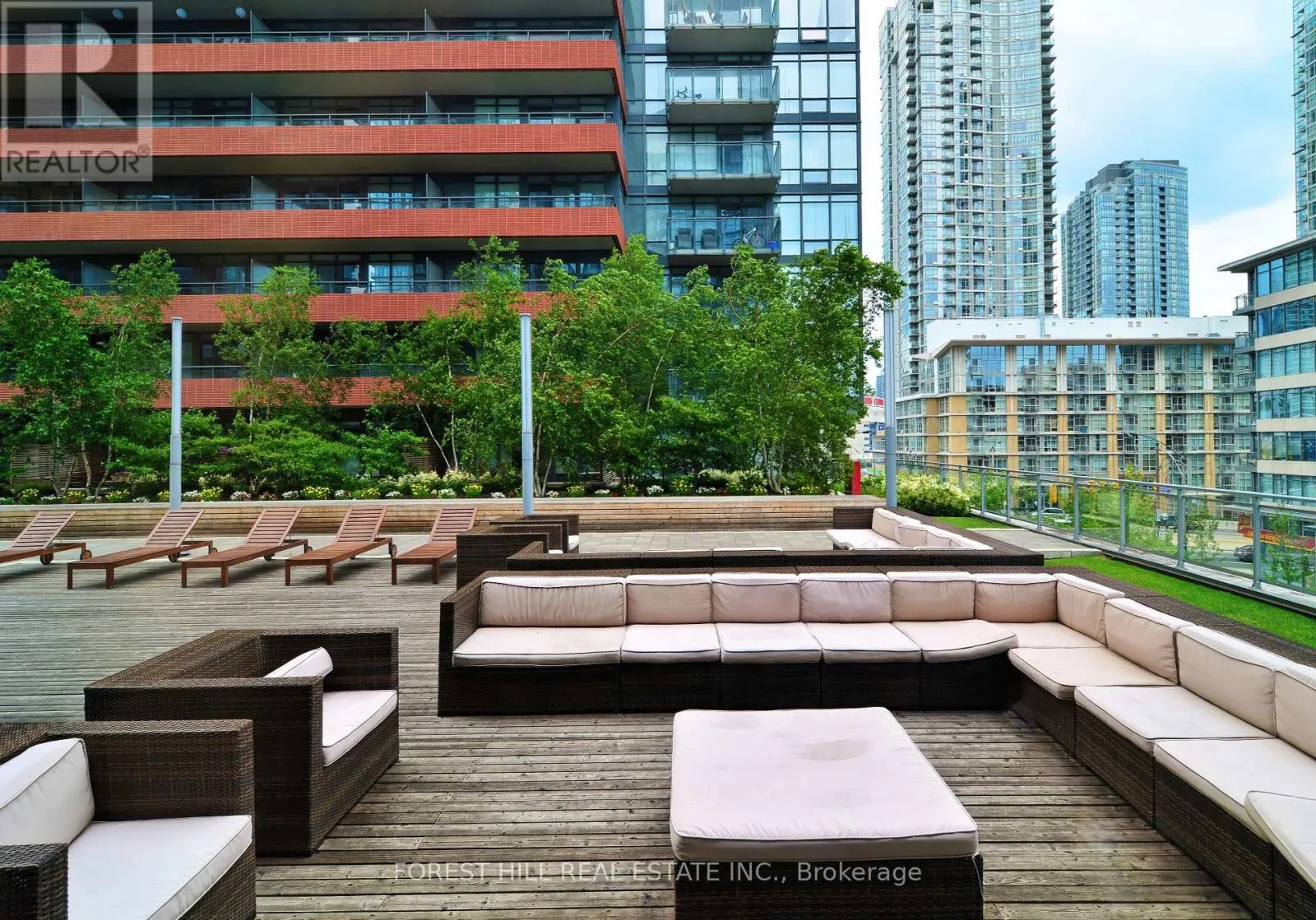 Cross Streets: Spadina Ave / Fort York Blvd. ** Directions: -. Welcome to nearly 850 sq. ft. of open-concept living! This beautifully maintained corner suite features 2 bedrooms + den, fresh paint and lighting (2025), Smart Modern Forms ceiling fans(2025), updated kitchen backsplash (2021), and custom heat-blocking blinds (2021). Enjoy floor-to-ceiling windows and a private balcony with lake views in the heart of downtownToronto. Prime location: Sobeys downstairs, The Well across the street, streetcar at your door, UnionStation in 10 minutes, plus easy access to Lakeshore & the Gardiner. Steps to Rogers Centre, CNTower, Harbour front, and more. Complete with 1 parking space and 1 locker. Exceptional Amenities: 24-hour concierge, gym, sauna, indoor pool, media room, party room, rooftop deck/garden, BBQ facilities, guest suites, visitor parking and much more! MUST SEE! (id:27476)