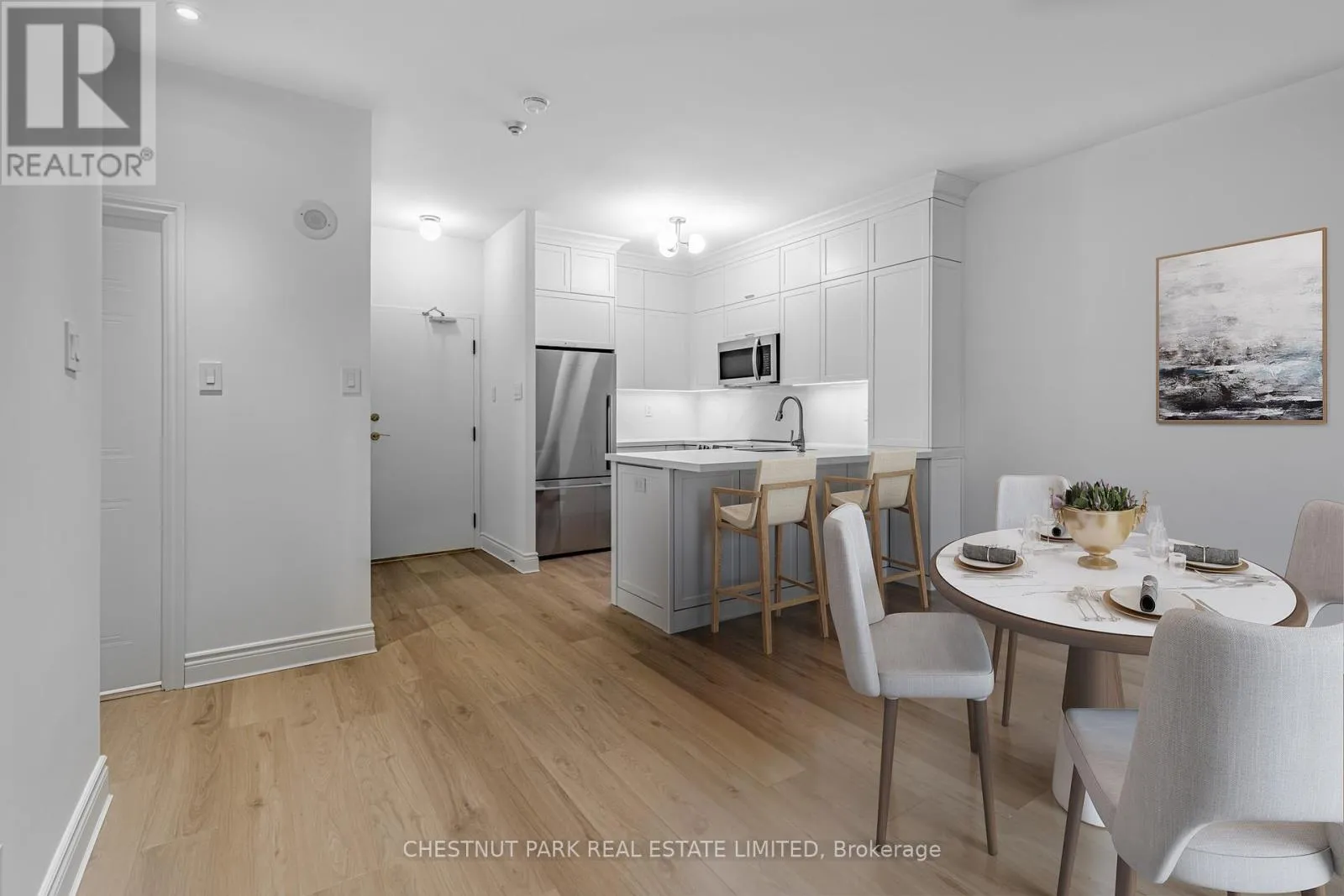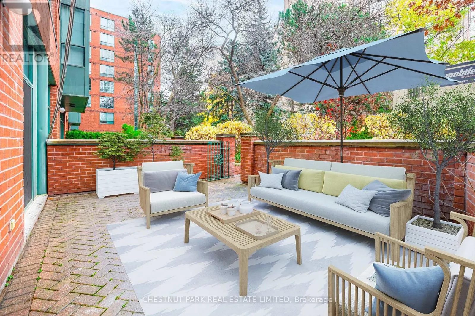 Bloor St & Huron Ave Welcome to The Dunhill Club at 95 Prince Arthur Avenue, where contemporary elegance meets convenience in this beautifully renovated ground floor suite designed with the utmost thought and detail. Featuring soaring 9-foot smooth ceilings and a rarely available walk-out to your exclusive use gated terrace, this bright and stylish condo blends indoor comfort with outdoor tranquility. Enjoy open-concept living overlooking the sleek, newly designed Aya kitchen with dovetailed drawers and stainless steel appliances in a boutique building known for its charm and impeccable maintenance. The primary bedroom offers lovely proportions complete with cabinetry and shelving in a sprawling walk-in closet. The beautifully renovated bathroom surrounded by tasteful Carrera marble is classic and inviting. This ground level suite also offers an ensuite storage room for an added convenience. No elevator required here! Steps to Bloor Street's top restaurants, shops, and cultural destinations, and perfectly situated near multiple subway lines, making city access effortless. The Dunhill Club offers exceptional recently renovated amenities including a stunning rooftop terrace with panoramic views including a barbeque area and hot tub, an elegant party room, and ample visitor parking. This is a rare opportunity to own a unique ground-level residence in one of Toronto's most desirable and walkable neighbourhoods. A bike score of 100 and a 98 walk score! Experience the perfect blend of sophistication, lifestyle, and location in this exclusive offering. (id:27476)
