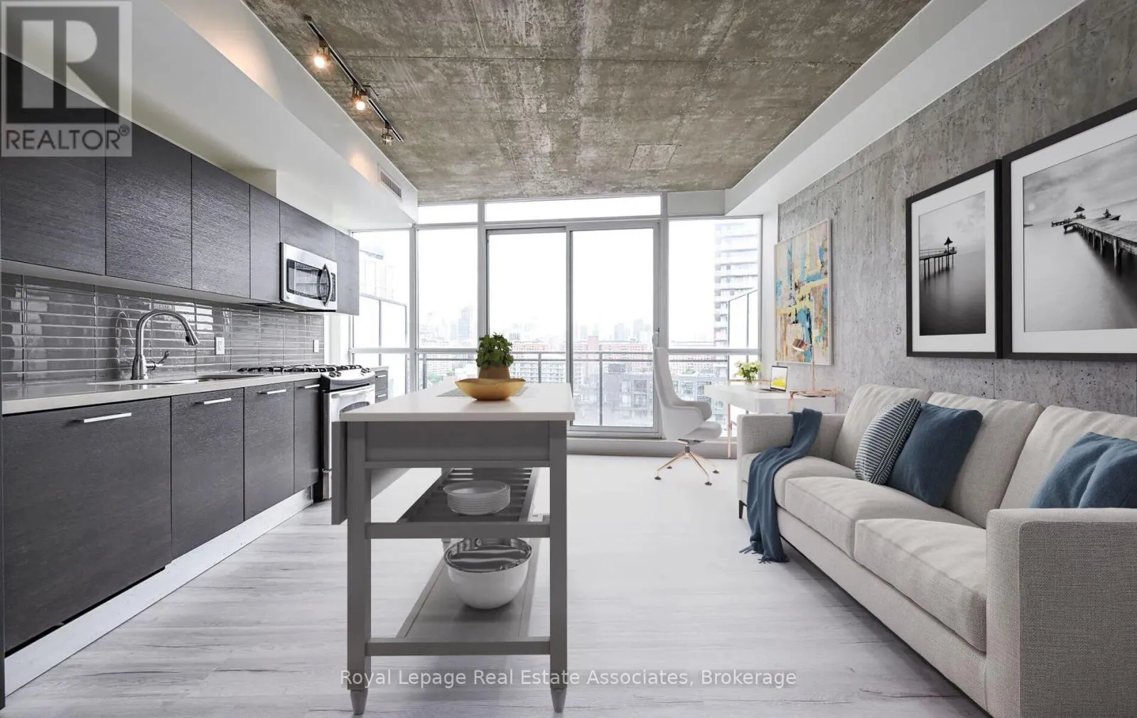 King St E / Parliament St Stunning condo in highly sought after King East building with a large living area perfectly designed for a desk/at home workstation. This unit boasts brand new luxury vinyl flooring throughout, floor to ceiling windows, and tons of natural light. S/S appliances. Double closet in hall and bedroom. Beautiful stone counter in kitchen with chefs gas stove. Concierge. You can ride or walk to the Distillery District and St. Lawrence Market, just minutes away. TTC at the front door! Amazing location! Close to bars, shops, restaurants. Spacious balcony w/ gas bbq hookup. Access to party room. Tenant to pay utilities. One (1) Parking spot available for rent ($250/month). Locker included. Hot water tank rental ($39/month) (id:27476)