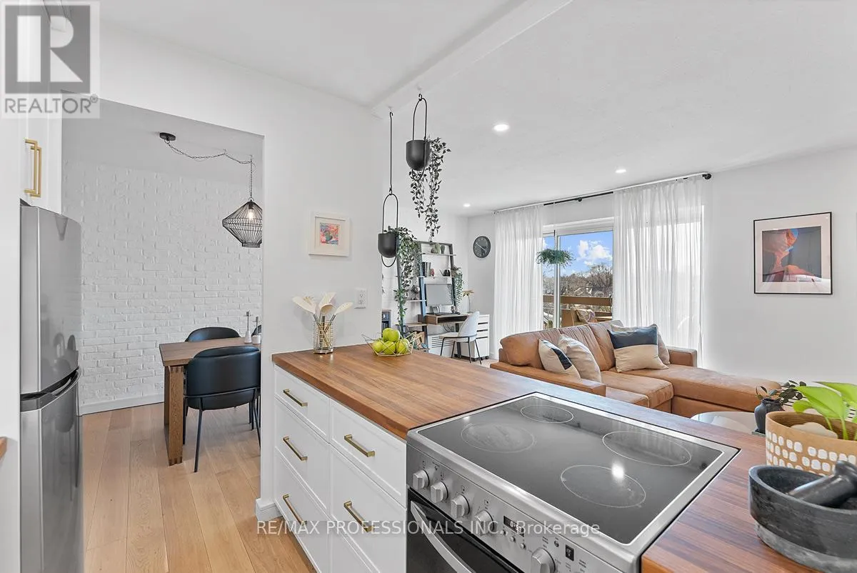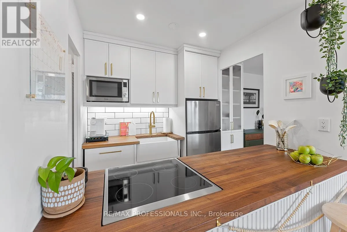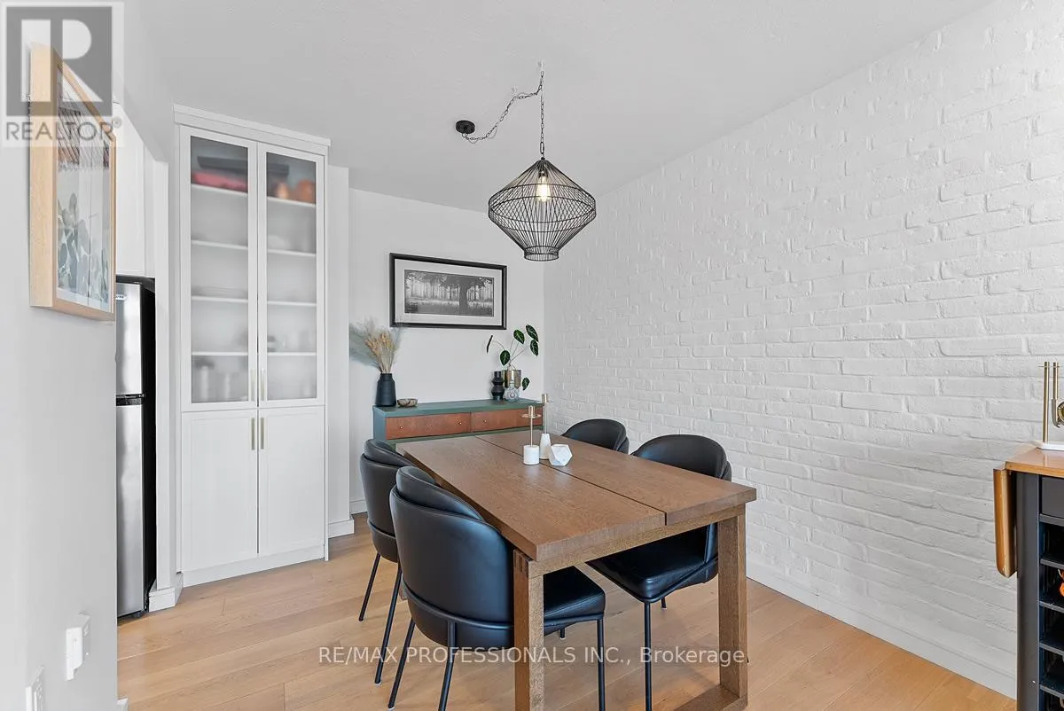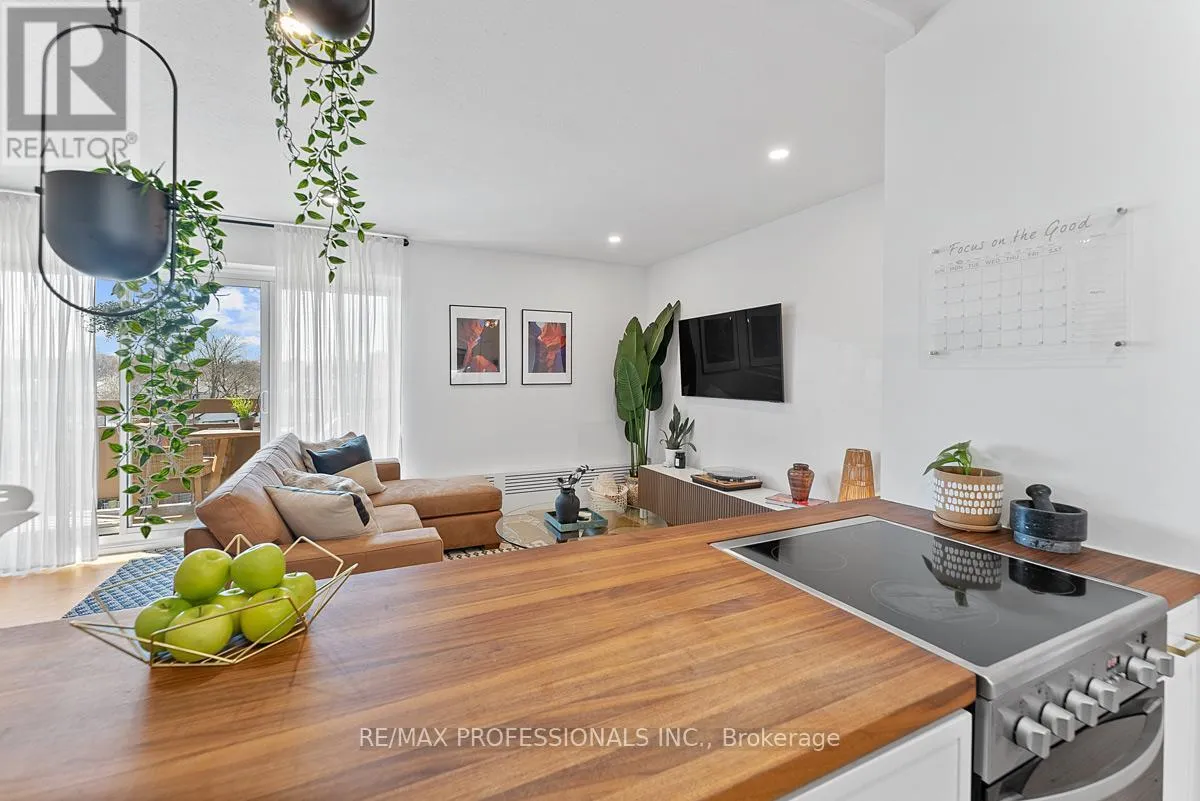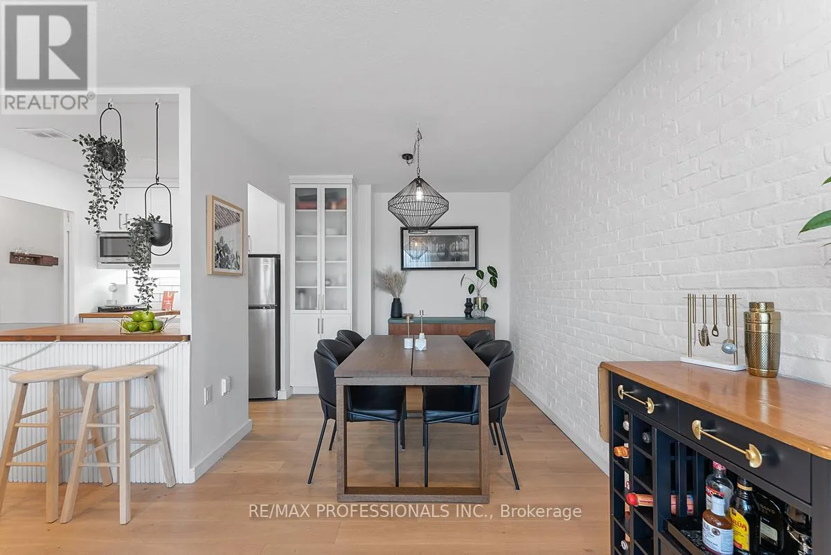 Cross Streets: Lake Shore Drive and Fourth Street. ** Directions: Just west of fourth street, fronting on Lake Shore Drive. Welcome to 41 Lake Shore Drive #501, a fully renovated, oversized one-bedroom suite in a boutique waterfront building! Flooded with natural light, this thoughtfully designed unit blends modern style with premium finishes. The spacious living and dining area features Century Architecture Distillery painted brick veneer accent wall, SONOpanX insulation, wide plank engineered hardwood floors, LED pot lights, custom cabinetry and new GEM Aluminum patio doors and windows. The gourmet kitchen is a home cook's dream, boasting custom Elisabeth Ashley cabinetry, butcher block counters, a Blanco Ikon farmhouse sink with gold Crue pull-down faucet, stainless steel appliances and a classic white subway tile backsplash. Large primary bedroom featuring a massive window with automatic Zebra blinds, a shiplap accent wall with SONOpanX insulation, a double closet, modern ceiling fan and wide-plank floors. The spa-like 4 piece bathroom showcases a Rubix skirted tub, Zen tap vanity, Zip 3-way shower with thermostatic valve, stylish hexagon flooring and a MAXX Incognito shower door. Additional upgrades include new solid wood interior doors and hardware, new light fixtures, a new breaker panel and a fresh neutral palette. 31.5' x 5'4" private balcony, perfect for relaxing and entertaining. One underground parking spot and one locker included. This well-managed building offers a common waterfront BBQ area w/ breathtaking lake views, watersports storage, w/maintenance fees covering property taxes, heat, hydro, water & more. Nestled in the heart of New Toronto, steps from Prince of Wales Park, Lake Ontario and the waterfront trail, this vibrant neighbourhood offers unbeatable access to nature, rec and city conveniences. Enjoy nearby trendy shops and restaurants including local favourites like Teos Bakery, Cellar Door, Kitchen on Sixth, The Sydney Grind and Funny Bones Games Lounge with convenient transit options at your doorstep. Incredible value in a highly sought-after lakeside location (id:27476)