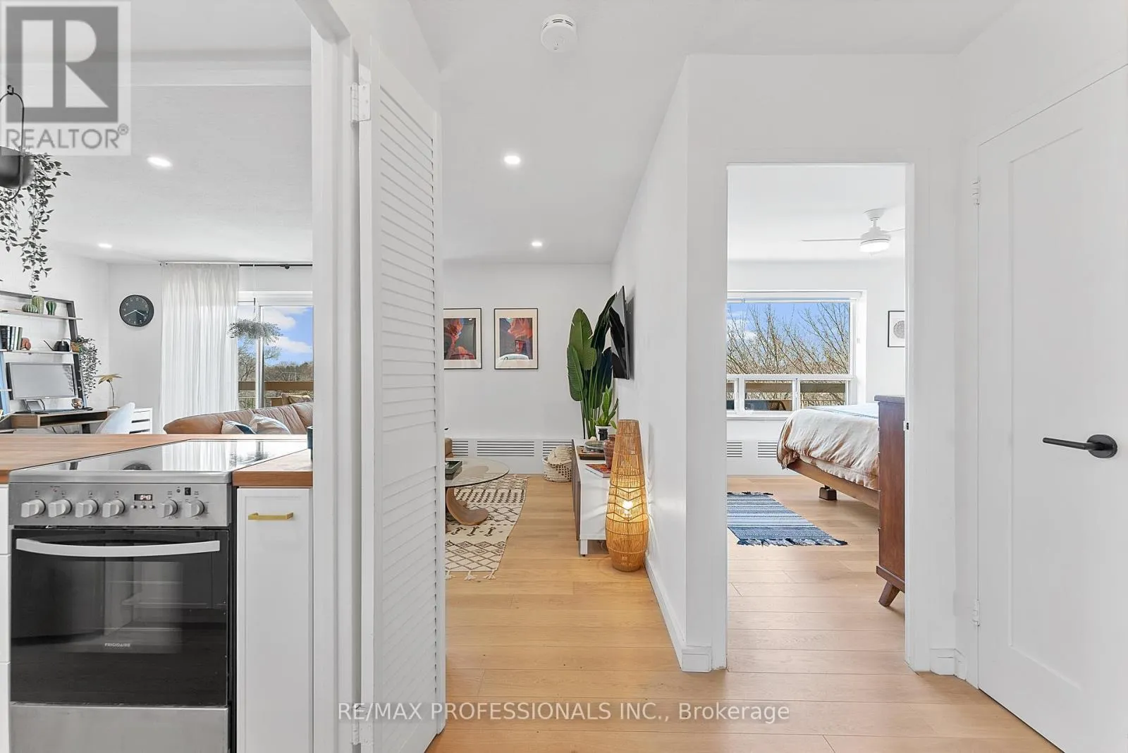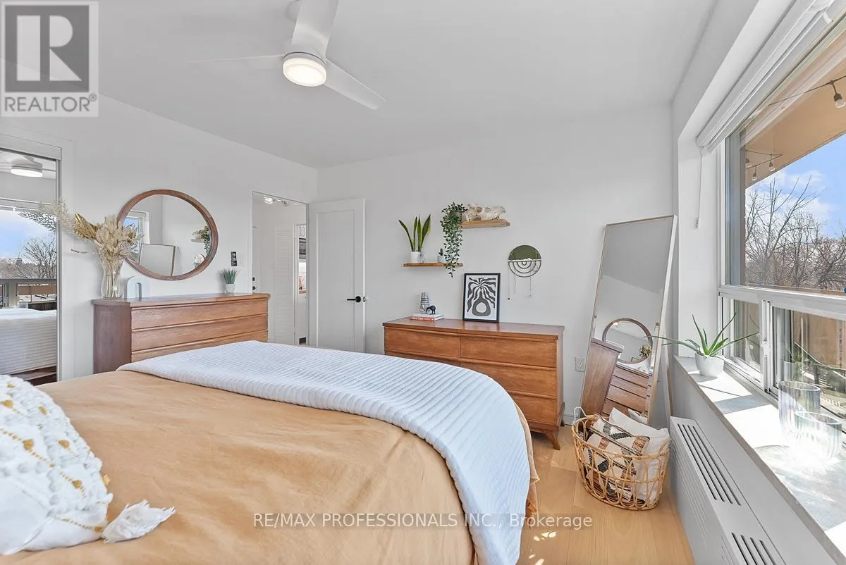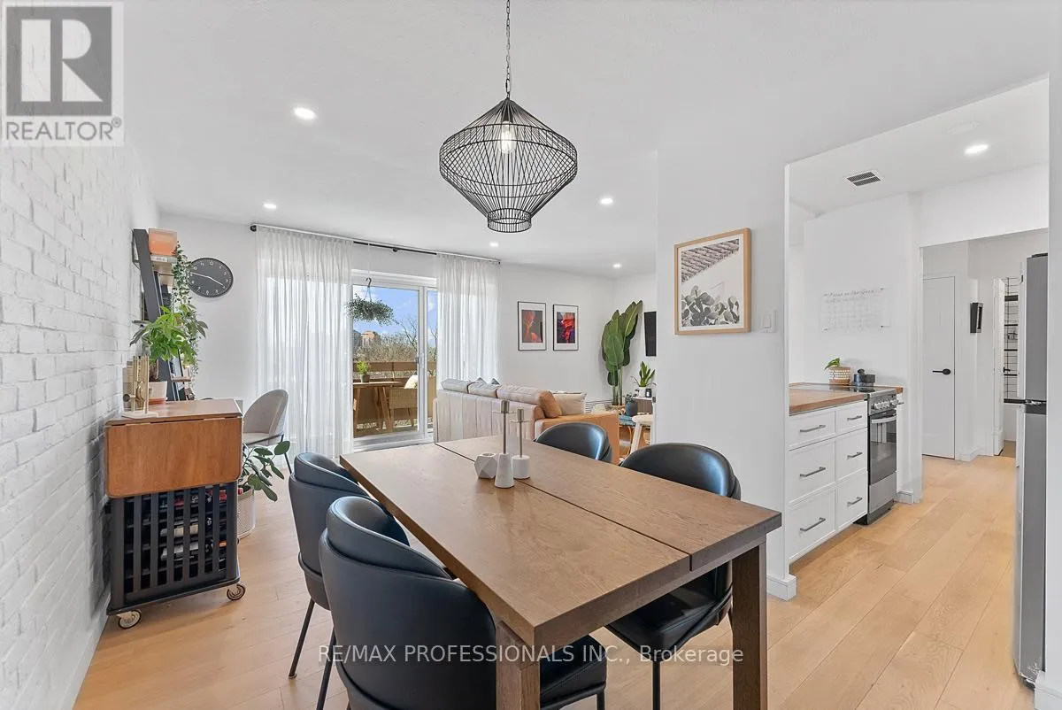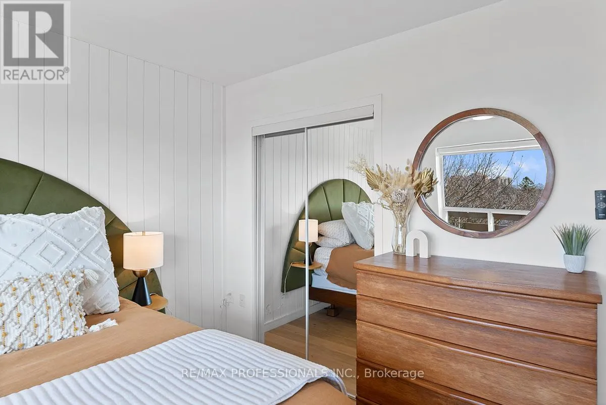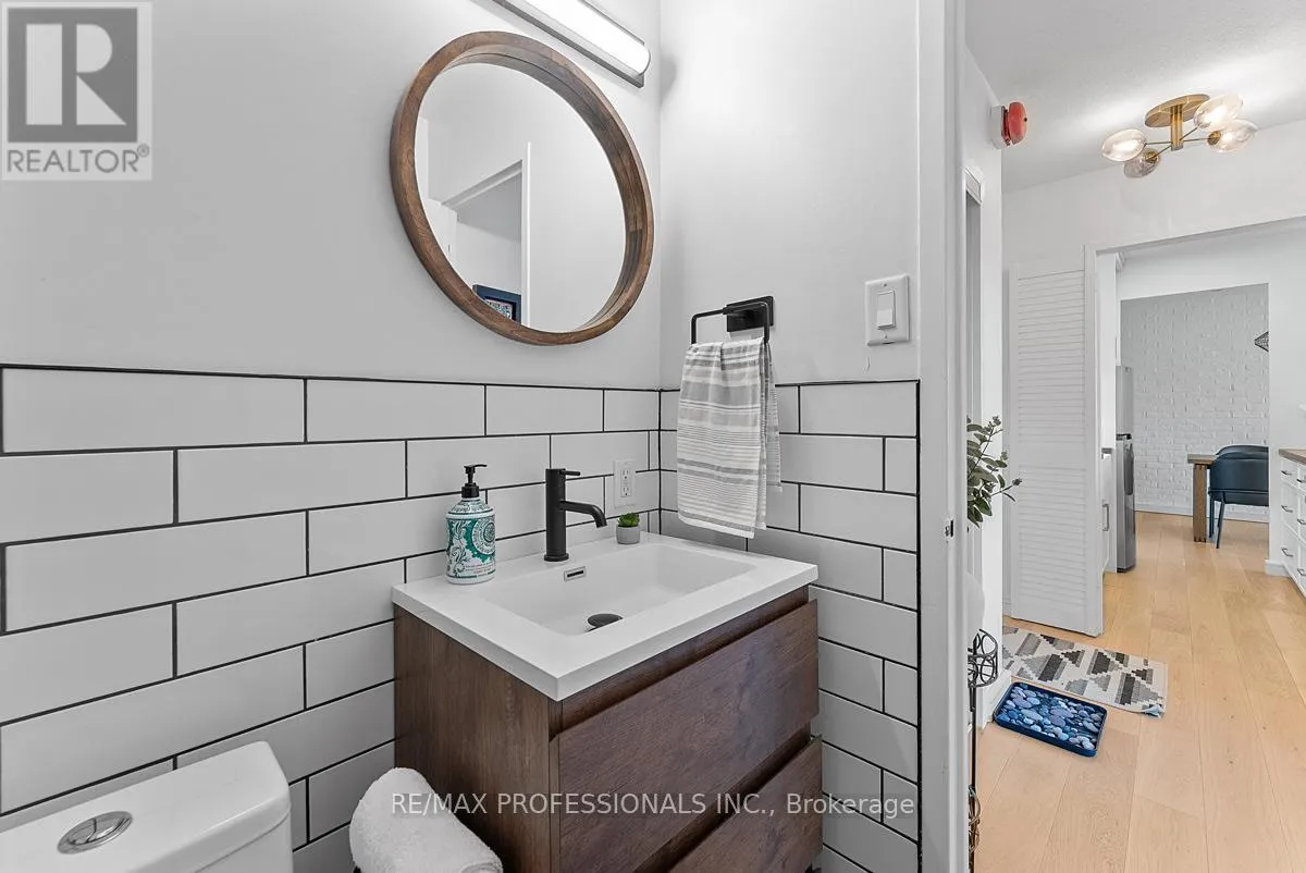 Cross Streets: Lake Shore Drive and Fourth Street. ** Directions: Just west of fourth street, fronting on Lake Shore Drive. Welcome to 41 Lake Shore Drive #501, a fully renovated, oversized one-bedroom suite in a boutique waterfront building! Flooded with natural light, this thoughtfully designed unit blends modern style with premium finishes. The spacious living and dining area features Century Architecture Distillery painted brick veneer accent wall, SONOpanX insulation, wide plank engineered hardwood floors, LED pot lights, custom cabinetry and new GEM Aluminum patio doors and windows. The gourmet kitchen is a home cook's dream, boasting custom Elisabeth Ashley cabinetry, butcher block counters, a Blanco Ikon farmhouse sink with gold Crue pull-down faucet, stainless steel appliances and a classic white subway tile backsplash. Large primary bedroom featuring a massive window with automatic Zebra blinds, a shiplap accent wall with SONOpanX insulation, a double closet, modern ceiling fan and wide-plank floors. The spa-like 4 piece bathroom showcases a Rubix skirted tub, Zen tap vanity, Zip 3-way shower with thermostatic valve, stylish hexagon flooring and a MAXX Incognito shower door. Additional upgrades include new solid wood interior doors and hardware, new light fixtures, a new breaker panel and a fresh neutral palette. 31.5' x 5'4" private balcony, perfect for relaxing and entertaining. One underground parking spot and one locker included. This well-managed building offers a common waterfront BBQ area w/ breathtaking lake views, watersports storage, w/maintenance fees covering property taxes, heat, hydro, water & more. Nestled in the heart of New Toronto, steps from Prince of Wales Park, Lake Ontario and the waterfront trail, this vibrant neighbourhood offers unbeatable access to nature, rec and city conveniences. Enjoy nearby trendy shops and restaurants including local favourites like Teos Bakery, Cellar Door, Kitchen on Sixth, The Sydney Grind and Funny Bones Games Lounge with convenient transit options at your doorstep. Incredible value in a highly sought-after lakeside location (id:27476)