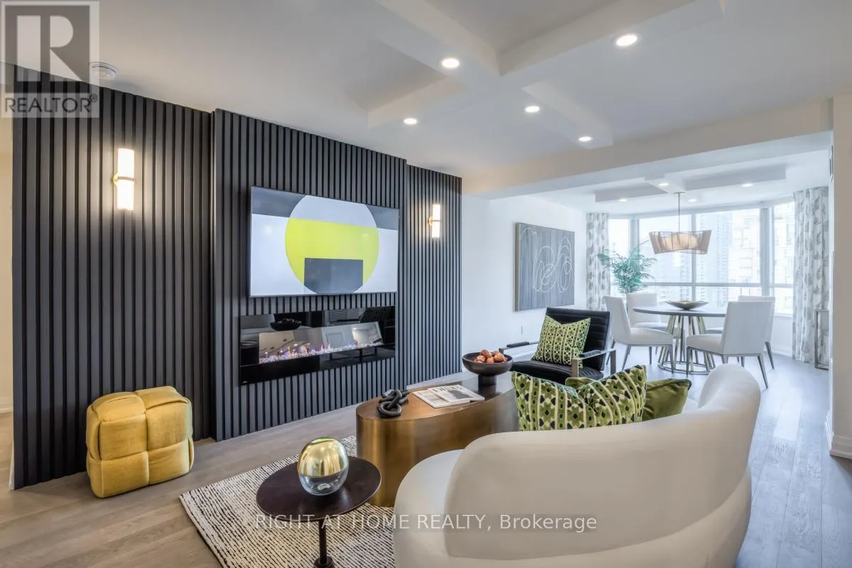 Cross Streets: Yonge St / Finch Ave. ** Directions: Yonge St, south of Finch Ave; entrance on Kempford Blvd. Welcome to Suite 1810 at 5444 Yonge St, an expansive, fully renovated 2+1 bed, 2 bath, 1429sf residence in the heart of North York City Centre. Perfect for those rightsizing from a detached home or moving up from a smaller condo, this thoughtfully designed home combines spacious proportions, modern finishes, and everyday convenience. Set just off Yonge and Finch, the building enjoys a rare balance of city energy and neighbourhood calm. Inside, wide sightlines and an open layout connect the living, dining, and kitchen areas. A striking paneled feature wall with integrated fireplace anchors the living room, while dimmable lighting and expansive windows create a warm, inviting atmosphere for both lively gatherings and quiet evenings at home. The kitchen combines function and style with abundant counter space, custom cabinetry, and a striking backsplash, perfect for preparing meals or lingering over morning coffee. The dining room, framed by a bay window and custom drapery, sets the stage for elegant entertaining or family dinners. The versatile second bedroom and spacious den provide flexibility for guests, a home office, or hobbies, each with generous storage. Tucked away in its own wing, the primary suite is a true retreat with serene views, custom cabinetry, blackout drapery, a walk-in closet, and a beautifully finished ensuite bath. A dedicated laundry room with full-sized appliances and sink adds comfort and practicality. From every window, enjoy a choice of views: vibrant cityscapes to the east, or treetop horizons and open skies to the west. Here, you never have to compromise between energy and tranquility. Residents also enjoy a wide range of amenities including indoor/outdoor pools, fitness centre, tennis, squash & pickleball courts, billiards, BBQ area, walking paths, visitor parking, car wash, concierge, party room, guest suites, and 24h security. This is turnkey luxury living at its best: spacious, refined, and perfectly connected to everything you need. (id:27476)