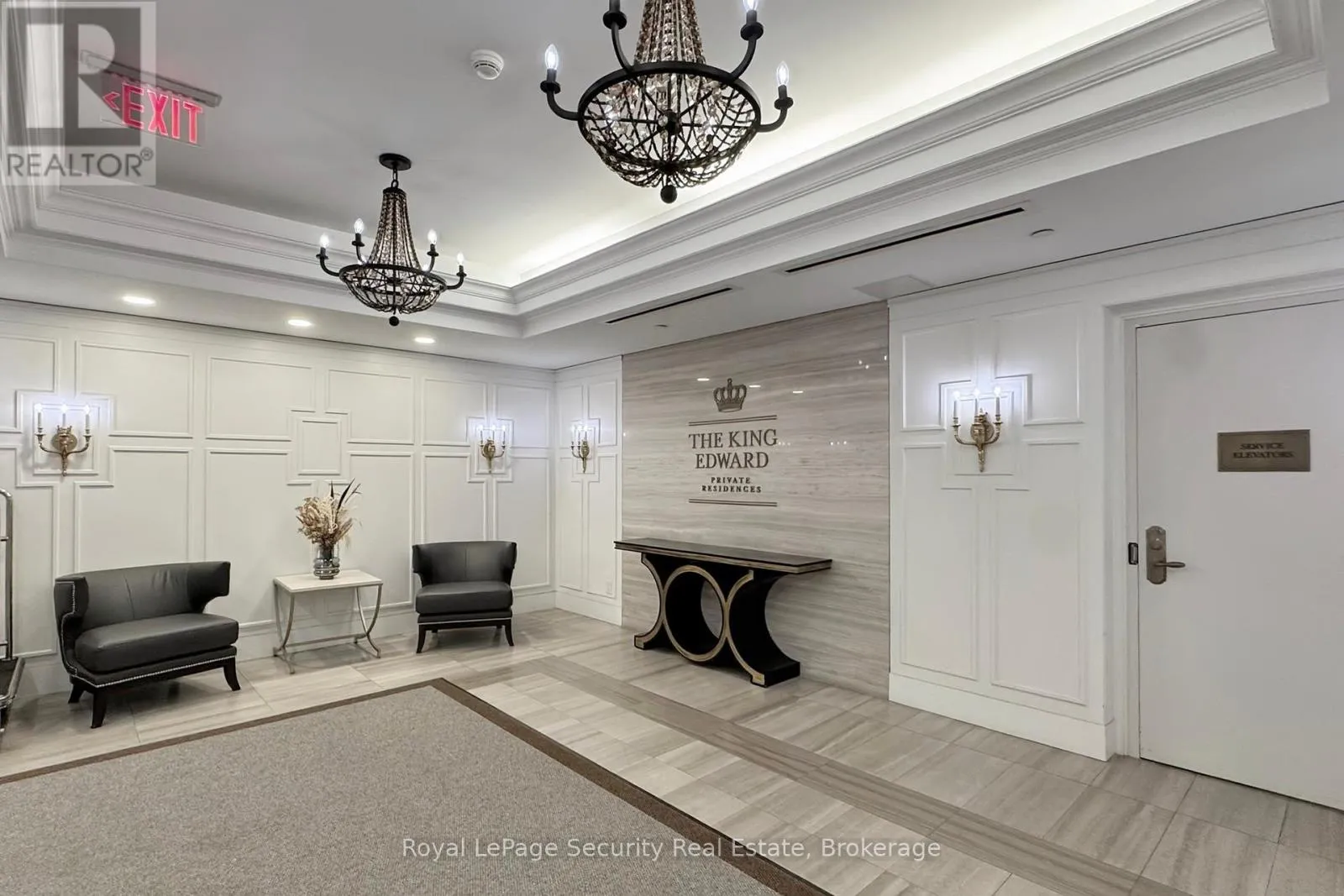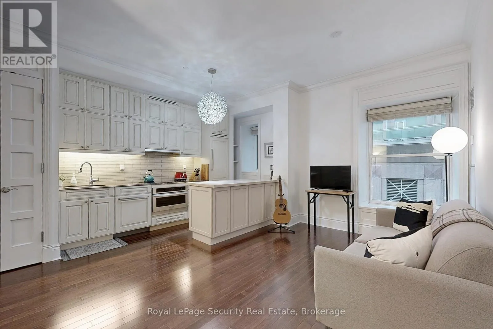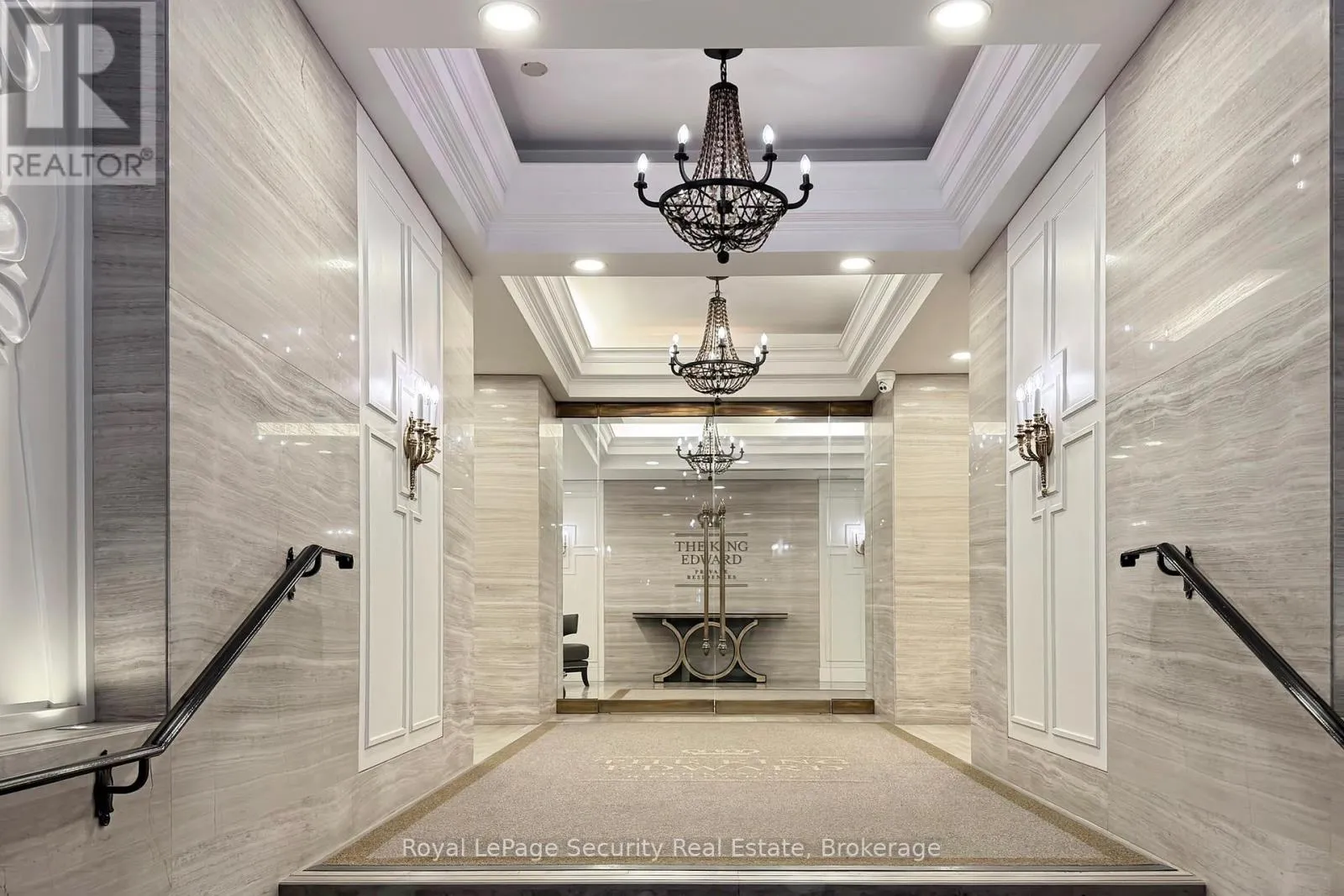 Yonge & King Historic charm meets modern living at the King Eddy. Experience luxury living at it's finest in this bright and spacious 1-bedroom plus den suite, nestled within the prestigious King Edward Hotel. Offering a perfect blend of hotel-inspired elegance and modern home comfort, this open concept residence captures the essence New York style living in the heart of downtown Toronto. The suite combines historic charm with contemporary convenience, creating an inviting retreat that's both sophisticated and functional. Just steps to the city's best dining, shopping, entertainment and transit as well as the Financial District and St. Lawrence Market. This is truly an exceptional opportunity to call one of Toronto's most iconic addresses home. Luxurious finishes include 10' smooth ceiling, crown moulding, stunning upscale kitchen with newly added Island, Hardwood floors throughout, built-in appliances, spa like bathroom with new cabinet, warm and bright with a City view. (id:27476)