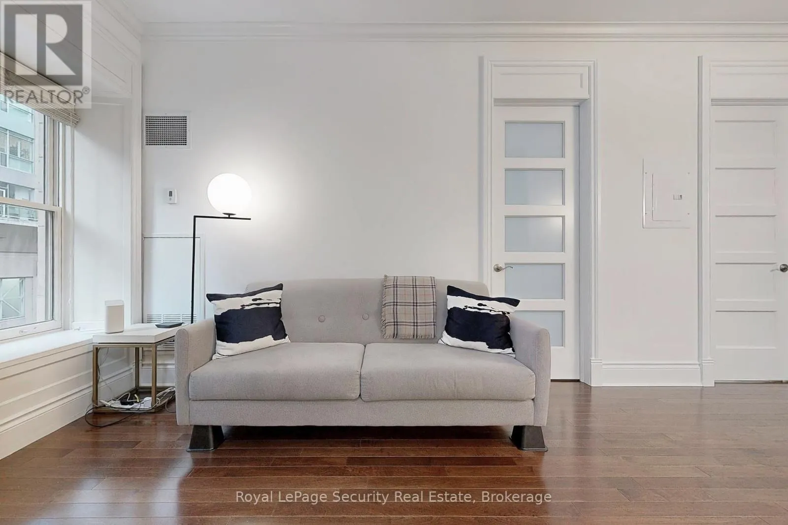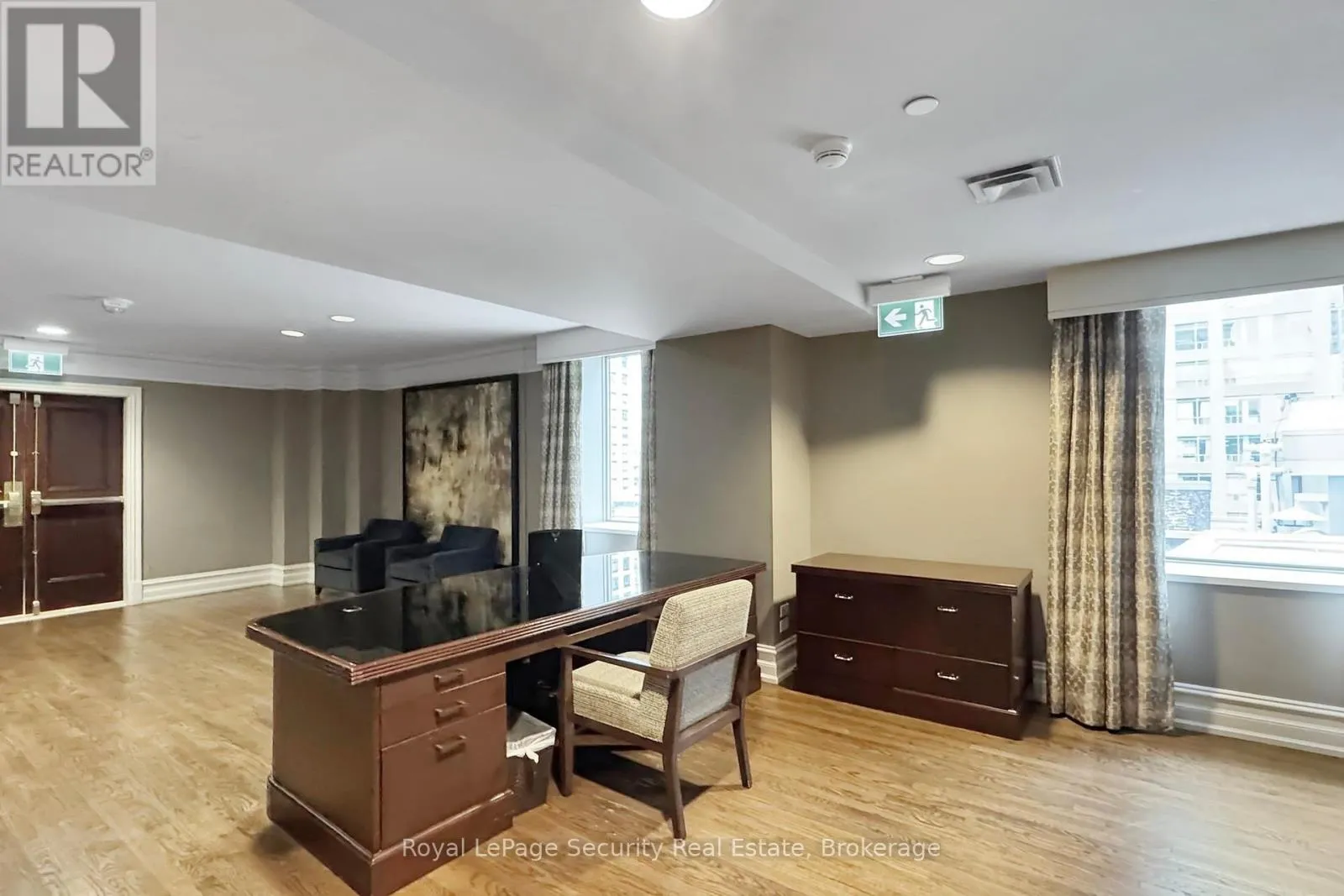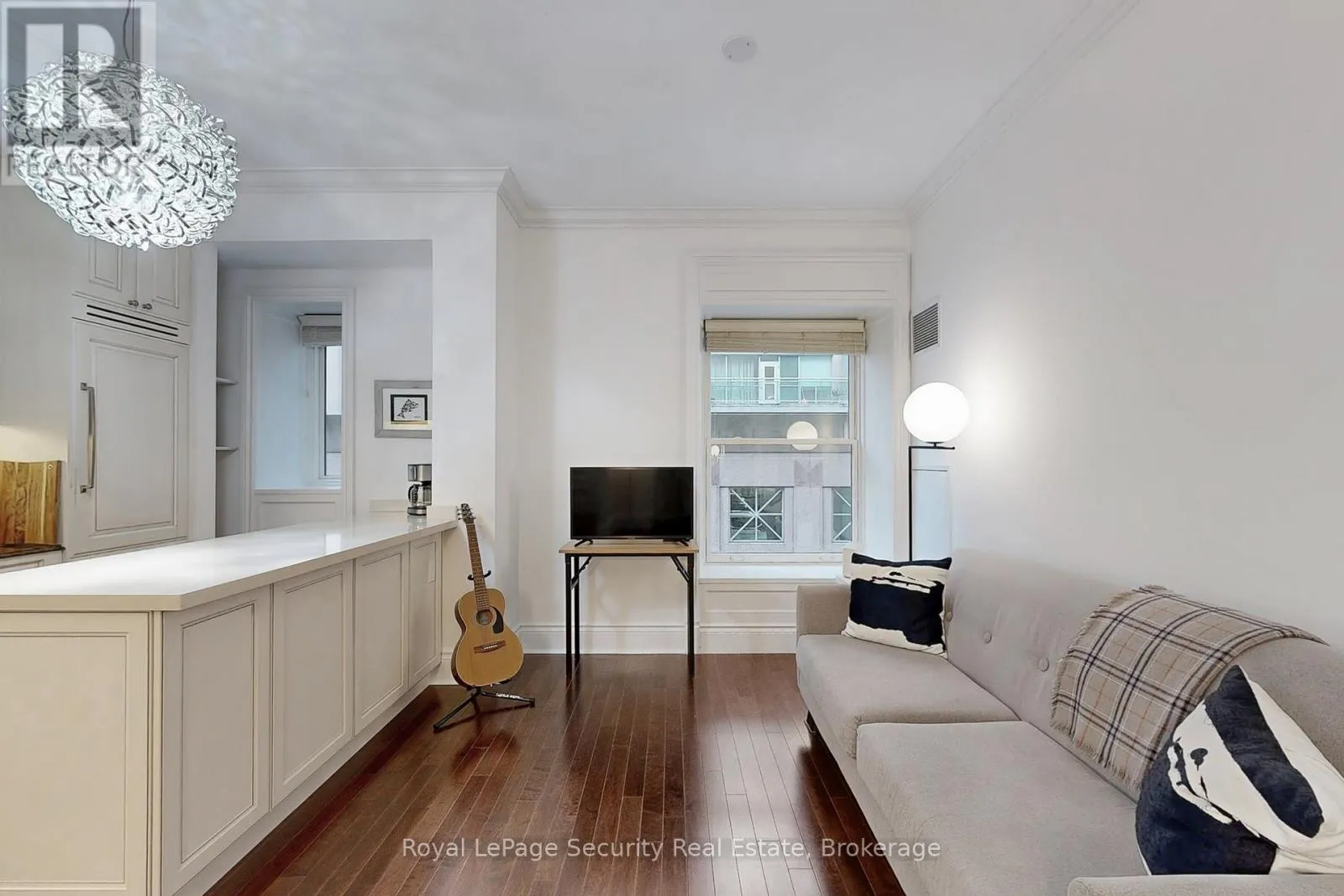 Yonge & King Historic charm meets modern living at the King Eddy. Experience luxury living at it's finest in this bright and spacious 1-bedroom plus den suite, nestled within the prestigious King Edward Hotel. Offering a perfect blend of hotel-inspired elegance and modern home comfort, this open concept residence captures the essence New York style living in the heart of downtown Toronto. The suite combines historic charm with contemporary convenience, creating an inviting retreat that's both sophisticated and functional. Just steps to the city's best dining, shopping, entertainment and transit as well as the Financial District and St. Lawrence Market. This is truly an exceptional opportunity to call one of Toronto's most iconic addresses home. Luxurious finishes include 10' smooth ceiling, crown moulding, stunning upscale kitchen with newly added Island, Hardwood floors throughout, built-in appliances, spa like bathroom with new cabinet, warm and bright with a City view. (id:27476)