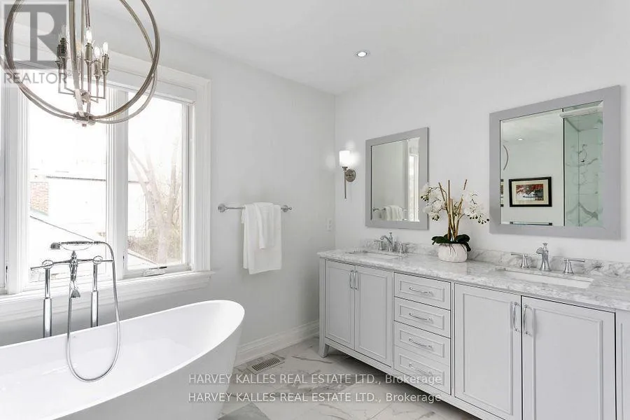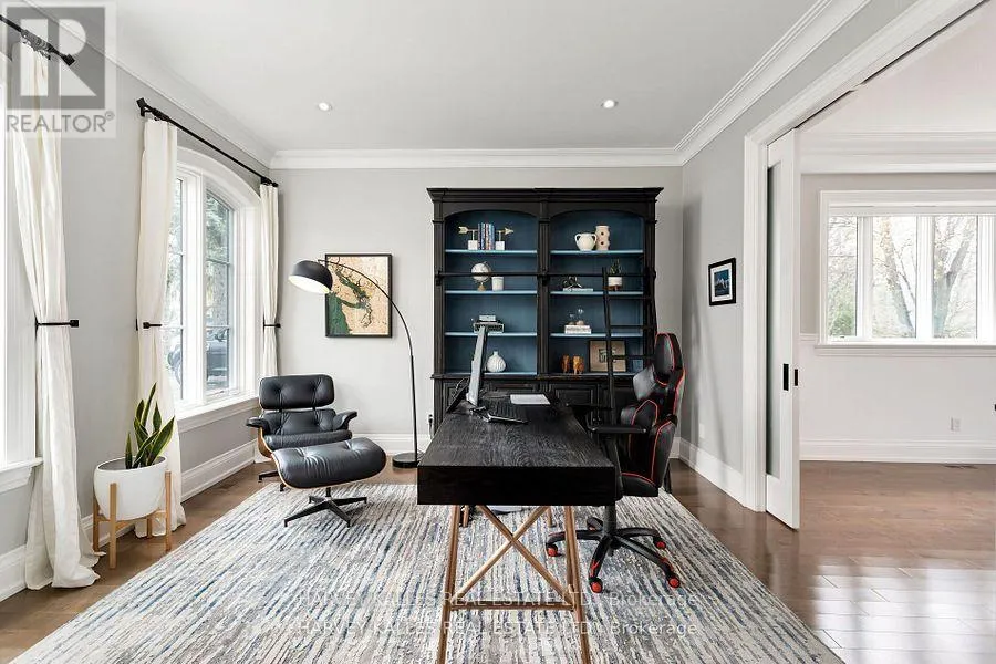 Dundas/Royal York From the moment you step inside, you will be captivated by the bright and airy ambiance and architectural mastery of PhD Designs. Floating stairs draw you in and offer an uninterrupted view of the mature tree canopy seamlessly connecting the interior with the natural beauty outside. Beautifully constructed with the highest quality finishes throughout, this property will wow you over and over again. Professionally designed from top to bottom with large bedrooms and bathrooms and a Primary Suite you won't want to leave. Gleaming maple floors throughout and a showstopper chef's kitchen with expansive windows, double door walkout to the deck and an open layout that flows into the family room and dining room. A lovely executive office, lower-level rec room with a second office or gym, wet bar and ample storage complete the picture. Plus, a separate one-bedroom apartment with its own entrance, double drywall/sound barrier, high end finishes, laundry and bath provides a fantastic income opportunity bringing $1,800 to $2,000/month. Ideal for an in-law/nanny suite or extra rental income. This home was tastefully designed with a perfect floor plan, all the bells and whistles and comfortably parks 6 cars. Steps to Chestnut Hills Park, KCS, OLS, TTC, Kingsway, shops, restaurants, airports and highways. It's an opportunity not to be missed. (id:27476)