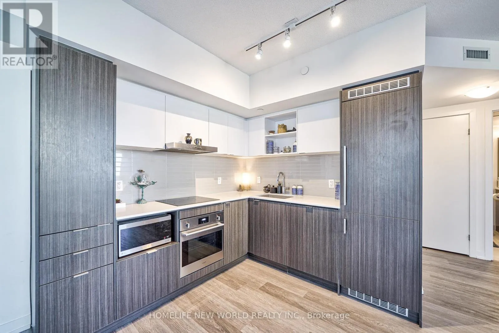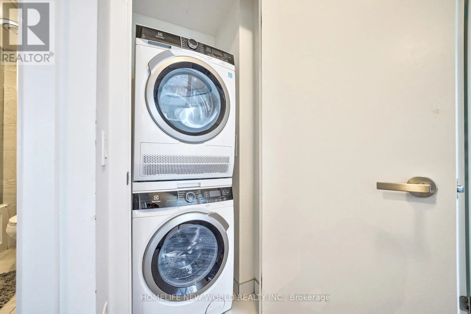 Cross Streets: Yonge & Queens Quay East. ** Directions: great area in Richmond Hill. The best of city, lake, Toronto life elegance in this stunning 1-bedroom 518 sq feet, 1-bathroom condo located on the 27th floor of the great Sugar Wharf Condominiums by Menkes. This unit features a large balcony with great views 234 sq feet, 9 ft smooth finish ceilings, laminate wood flooring, wall to wall windows bring lots of natural light. The custom-designed kitchen is equipped with Miele appliances including a fridge with bottom mount freezer, Ceran cooktop, built-in stainless steel wall oven and dishwasher, and an LG stainless steel microwave. The bathroom is elegantly tiled, and the in-suite laundry features a stacked 24" front-loading washer and dryer. Enjoy 24-hour concierge service, and high-speed WIFI in all amenities areas, lobby, and elevators. The building boasts a state-of-the-art fitness center, indoor lap pool, party rooms, theater rooms, and an outdoor landscaped terrace with BBQ and dining area. Guests can also take advantage of the two guest suites. Located in the heart of Toronto's waterfront community, you're steps away from union station (100 Transit Score, 97 Walk Score and 95 Bike score), shopping (LCBO, Farmboy) , dining, Scotiabank Arena & Rogers Center, and much more. Brand New Unit! (Sugar Wharf Condominiums). 518 Interior Sf & 252 Sf Balcony Open Concept 1 Bedroom & 1 Bath. Corner Unit Facing South East, "Waterfall" Model. Steps Away From Sugar Beach, Employment, Shops. Direct Access To Future Path & School. Live In The Best And The Largest Toronto Waterfront Community. Spacious South/East Exposure. (id:27476)