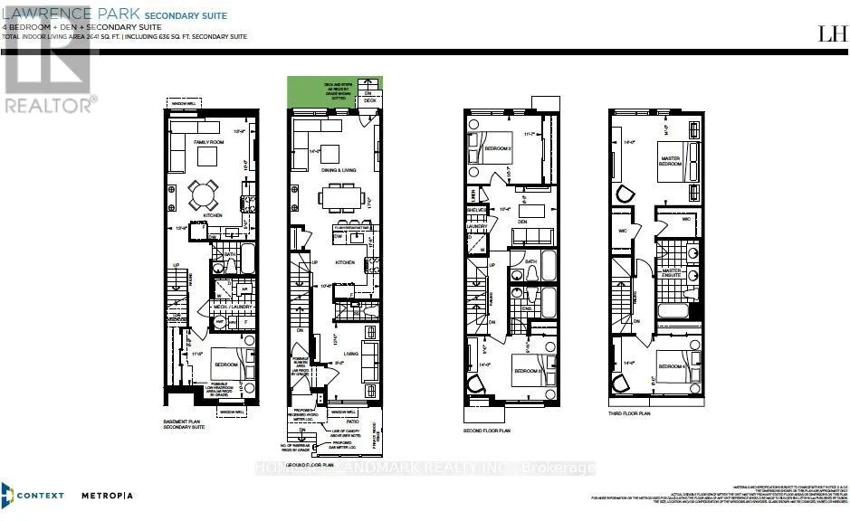 Cross Streets: Ranee Ave & Varna Dr. ** Directions: South East of Renee Ave & Varna Dr. Assignment Opportunity: Rare-Find Brand New Legal 2 Units Townhouse In The Highly Sought-After New Lawrence Heights, An Exciting Master-Planned Community Built By Award-Winning Metropia! This Luxury Modern Townhouse Is Proud Of Its Exceptional Designer Finishes And Overlooks The Park! (Builder Charged $100K Premium For Park Location). Provides A Private Backyard And Single Car Garage In The Heart Of North Toronto. Offers 2641 Sq. Ft. Of Thoughtfully Designed Indoor Living Area, Including 636 Sq. Ft. In A Lower Level Secondary Suite Finished By The Builder. Main Unit Has 4 Spacious Bedrooms Plus A Large Den, 3.5 Baths, 2 Master Bedrooms With Own Ensuite Bath, Smooth Ceilings Throughout. The One-Bedroom Secondary Suite With Separate Entrance Is Very Bright With Big Windows, Has Its Own Kitchen And Laundry. Insulation Added Between Secondary Suite And Main Floor To Absorb Noise & Vibration.(Builder Charged $100K Premium For Building The Legal Secondary Suite). Live In One Unit And Rent Out The Other, Or Rent Out Both For Excellent Cash Flow! The Whole House Is Carpet Free, With Oak Staircase Throughout, Hardwood Floor For Main Unit and Laminate For Lower Unit, 9' Ceiling on Main Floor and 8' Ceiling For Other Floors. Both Kitchens Feature Quartz Countertops, Stainless Steel Appliances, Tile Backsplash And Other Upgrades. Walk To The World-Renowned Yorkdale Shopping Centre, Subway Station, Parks And Luxurious Amenities. Enjoy Quick Access To Go Transit, Hwy 401 & Allen Rd And The Future LRT. [416 Lawrence Heights Way Doesn't Have Address Plate On Wall Yet. It is Near 2 Deep Roots Ter, Located In Block 5C, POTL 53. Firm Occupancy Date: 4/15/2026] (id:27476)