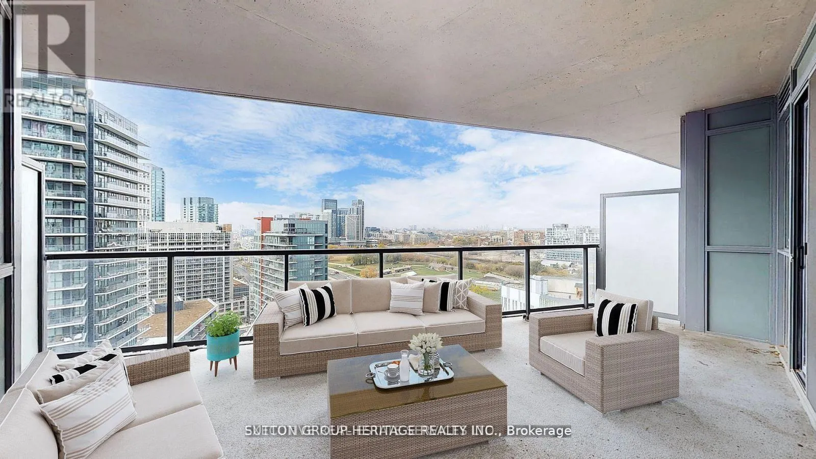 Cross Streets: Lakeshore & Bathurst. ** Directions: Bathurst to Bruyeres Mews. Beautiful waterfront living at The Yards! Bright & spacious 1 bedroom plus den with soaring 9 ft ceilings and ensuite laundry (full-size stacked washer & dryer). Incredible 210 sq ft southwest-facing balcony with breathtaking lake views and stunning sunsets. Includes 1 parking space and 2 storage lockers. Walking distance to waterfront trails, Entertainment District, Financial District, CN Tower & Rogers Centre. Less than 1 minute walk to brand new Loblaws & LCBO. Building offers 24 hr concierge, visitor parking, guest suite, fully equipped gym, steam room, party room, rooftop deck with BBQs & lounge areas, plus library. Location Location Location! Situated in the heart of (id:27476)