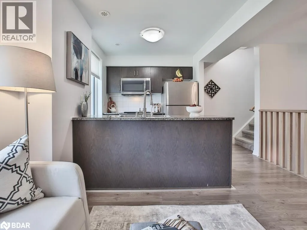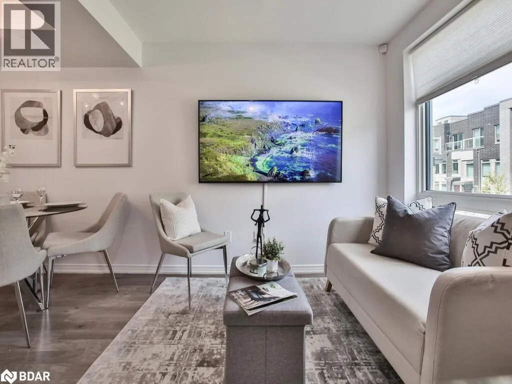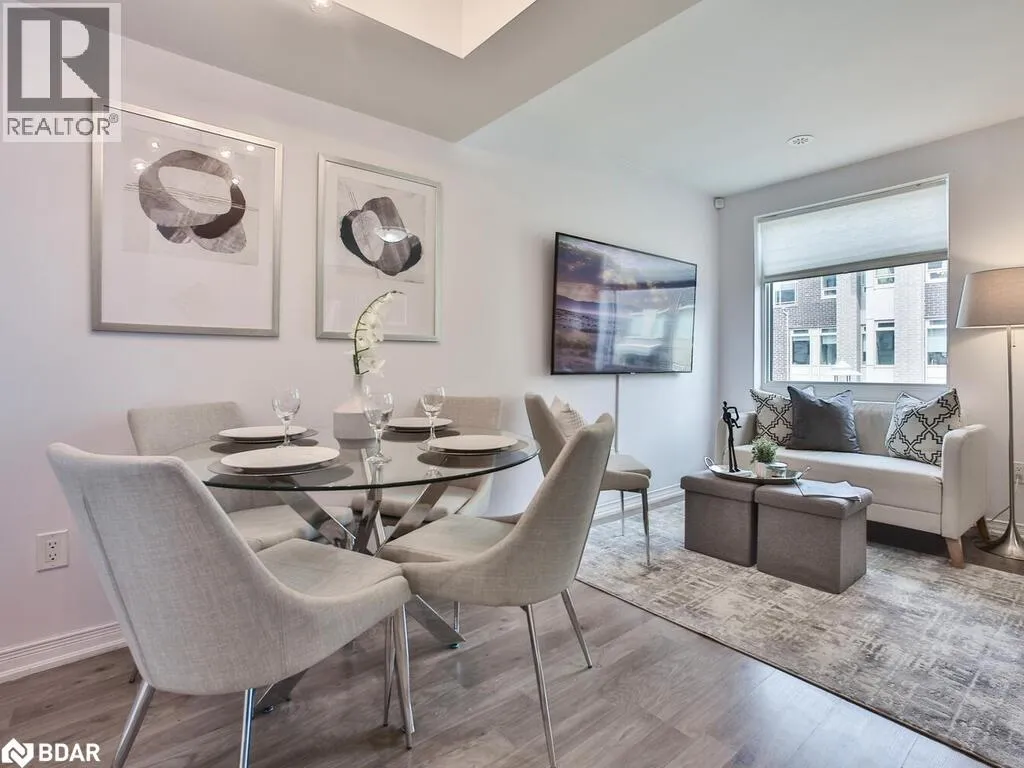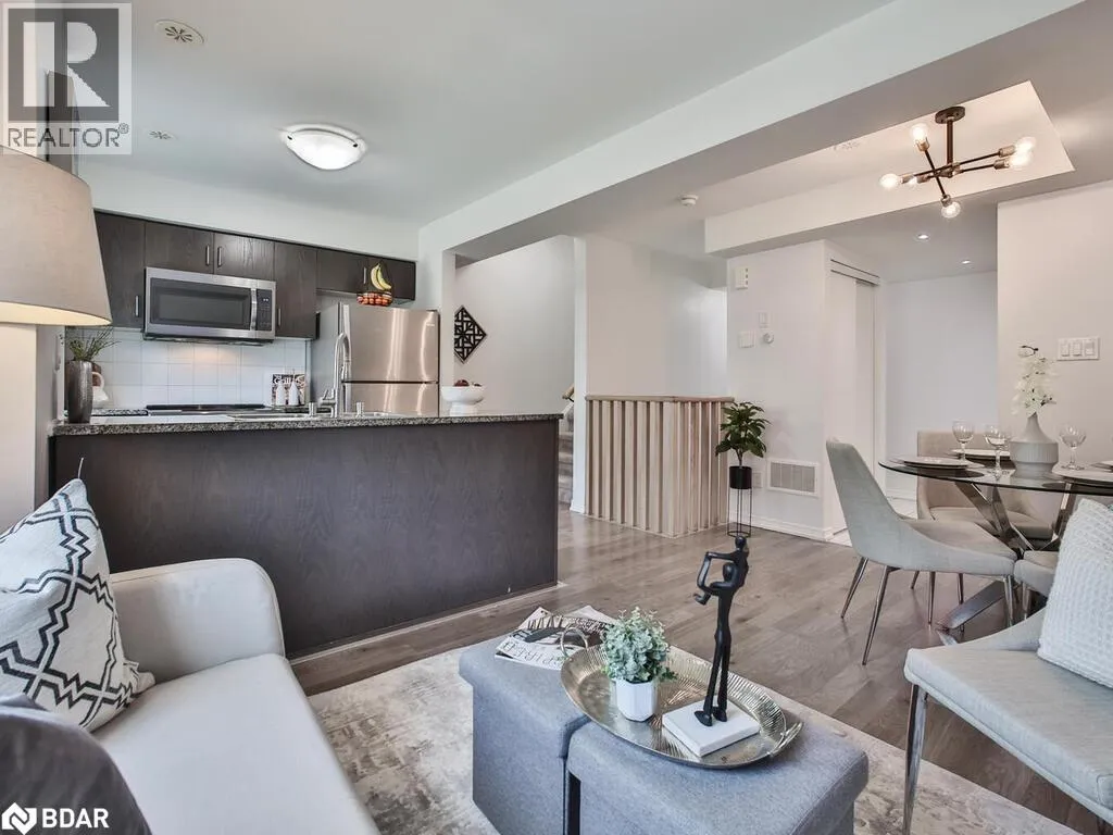Hwy 427 & Burnhamthorpe Rd Welcome to 7 Applewood Lane, Unit 232 a beautifully designed Menkes-built End-Unit contemporary Townhome nestled in the sought-after Dwell City Towns community in Etobicoke. Ideal for first-time homebuyers, this bright and modern residence offers a blend of style, comfort, and prime location. Conveniently positioned next to the parking stairwell, this home features a sun-filled main level with an open-concept Living and Dining area, soaring 9-foot smooth ceilings, and a modern Kitchen equipped with granite countertops, ceramic backsplash, breakfast bar, and Stainless-Steel Appliances. A convenient powder room completes the main floor. Upstairs, you'll find two spacious bedrooms with floor-to-ceiling windows, including a Second bedroom with a charming Juliette balcony. The contemporary 4-piece bathroom. Step out onto the private rooftop terrace, perfect for relaxing or entertaining with a gas BBQ hookup. Located within walking distance to grocery stores, schools, and public transit, and just minutes to major highways including 401, 427, 407, and QEW, this home offers unbeatable connectivity. Enjoy proximity to Centennial Park, local golf courses, Sherway Gardens Mall, and be just 510 minutes from Pearson International Airport. (id:27476)