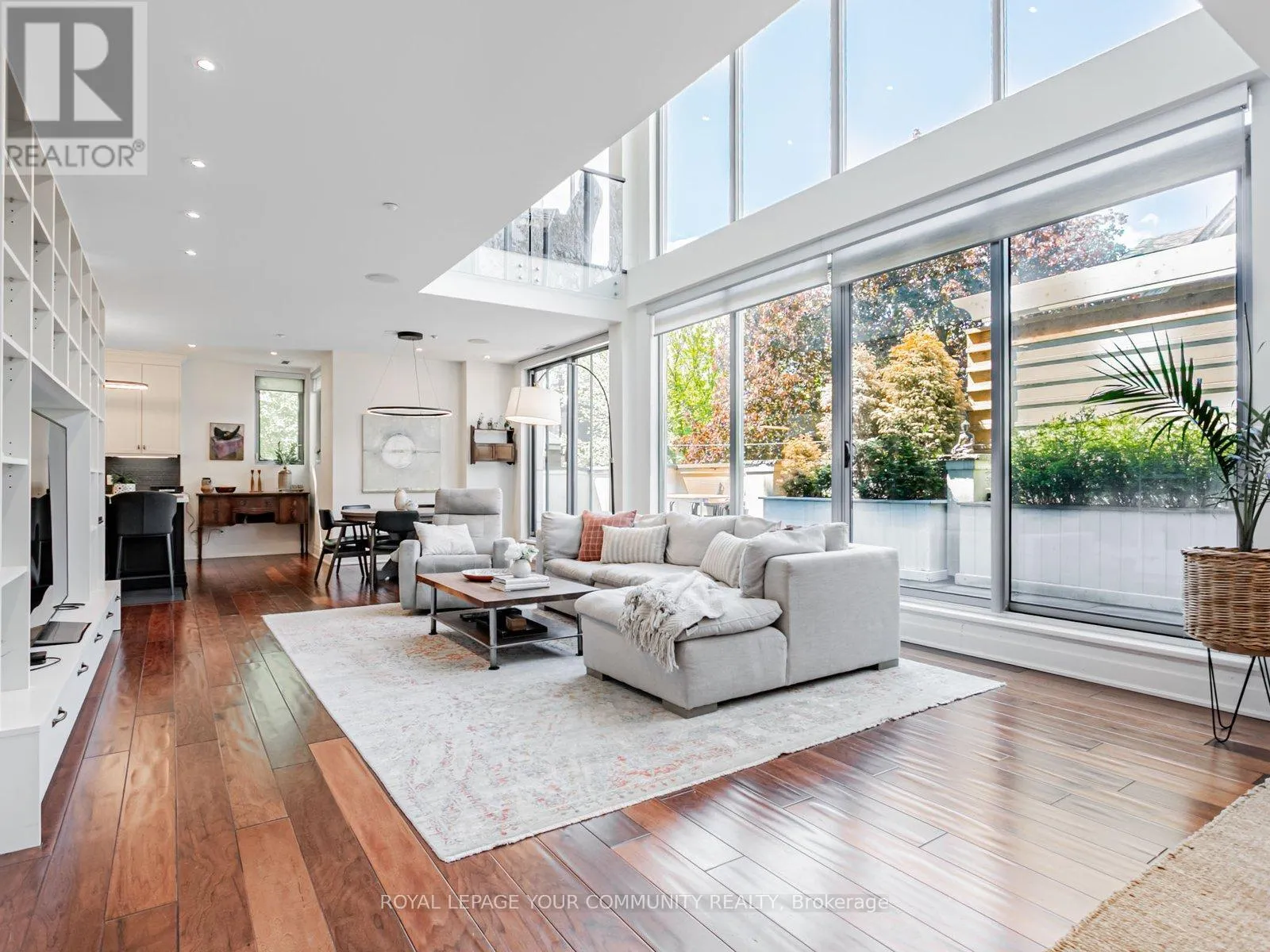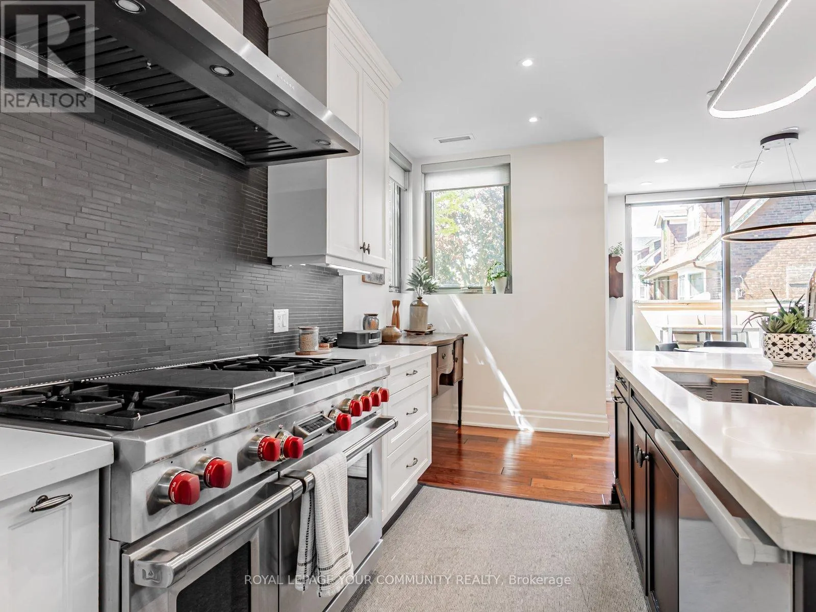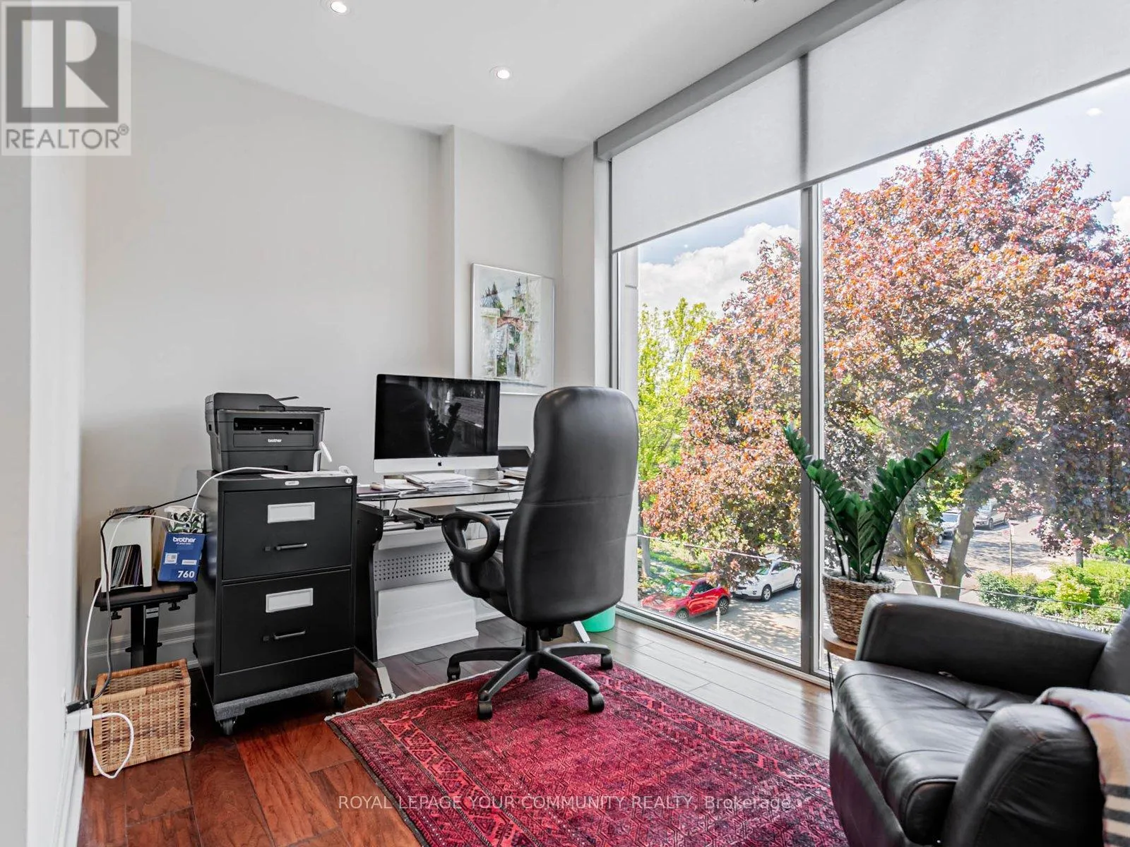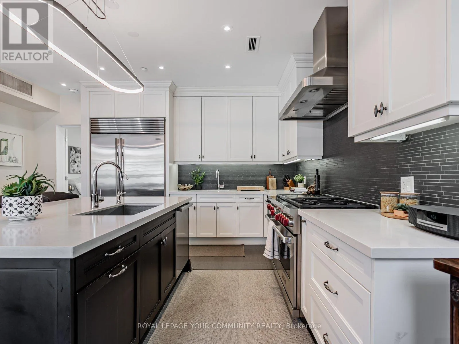 Cross Streets: Queen St E/Woodbine. ** Directions: Queen St East and West of Woodbine. Welcome to UNIT 206 at One Rainsford - an exclusive, boutique residence in The Beaches, just steps from the Boardwalk and Lake Ontario. This rare spacious 2-storey suite offers nearly 2300sf of sun-drenched living space with 3 bedrooms, each featuring its own ensuite bath and walk-in closet. The dramatic living room boasts soaring 20ft ceilings open to above, floor to ceiling windows, built in speakers throughout, and a walkout to a private terrace with BBQ hookup - perfect for entertaining. The family size chef inspired kitchen is outfitted with premium appliances including a Sub-Zero fridge, Wolf 6 burner gas range with griddle, Miele dishwasher, and an oversized caesarstone island with abundant storage. Additional highlights include 3 balconies, a bright den, a sitting area with wet bar, and a full laundry room on the 2nd floor with extra storage and sink. Includes 2 underground parking spots and a locker. Enjoy boutique luxury living just minutes from shops, restaurants, grocery, cafes, transit at doorstep and all the charm The Beaches has to offer. (id:27476)