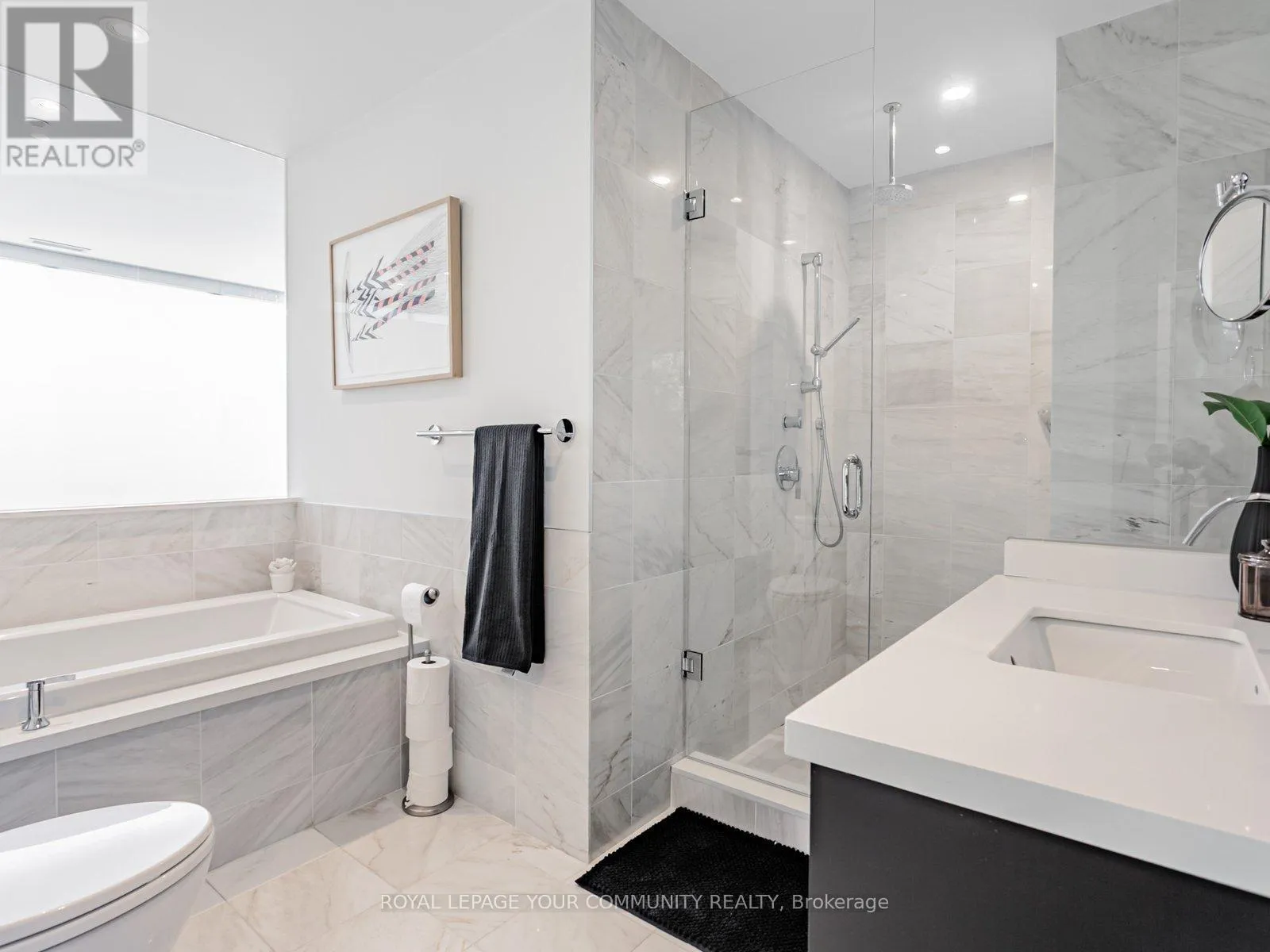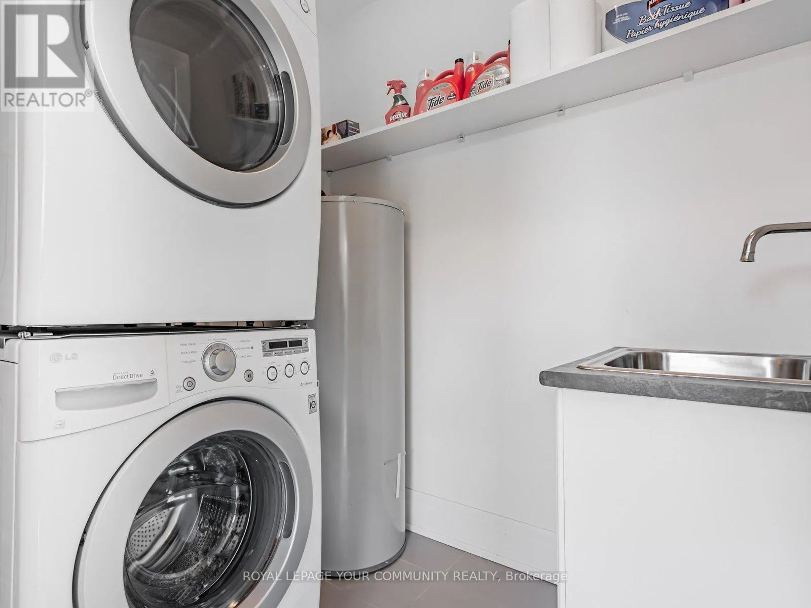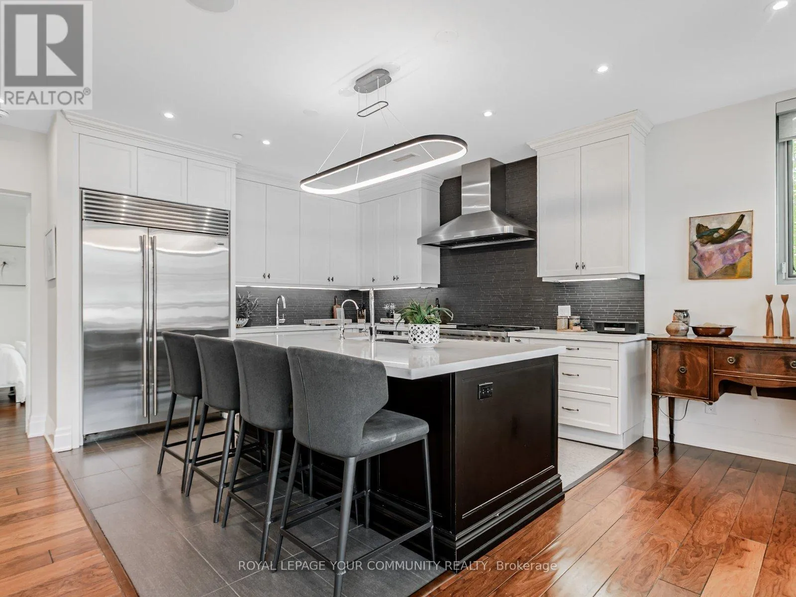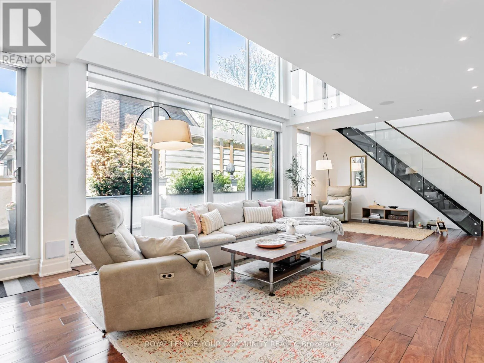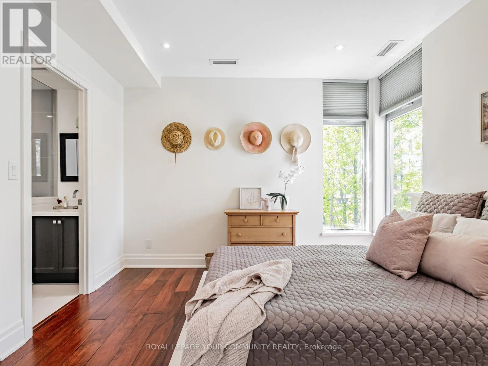 Cross Streets: Queen St E/Woodbine. ** Directions: Queen St East and West of Woodbine. Welcome to UNIT 206 at One Rainsford - an exclusive, boutique residence in The Beaches, just steps from the Boardwalk and Lake Ontario. This rare spacious 2-storey suite offers nearly 2300sf of sun-drenched living space with 3 bedrooms, each featuring its own ensuite bath and walk-in closet. The dramatic living room boasts soaring 20ft ceilings open to above, floor to ceiling windows, built in speakers throughout, and a walkout to a private terrace with BBQ hookup - perfect for entertaining. The family size chef inspired kitchen is outfitted with premium appliances including a Sub-Zero fridge, Wolf 6 burner gas range with griddle, Miele dishwasher, and an oversized caesarstone island with abundant storage. Additional highlights include 3 balconies, a bright den, a sitting area with wet bar, and a full laundry room on the 2nd floor with extra storage and sink. Includes 2 underground parking spots and a locker. Enjoy boutique luxury living just minutes from shops, restaurants, grocery, cafes, transit at doorstep and all the charm The Beaches has to offer. (id:27476)