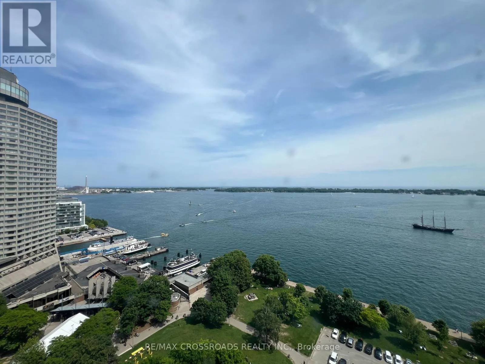 Cross Streets: Queens Quay/Bay. ** Directions: Follow navigation. Dont miss this incredible opportunity to own a two-level condo in the highly sought-after Harbour front community! This spacious unit boasts breathtaking, unobstructed lake views from two Juliette balconies, with a bright south exposure from the living/dining area and stunning city views from the oversized lower-level primary bedroom. Floor-to-ceiling windows and mirrored walls flood the space with natural light, enhancing the open, airy feel throughout. Enjoy five-star amenities including 24/7 concierge and security, a fully equipped fitness centre with Peloton bikes, indoor saltwater pool with outdoor deck overlooking the lake, sauna, massive rooftop terrace with BBQs and gardens, and rare downtown shuttle service. Walking distance to Union Station, the PATH, financial & entertainment districts, Toronto Island, and more. Ample visitor parking included. The property is being sold as-is condition. (id:27476)