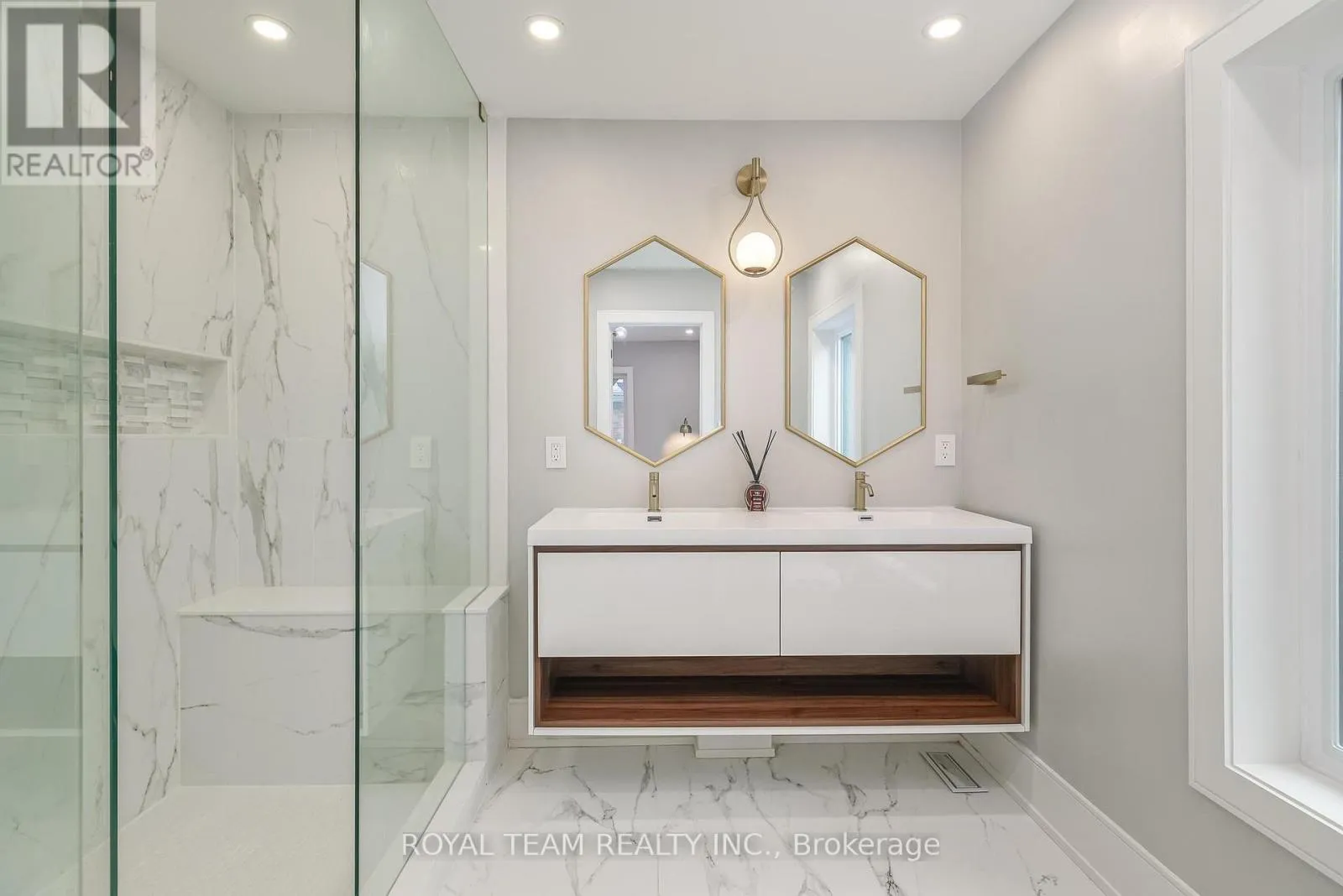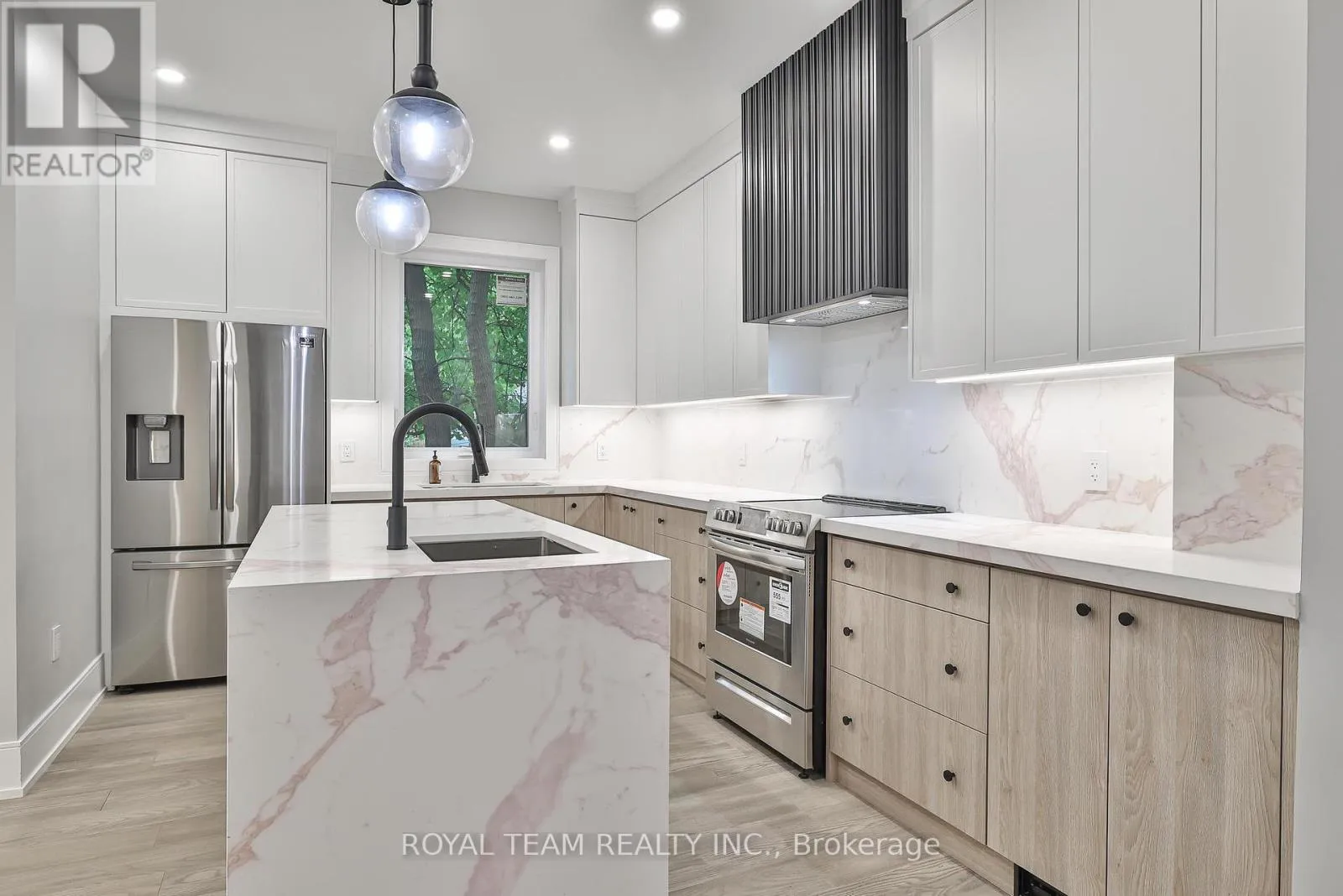 Dundas and Runnymede **Unique Custom-Designed Home Fully Renovated** Welcome to this stunning, fully renovated custom home just minutes from downtown Toronto. Designed with an open contemporary concept, the main floor boasts brand-new appliances, a spacious living/dining area, and access to a private wooden deck perfect for entertaining. A convenient main-floor office and a powder room with elegant marble flooring add to the homes functionality and style. The second floor features **4 spacious bedrooms**, including a luxurious **primary suite with a 5-piece ensuite, walk-in closet, and custom built-ins**.The **finished basement** offers incredible flexibility with 3 bedrooms, 2 washrooms, and a separate entrance easily convertible into an income-generating apartment.At the rear, a detached garage provides additional potential and can be converted into a separate LANEWAY HOUSE or income suite, similar to neighboring properties.This home is a perfect blend of modern design, comfort, and investment opportunity in a highly desirable location. (id:27476)