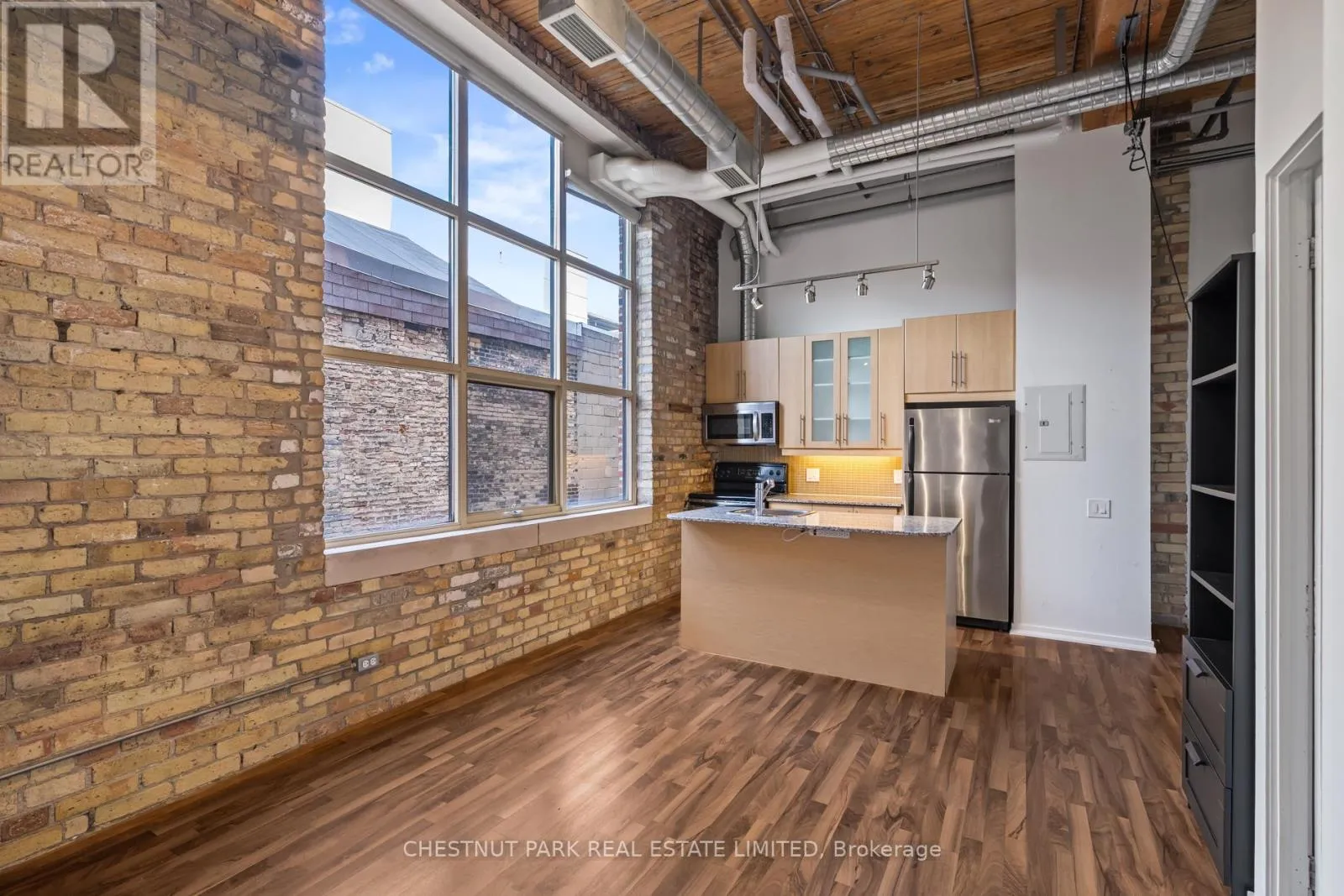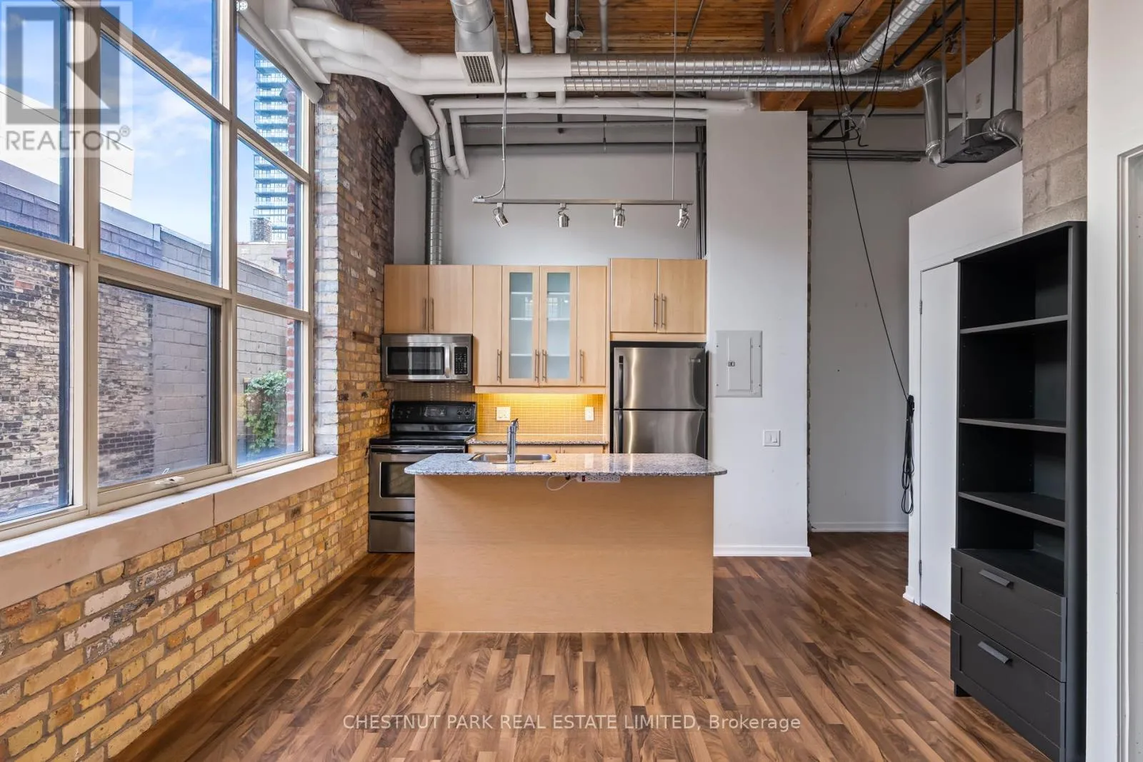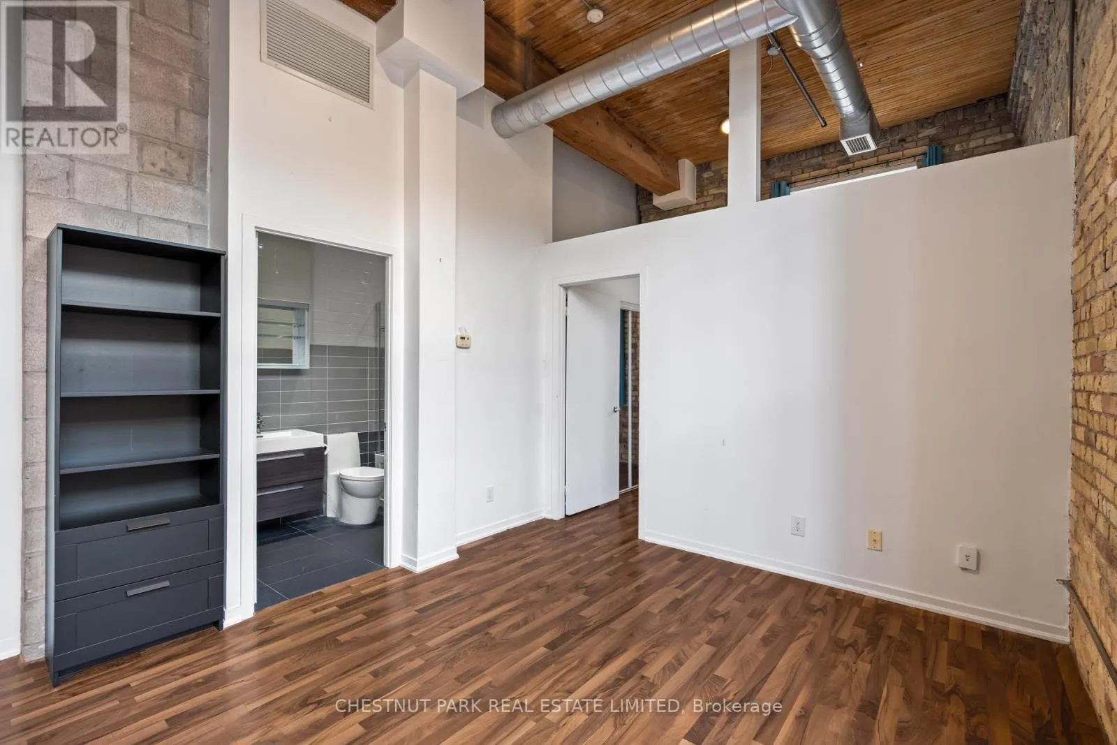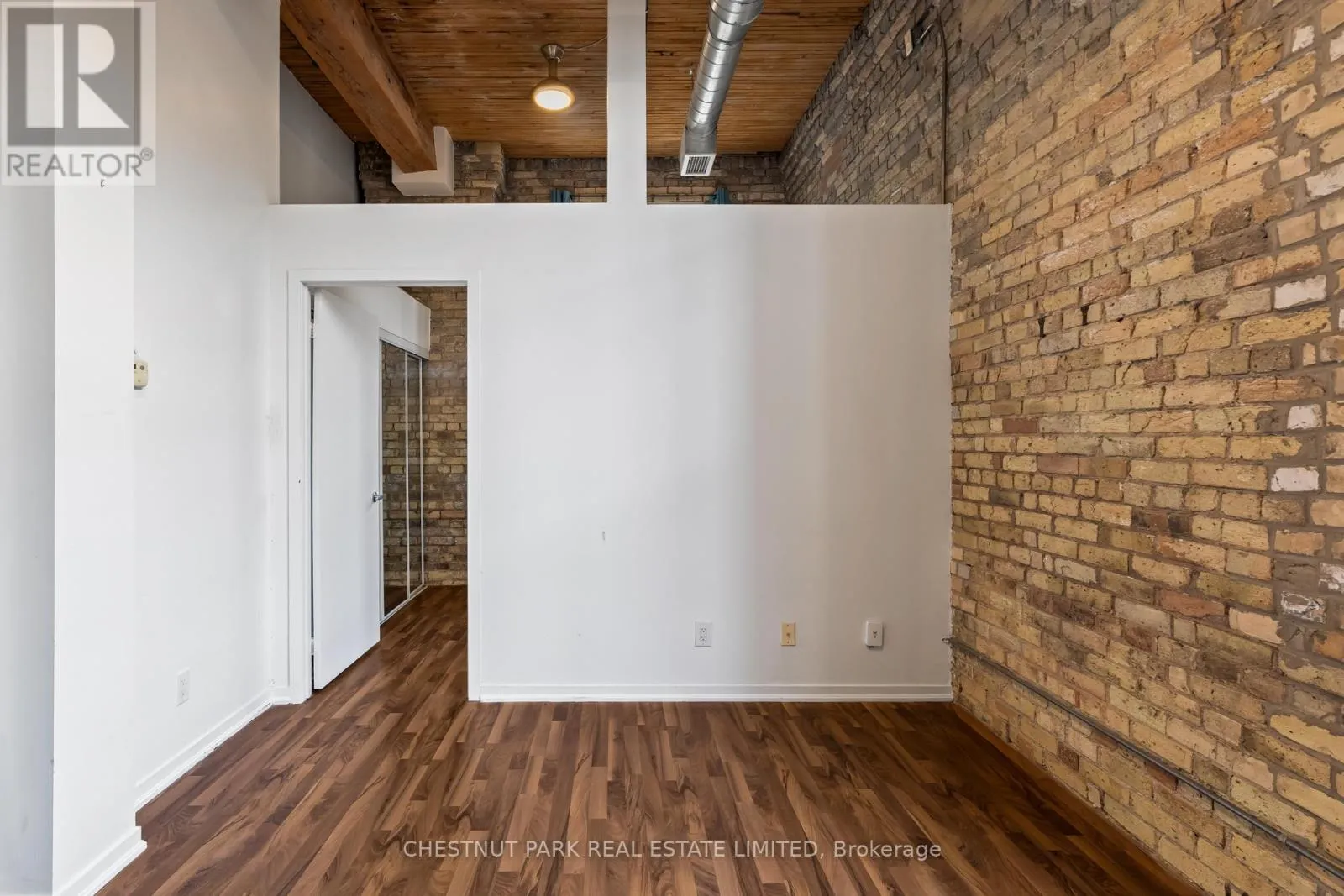Dundas St E & River St If you've been waiting for the rare, authentic hard loft - This is it! Originally built in 1905 as a cigar box factory and later a soap factory, Tannery Lofts is one of Toronto's most storied warehouse conversions. Behind its classic brick facade and arched windows are just 45 boutique residences, each showcasing the character and craftsmanship of a true hard loft. This one-bedroom suite has it all: near 13-foot timber ceilings, exposed wooden beams, original brick walls, and massive industrial windows that flood the space with natural light. The open, airy layout blends raw history with just the right modern updates, creating a warm, industrial vibe that feels entirely unique - nothing like the glass boxes going up across the city. The bedroom offers a cozy retreat while maintaining the loft's open-concept flow, and the updated kitchen and bathroom deliver modern functionality without compromising style. Perfect for a creative setup, an inspiring work-from-home corner, or simply relaxing at home, this loft is as much lifestyle as it is living space. With low maintenance fees and a location steps from Regent Park's 69-acre green space, aquatic centre and community centre, plus easy access to Corktown, Leslieville, and downtown, Tannery Lofts offers a rare chance to own a piece of Toronto history. For the buyer who values character, story, and style - welcome home.| (id:27476)